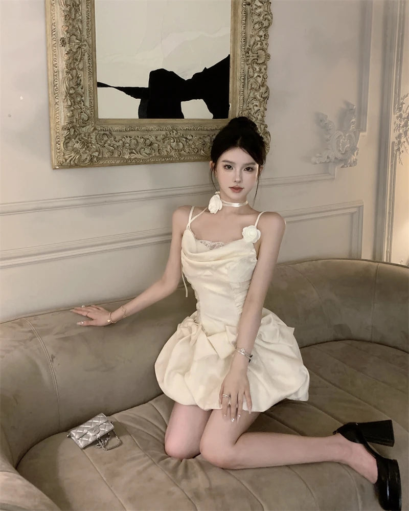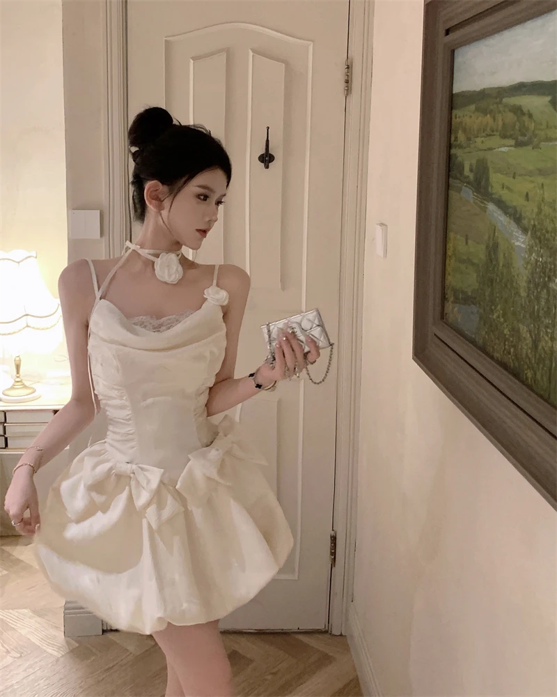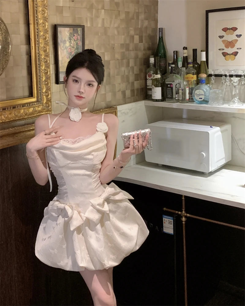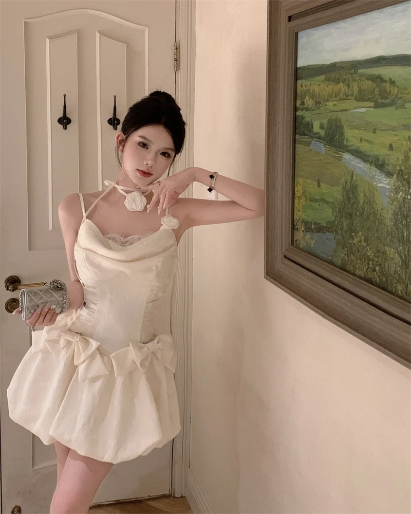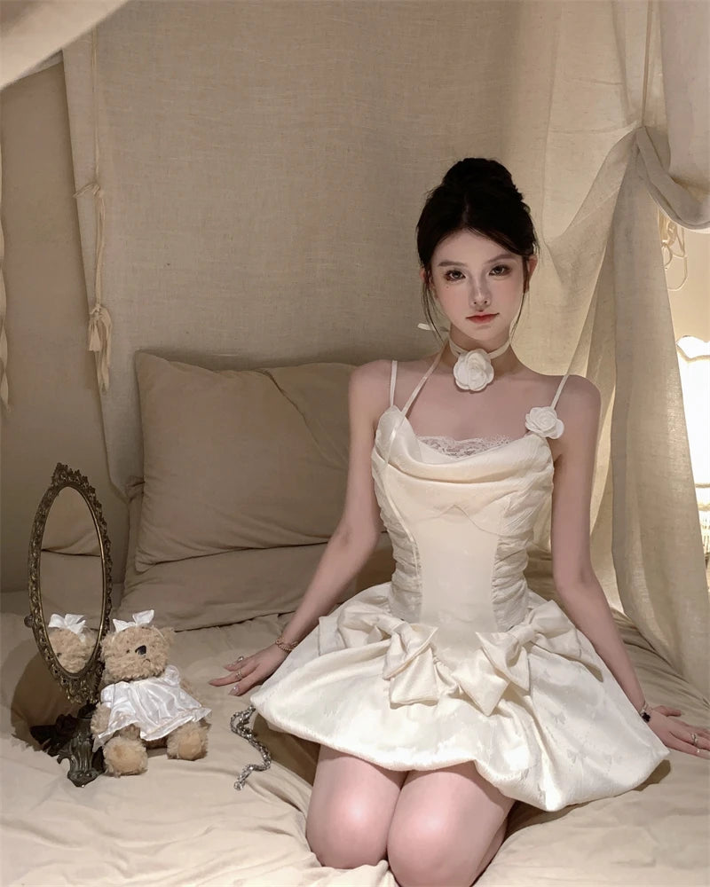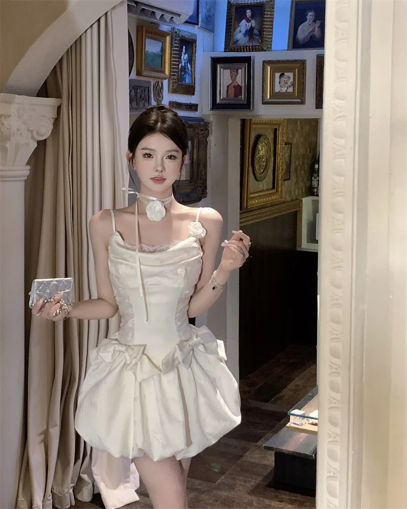 DAIIIBABYYY  -  Sweet Spaghetti Strap Mini Dress for Women Chic Tie Flower Bow Party Dresses Summer Spring Fashion Female Vestidos New Outfits