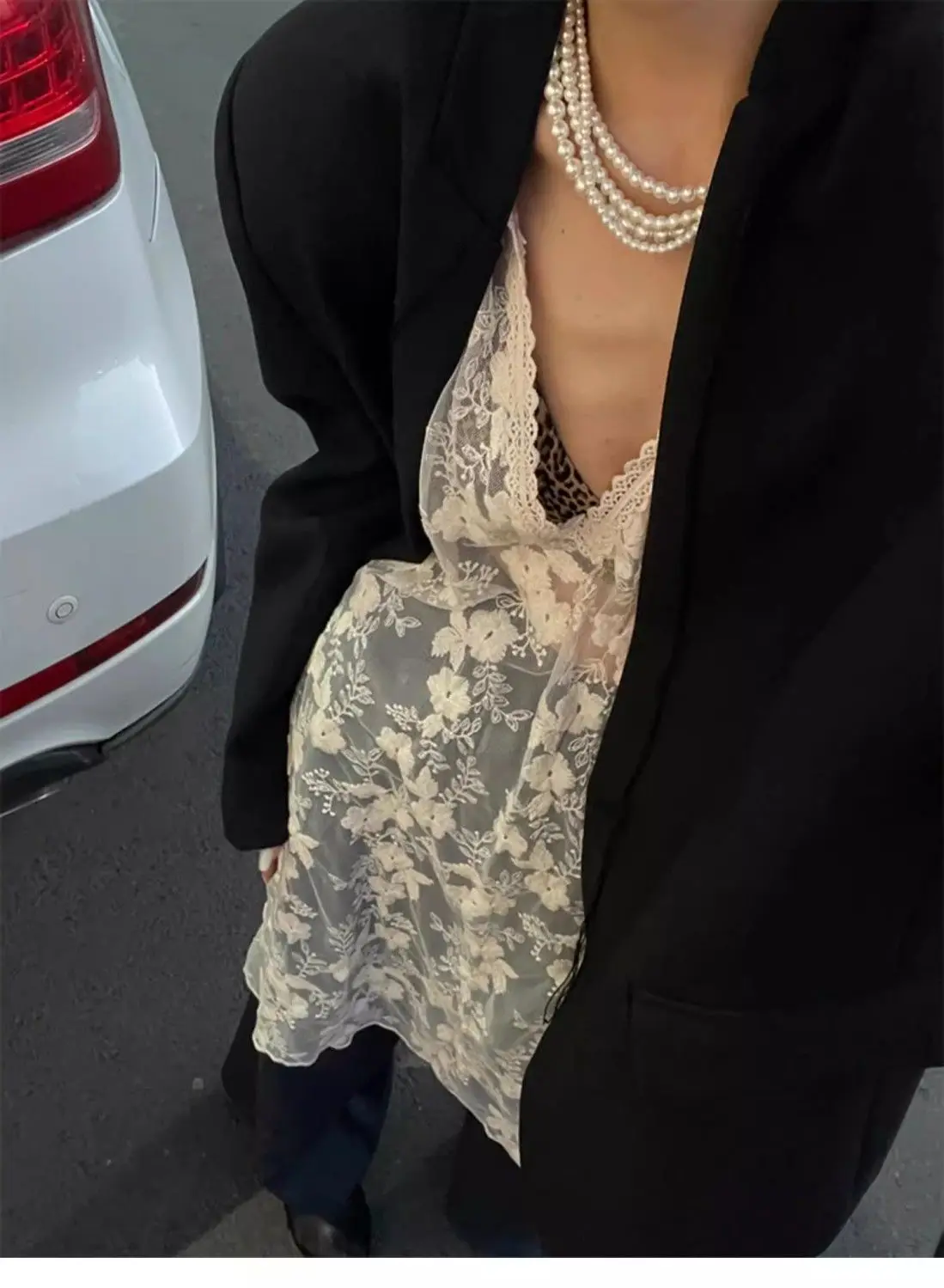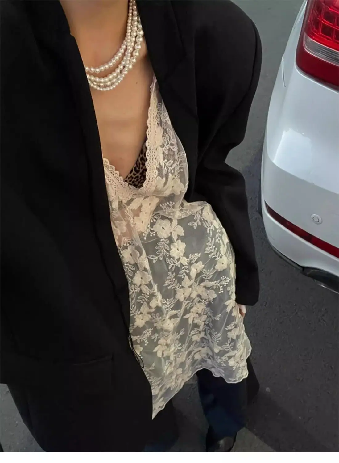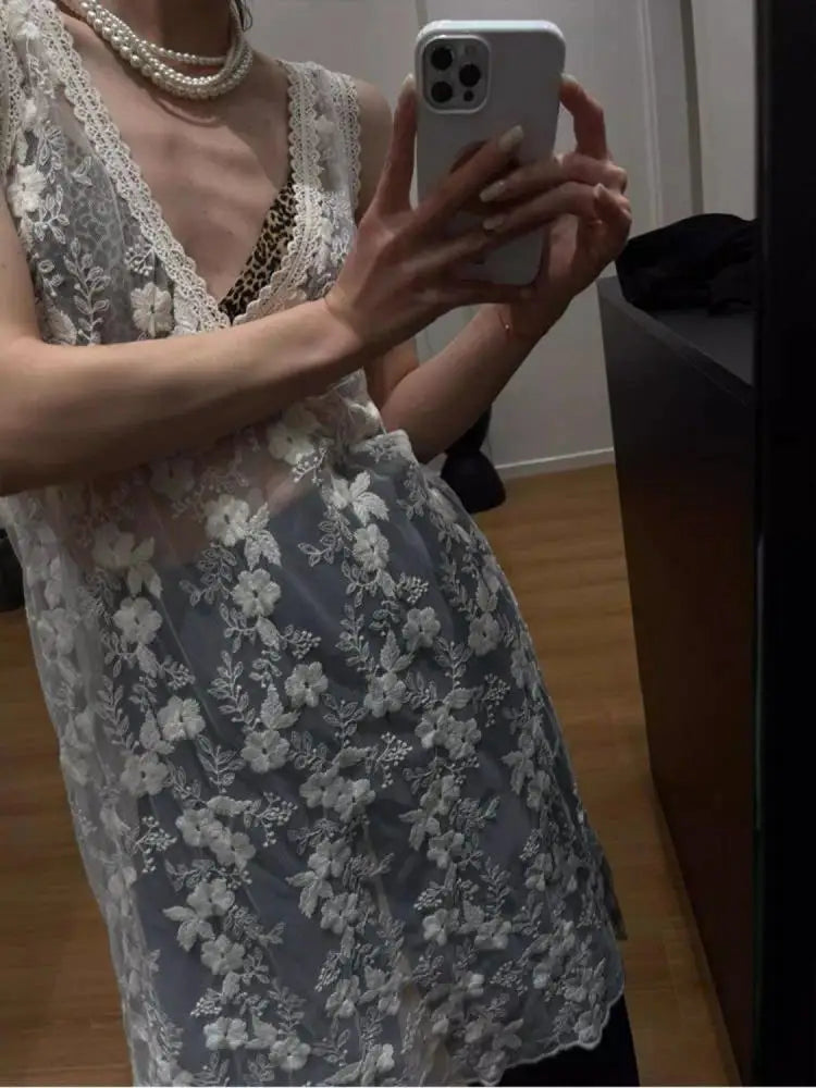 DAIIIBABYYY - V-neck Lace See Through Summer Dress Women Sleeveless Beach Style Korean Fashion Tank Tops Ladies Dresses Loose Chic Y2k