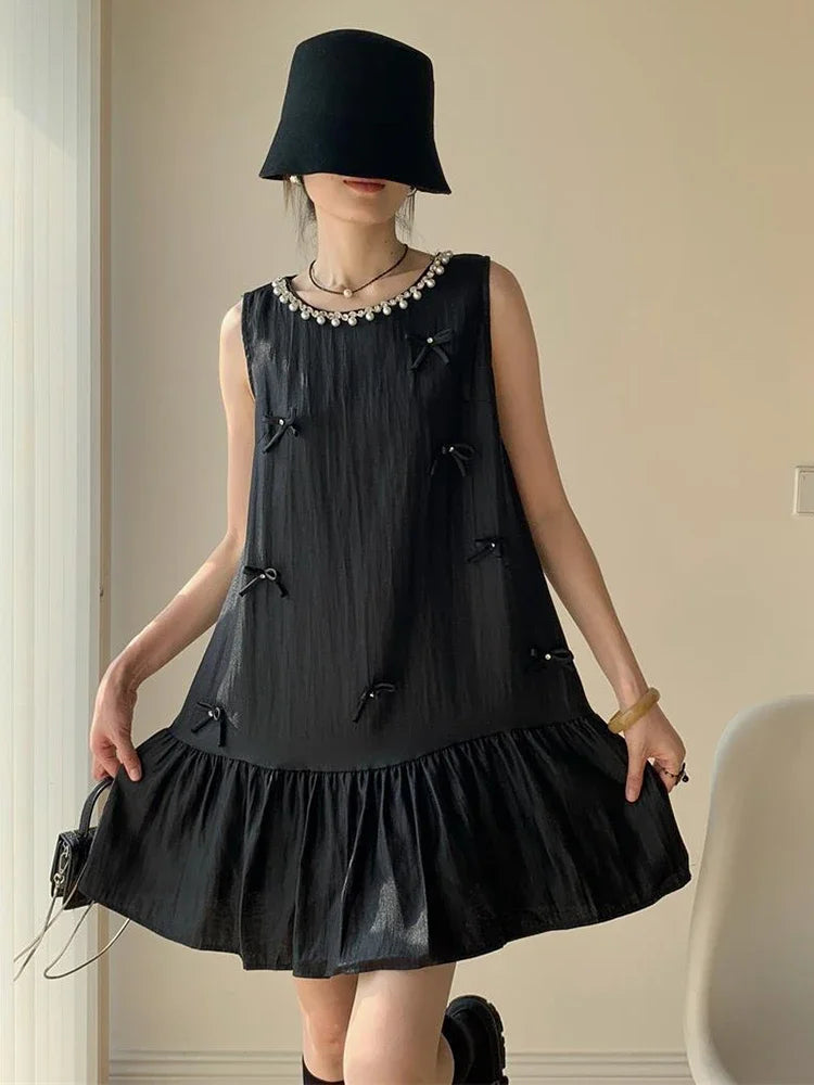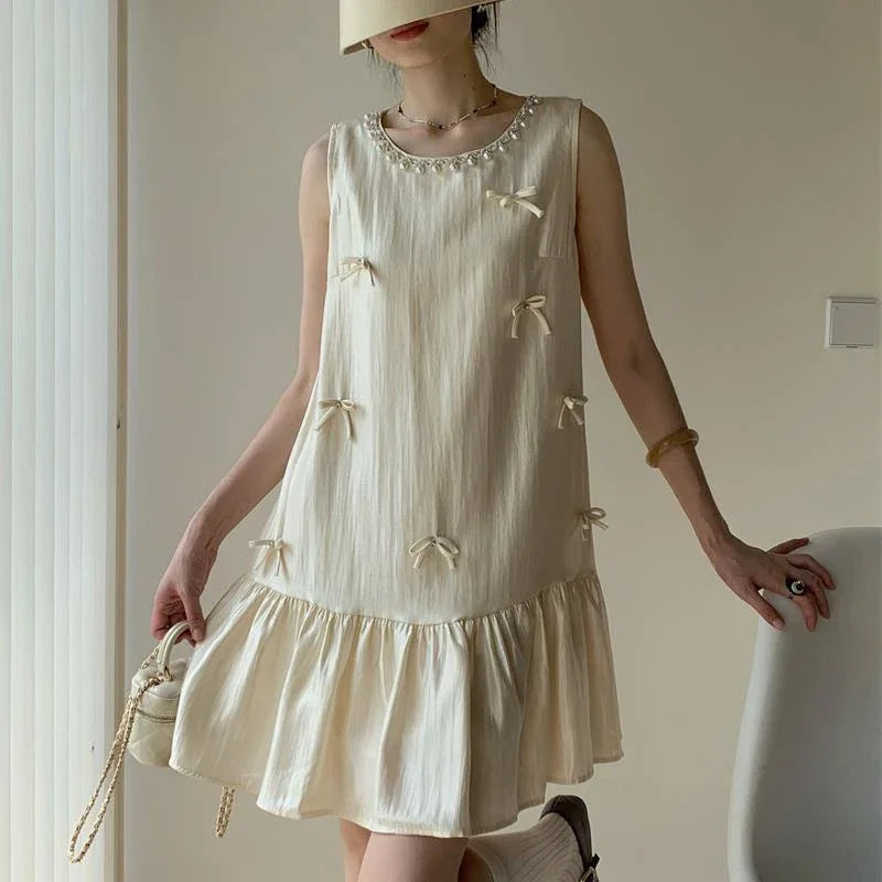 DAIIIBABYYY - Vintage Dresses Women Bowknot Sleeveless Halter Ruffles Summer New Slim Elegant Mini Dress Party Chic Female Sweet