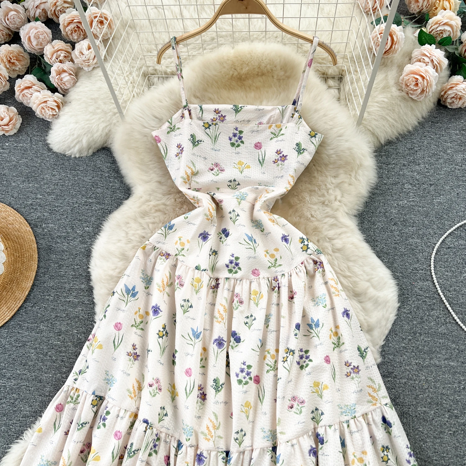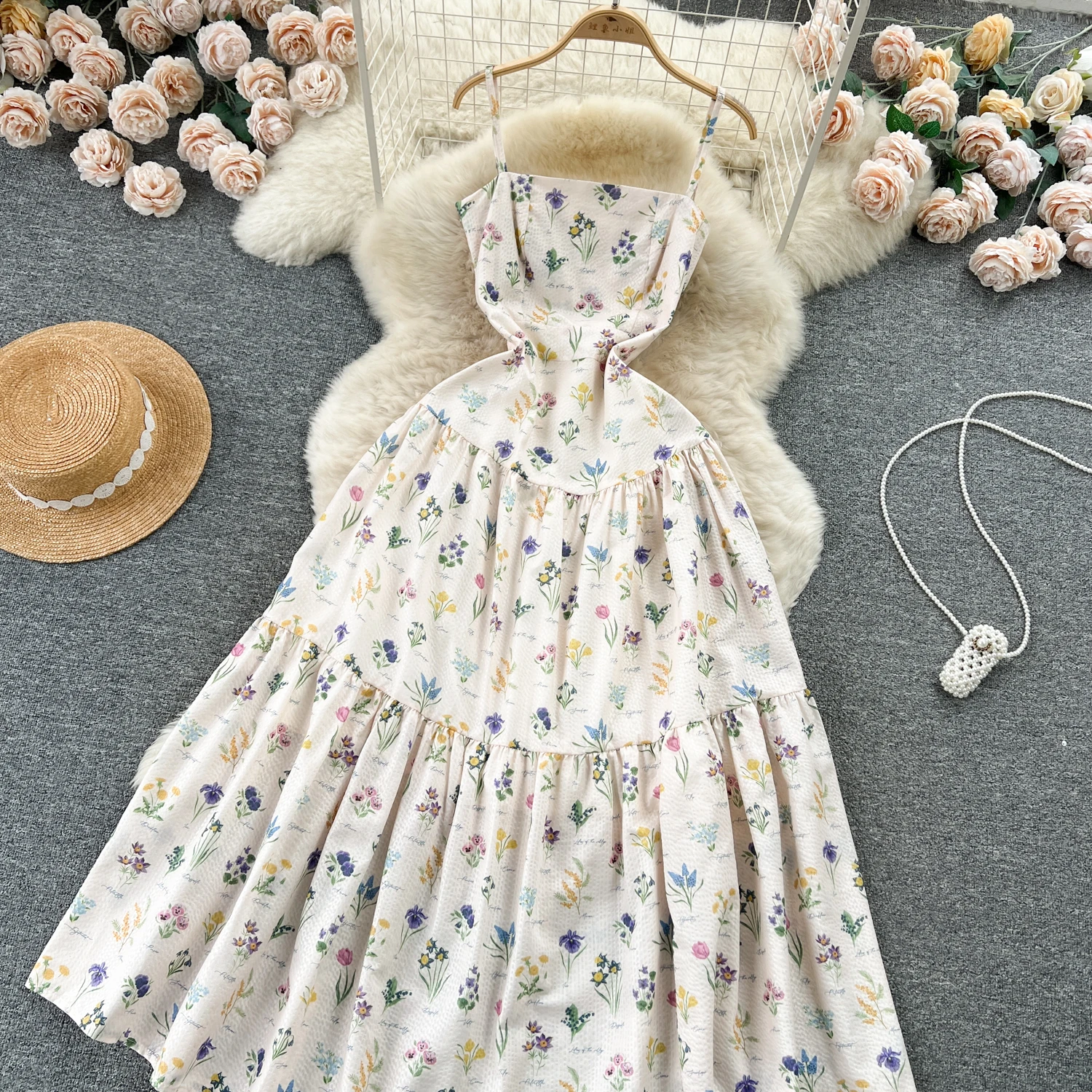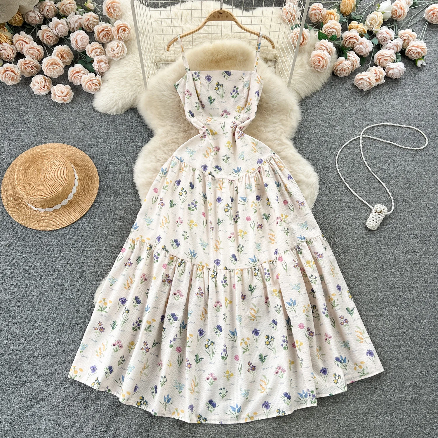DAIIIBABYYY - Vintage Elegant loose Square Collar sweet slip Dress A-line Casual Women Fashion Summer Spring Dresses