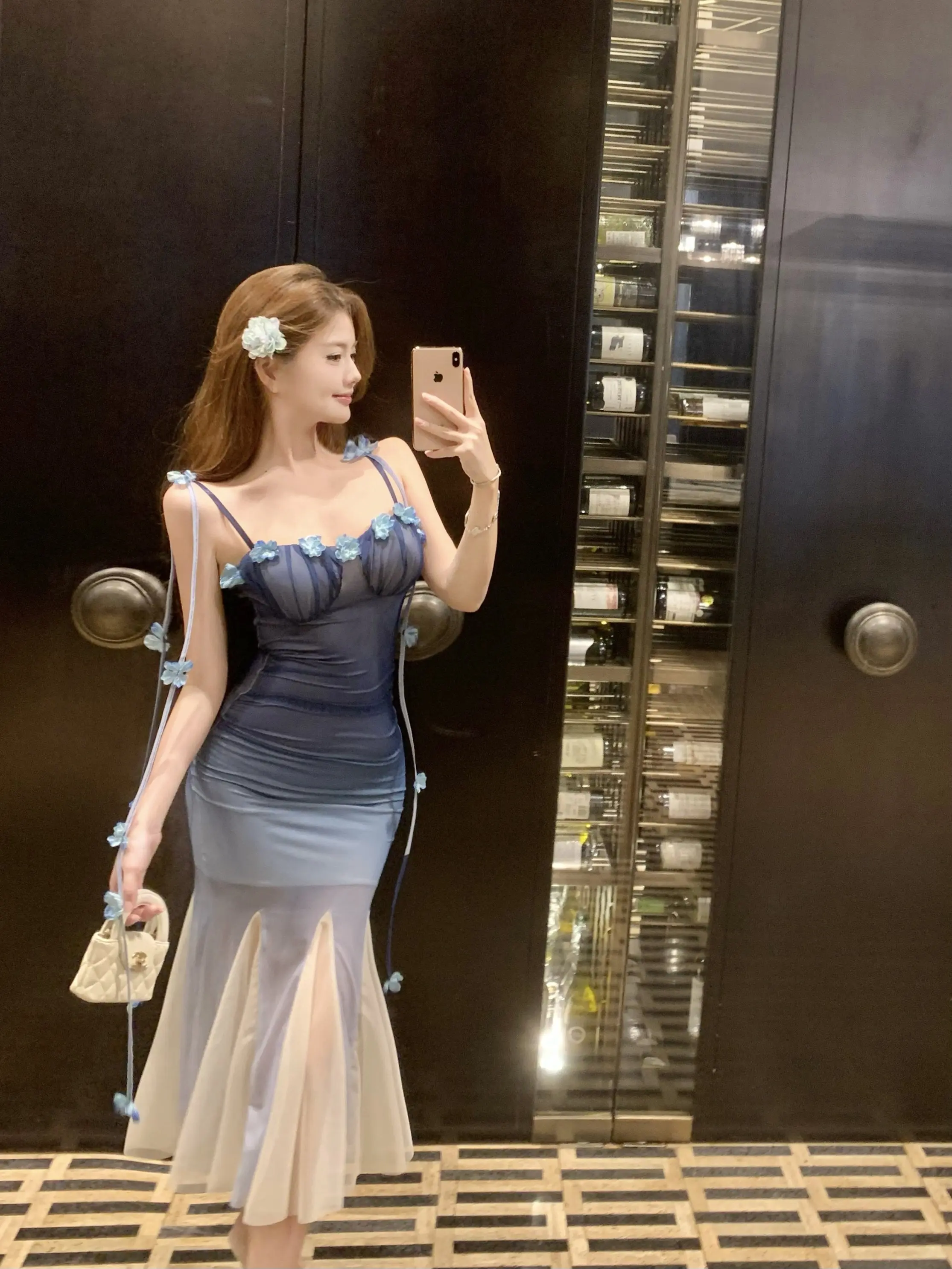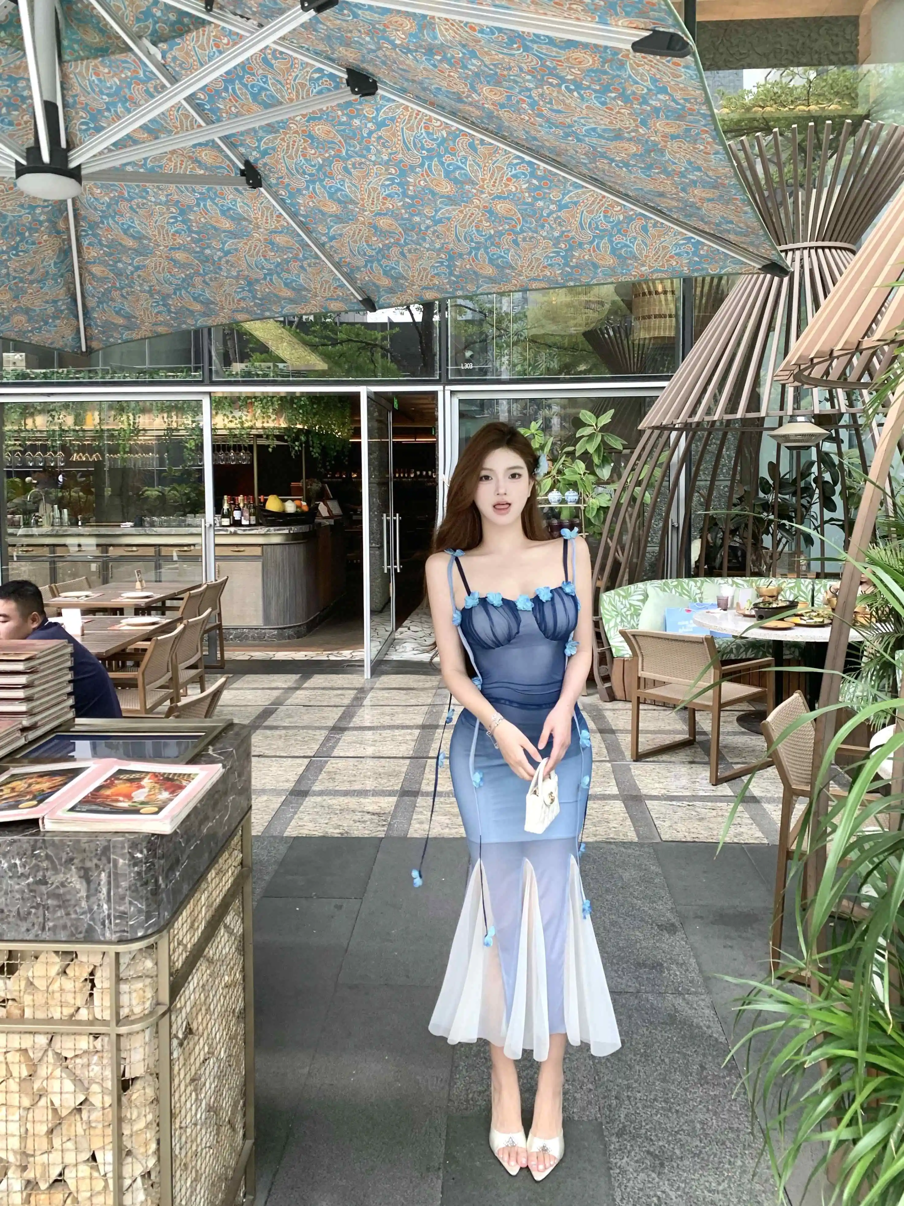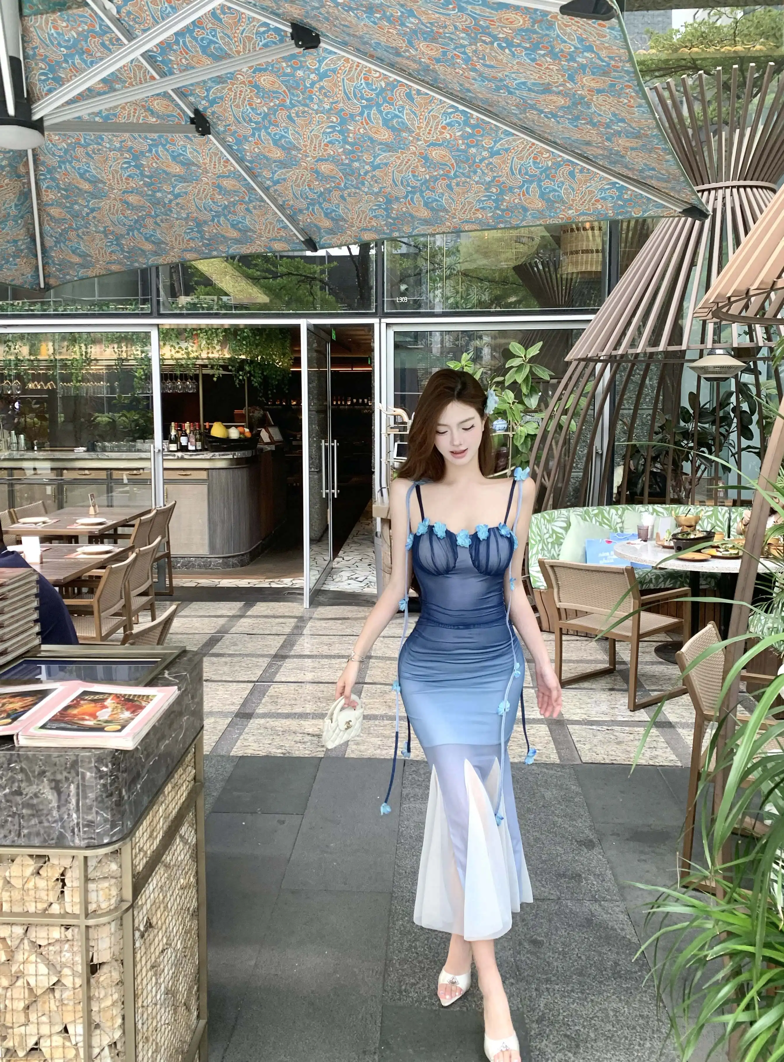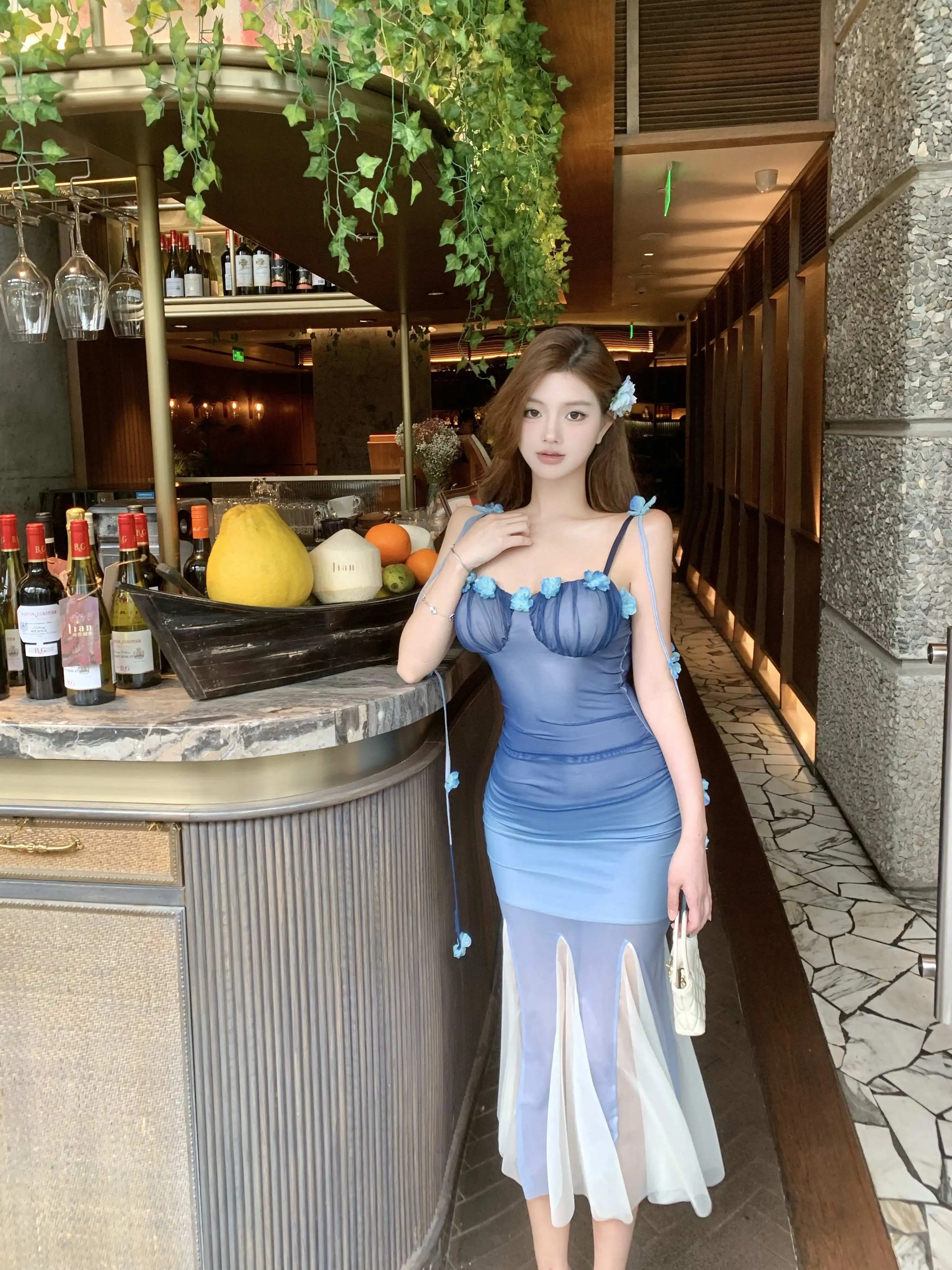 DAIIIBABYYY - Women Black Mesh Patchwork White Ruffled Long Dress Summer Fashion Chic Flower Sling Dresses 2025 New Elegant Bodycon Dress Gown