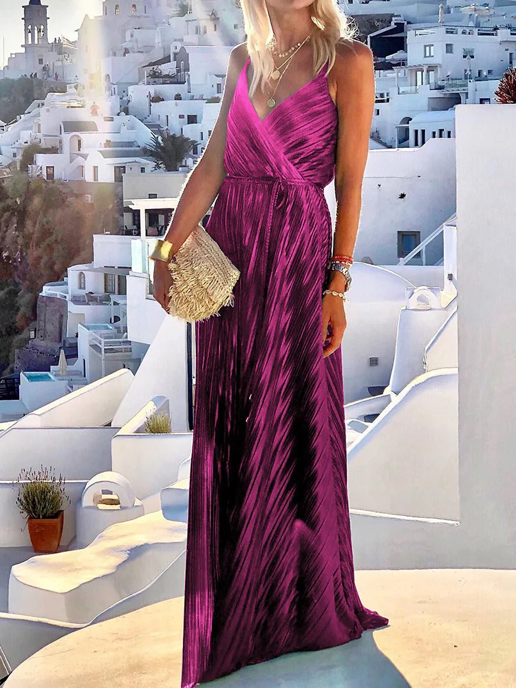 DAIIIBABYYY - Women Loungewear Fashion Lace-Up Maxi Dress Summer Solid Holiday Sleeveless Deep V-Neck Elegant Ladies Party Dress