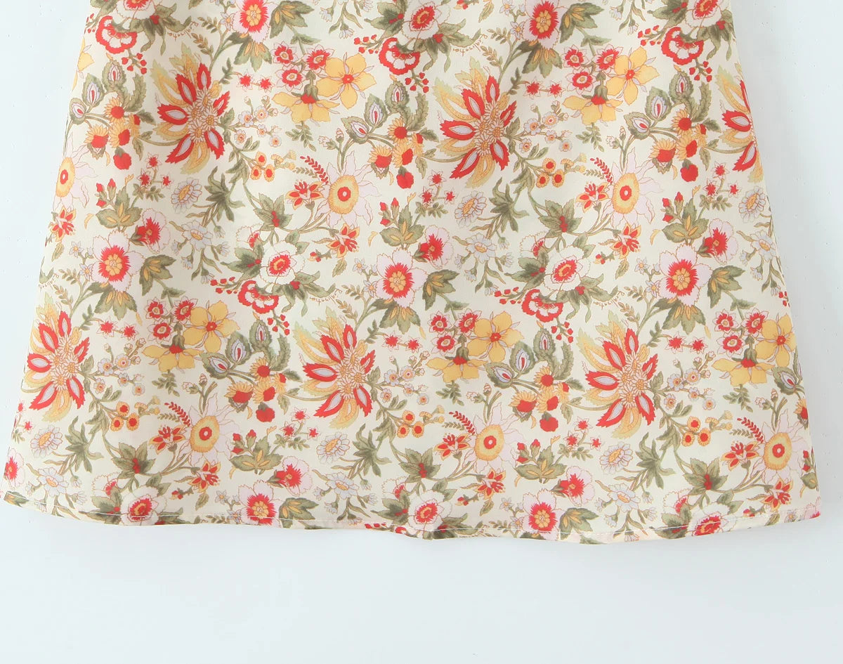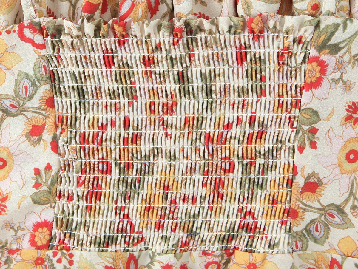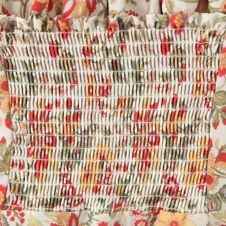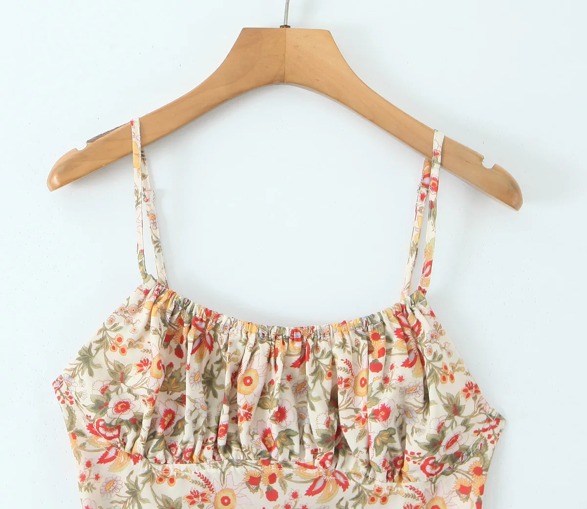 Daiiibabyyy Women Summer French Style Retro Flower Print Ruched Chest Sling Dress Elastic Back Short Chiffon Dresses Holiday Robe Vestido