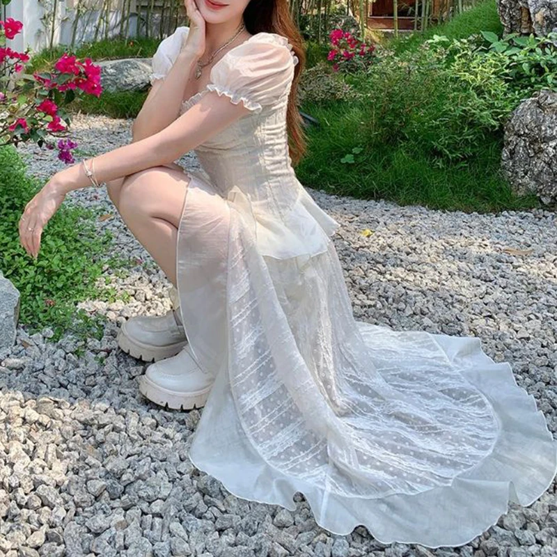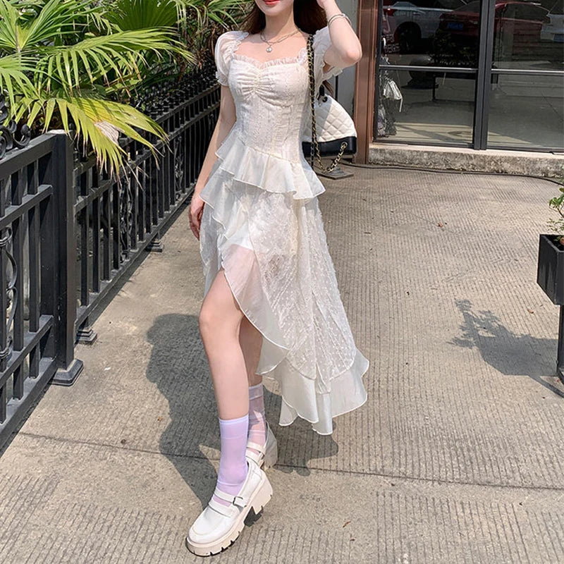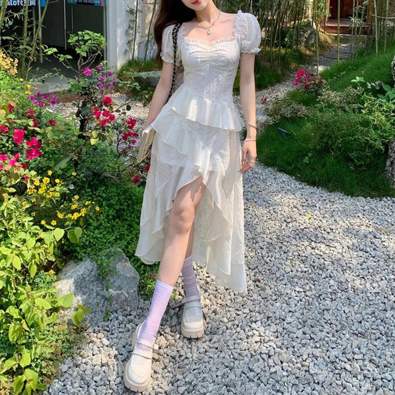 DAIIIBABYYY - Women Sweet Irregular Fashion Dress Elegant French Style Tighten The Waist 2024 Spring Summer New Dress Vintage Fashion Dress