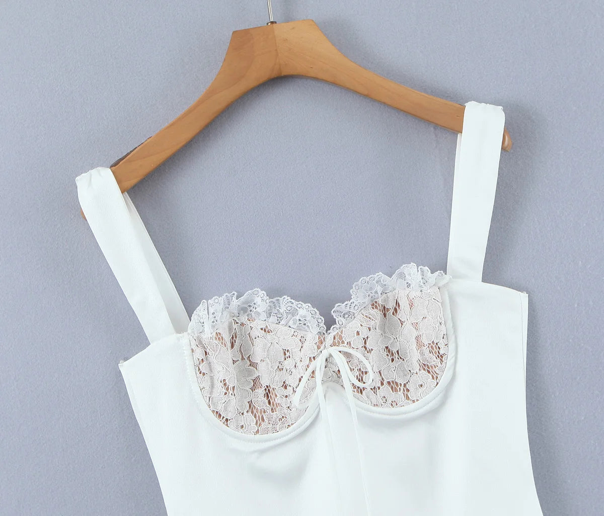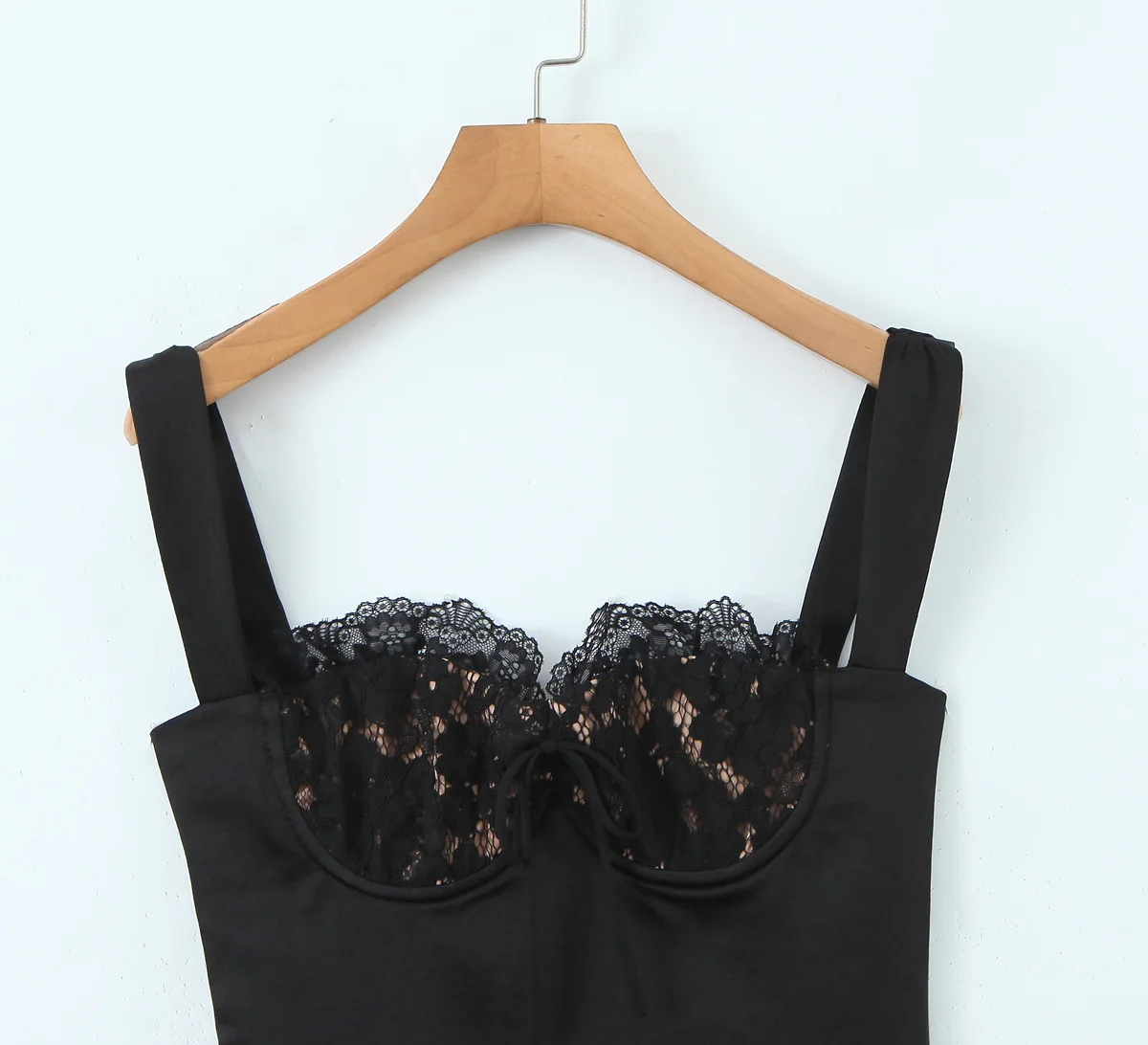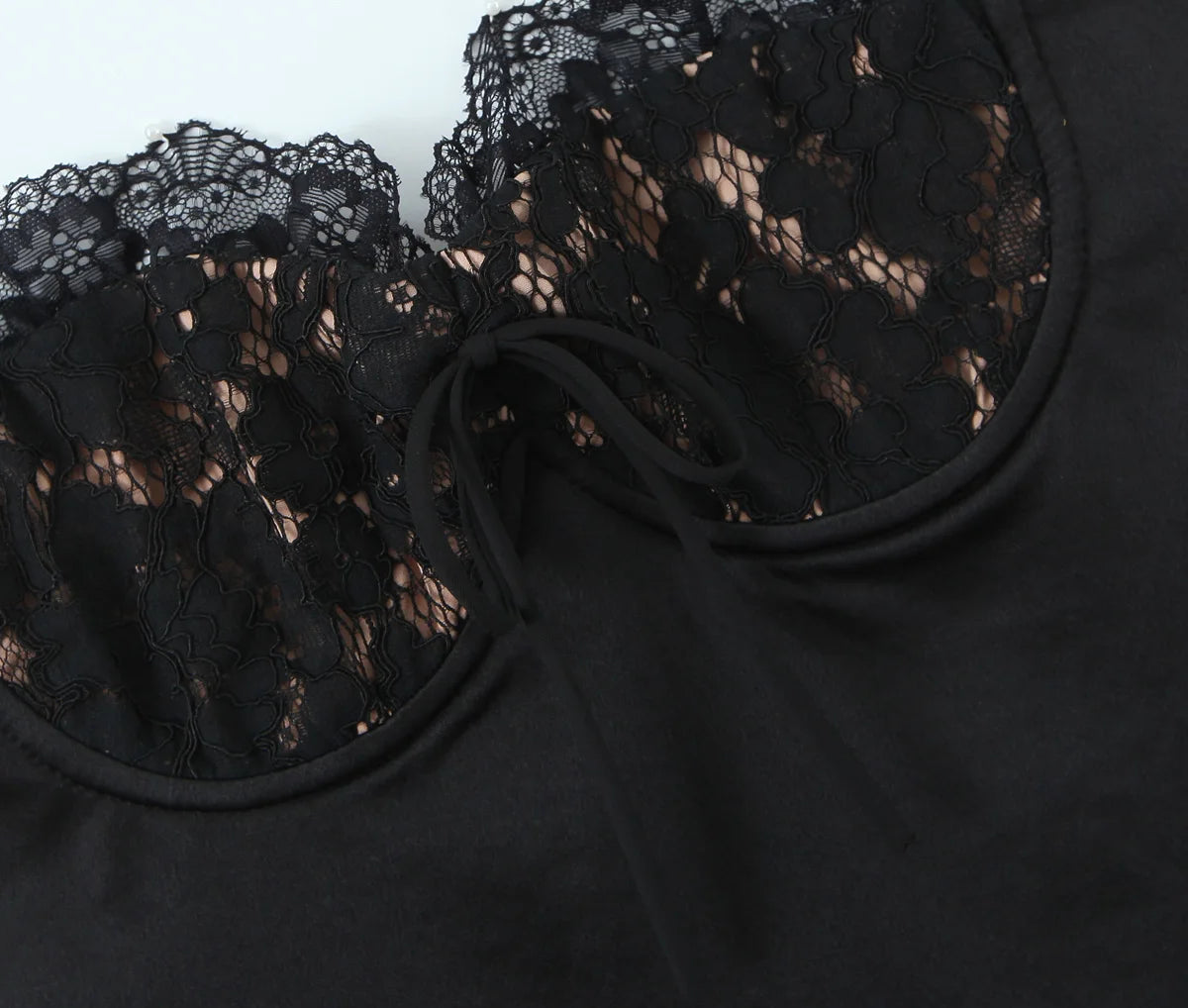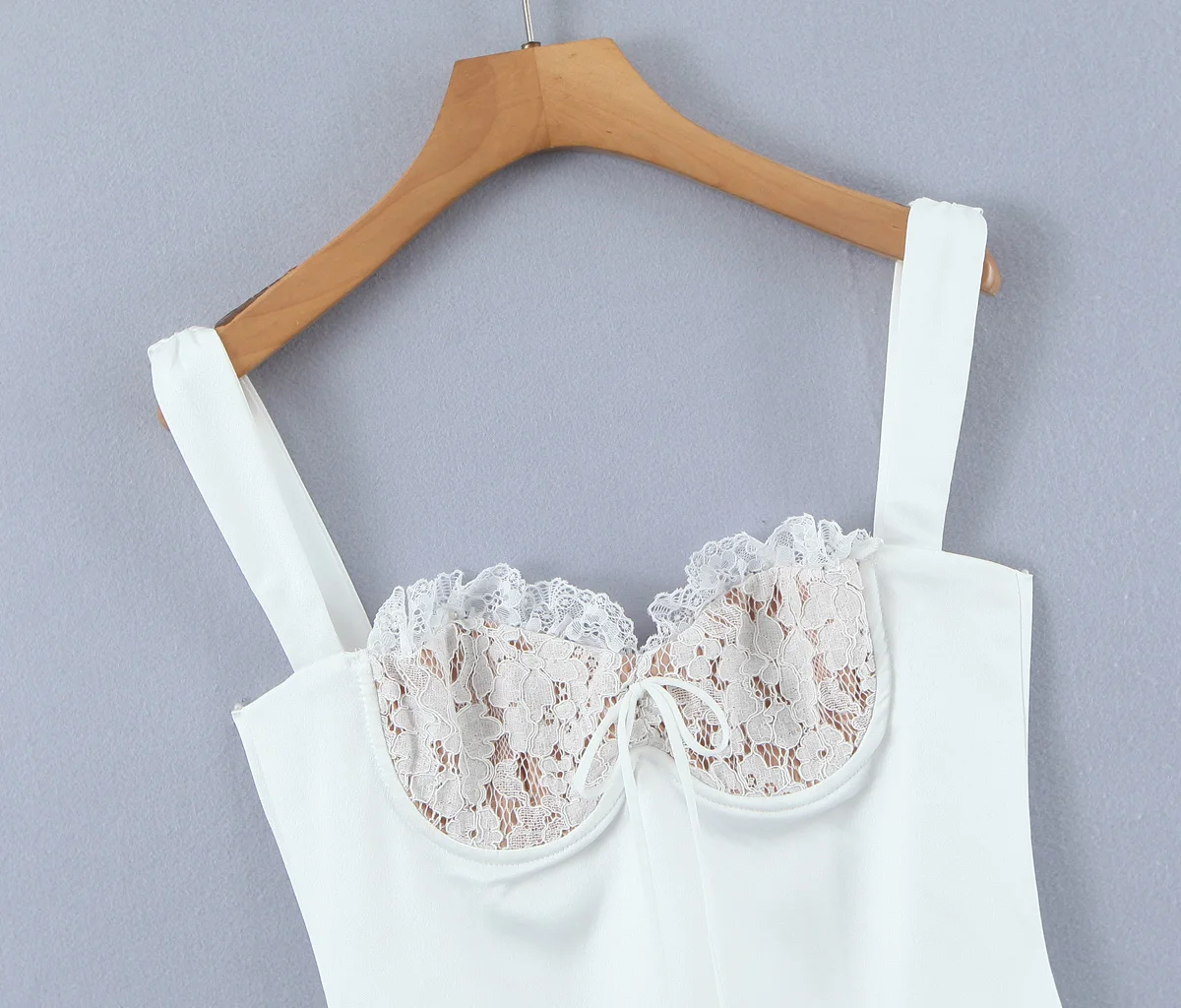 Daiiibabyyy Women V neck Backless Party Skater Short Sling Dress Sexy Stitching Lace Bra Corset Style Spaghetti Strap Mini Dresses