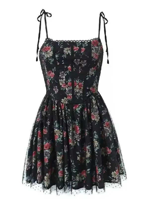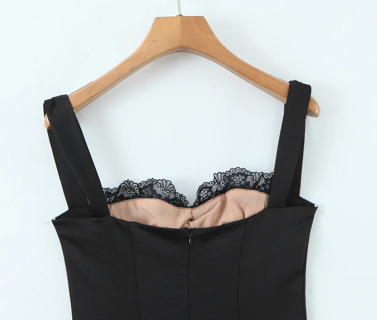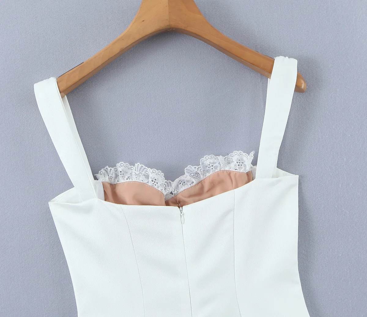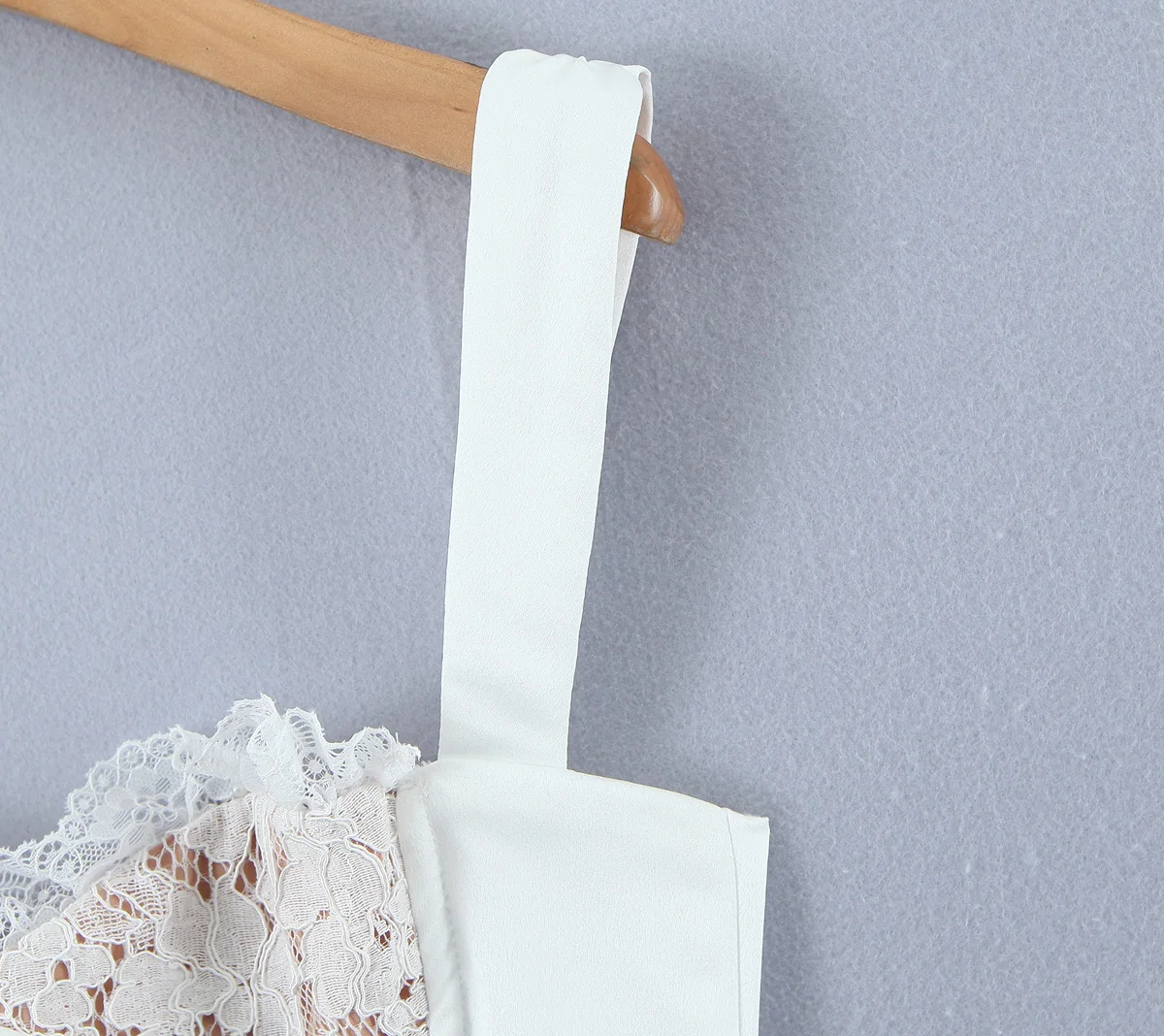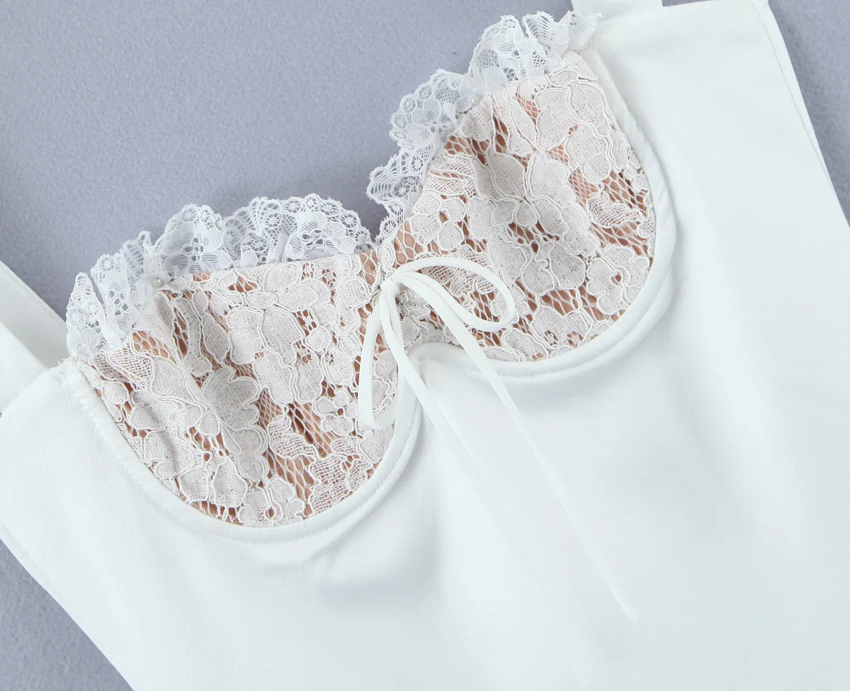 Daiiibabyyy Women V neck Backless Party Skater Short Sling Dress Sexy Stitching Lace Bra Corset Style Spaghetti Strap Mini Dresses