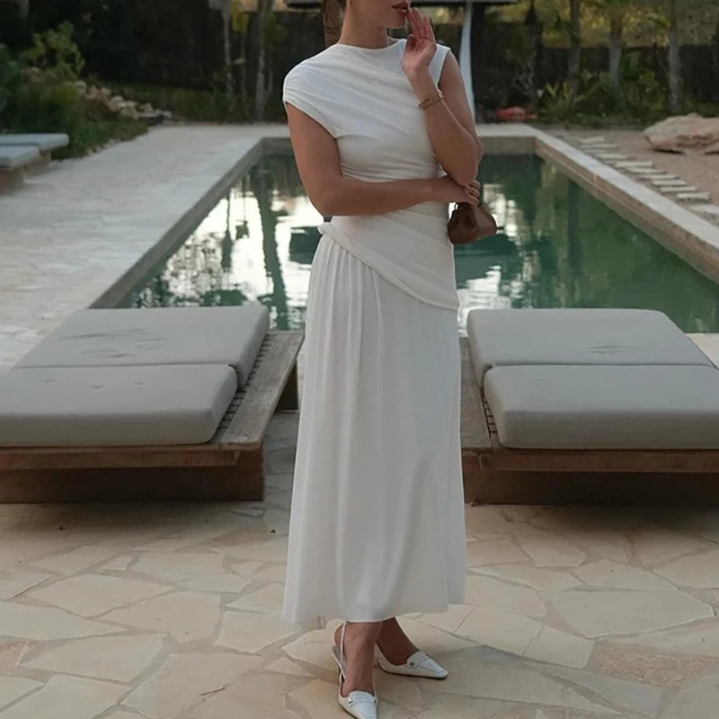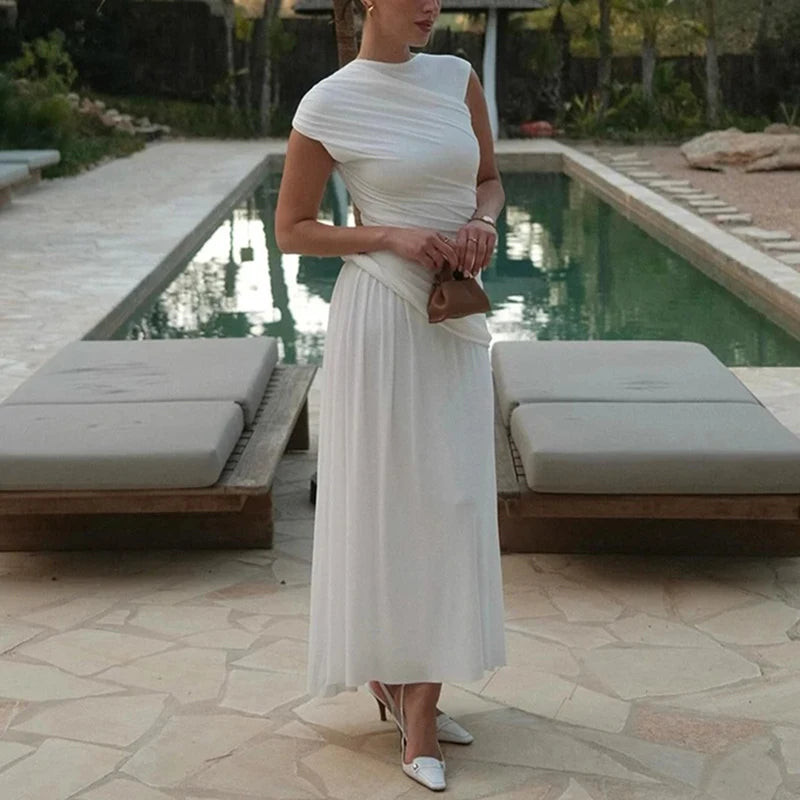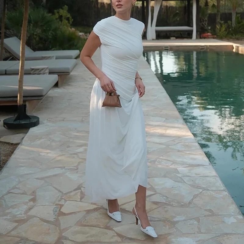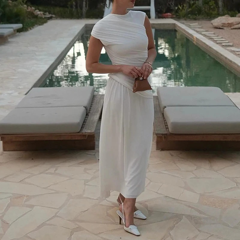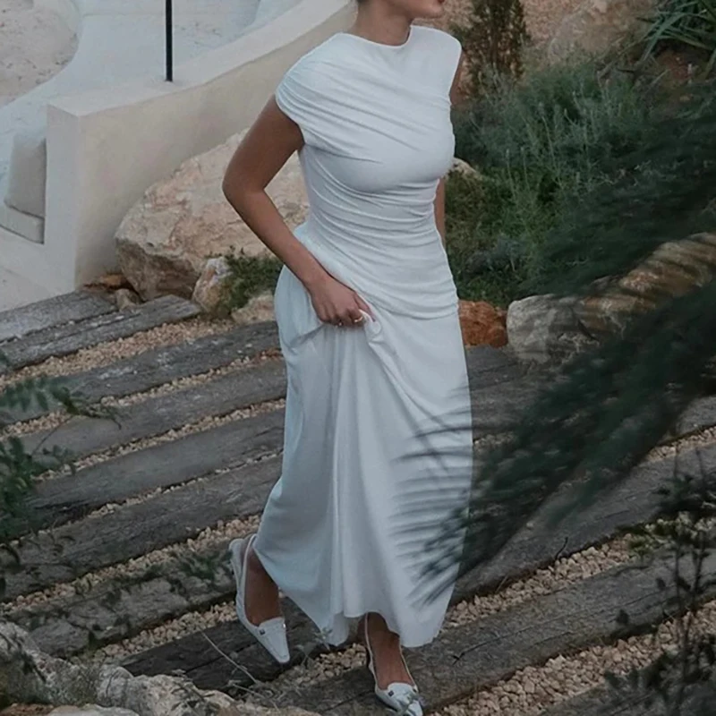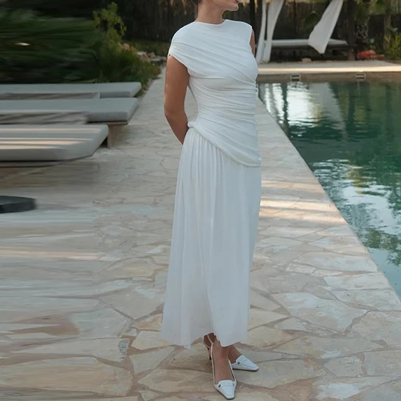 DAIIIBABYYY  -  Women's Fashion Draped Solid Long Dress Casual Sleeveless Patchwork Maxi Dress Elegant O Neck High Waist Slim Party Dresses
