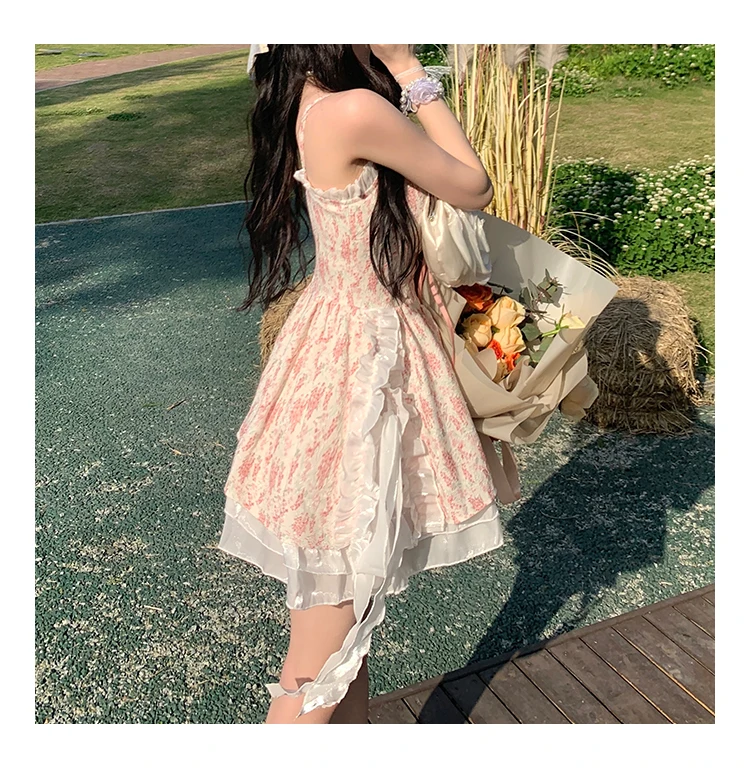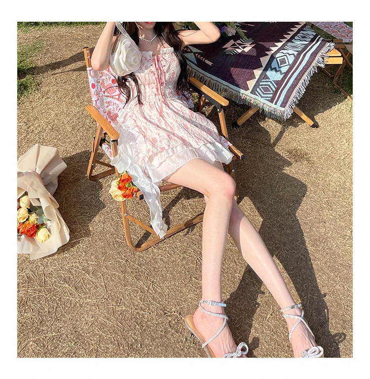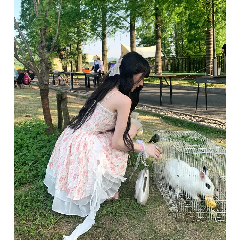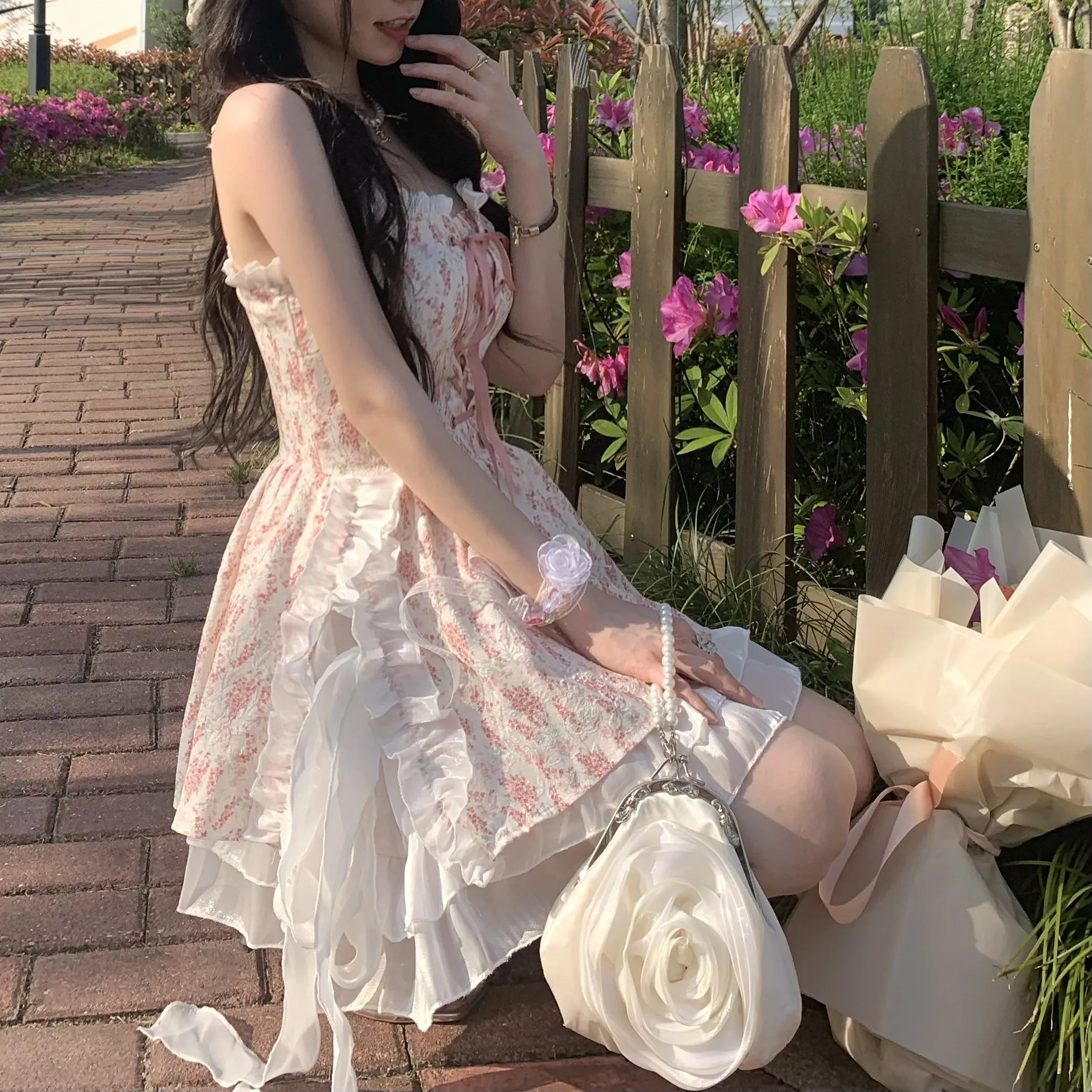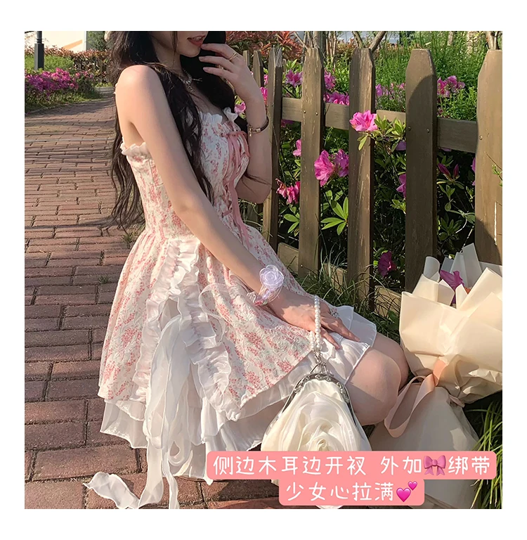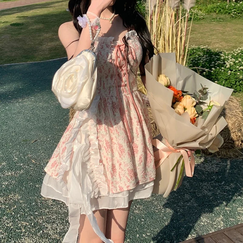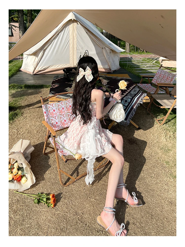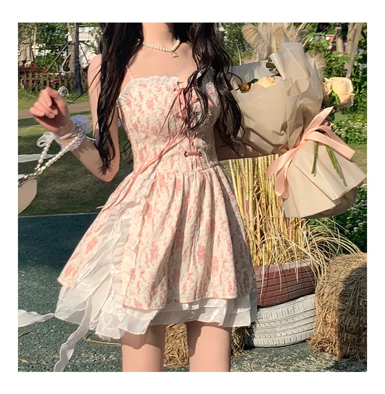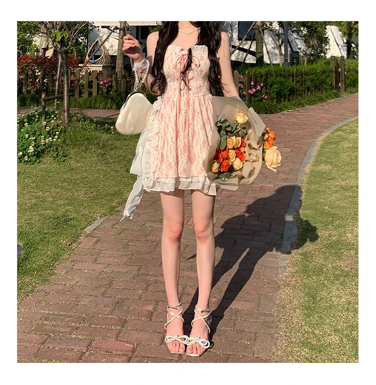 DAIIIBABYYY  -  Womens Pink Dress Printed Sling Sleeveless Sexy Europe and America Fashion Temperament Minimalist Female Summer Miniskirt