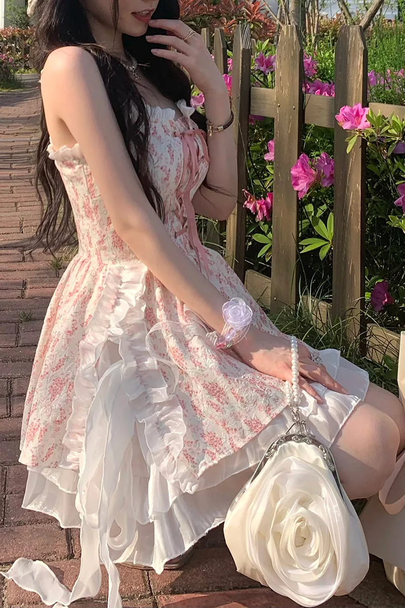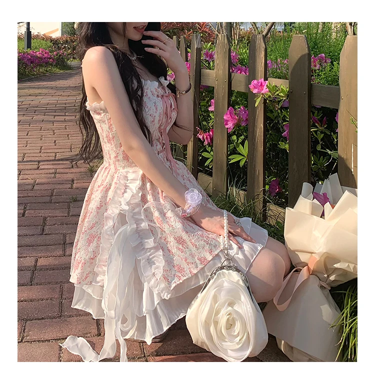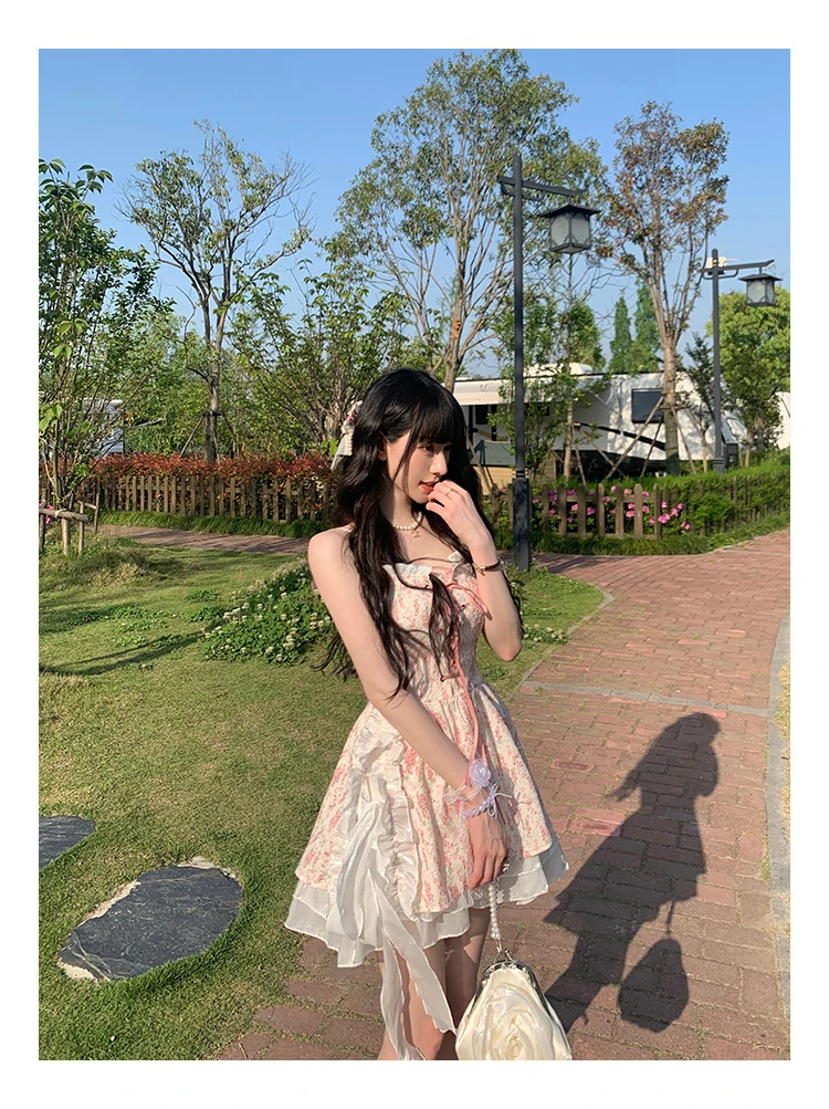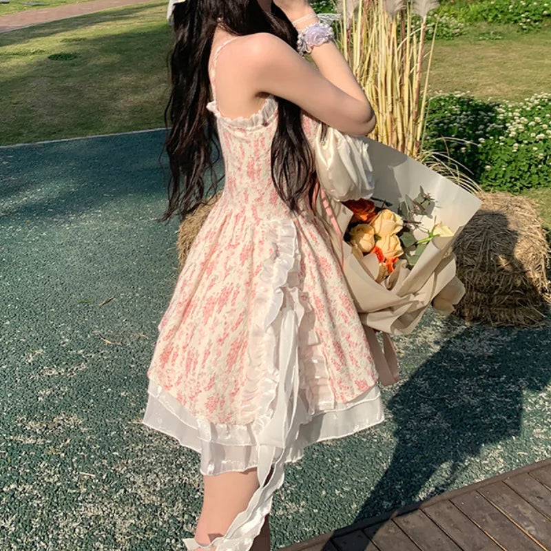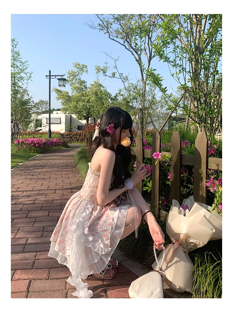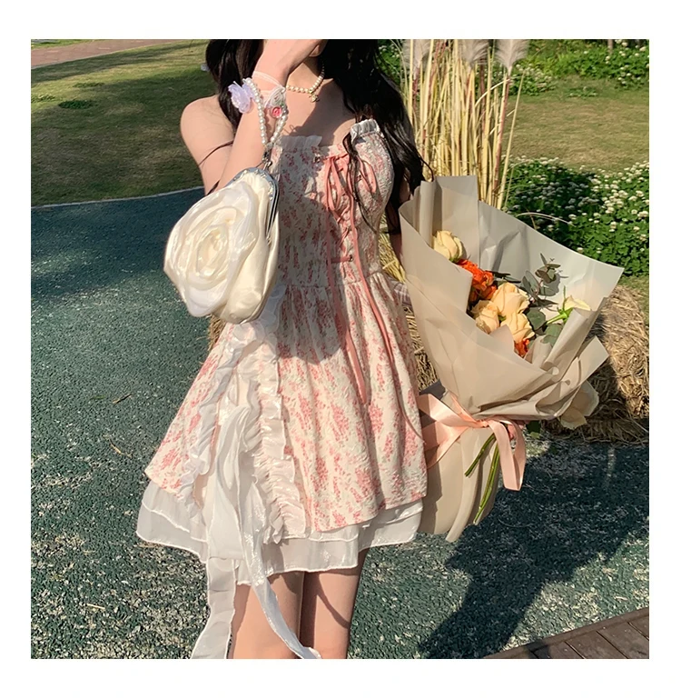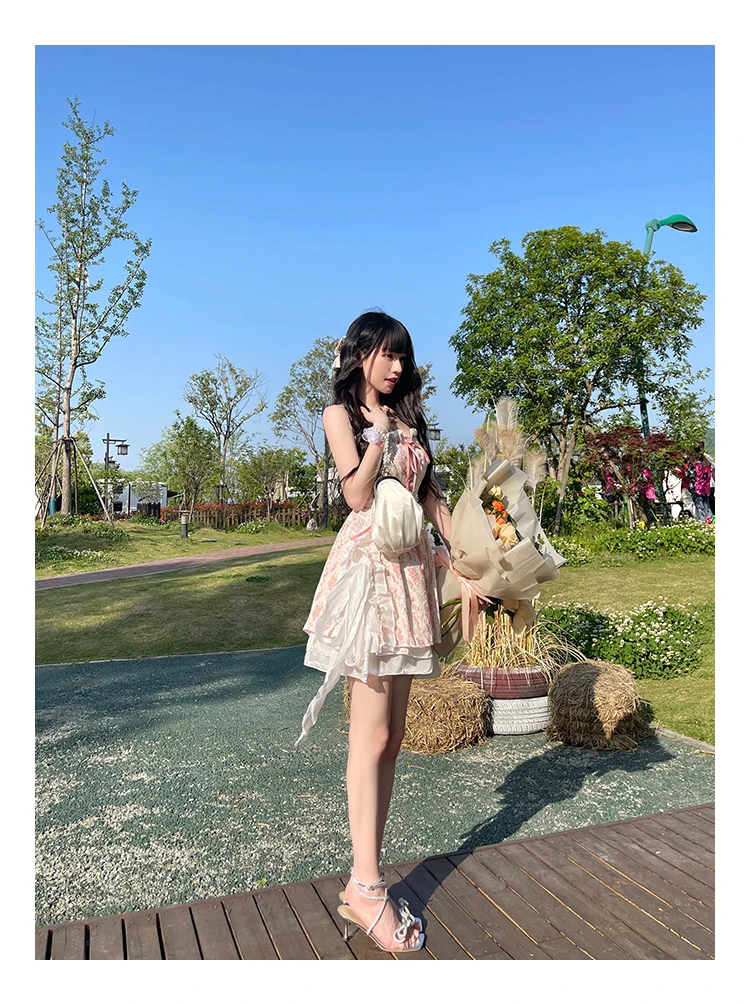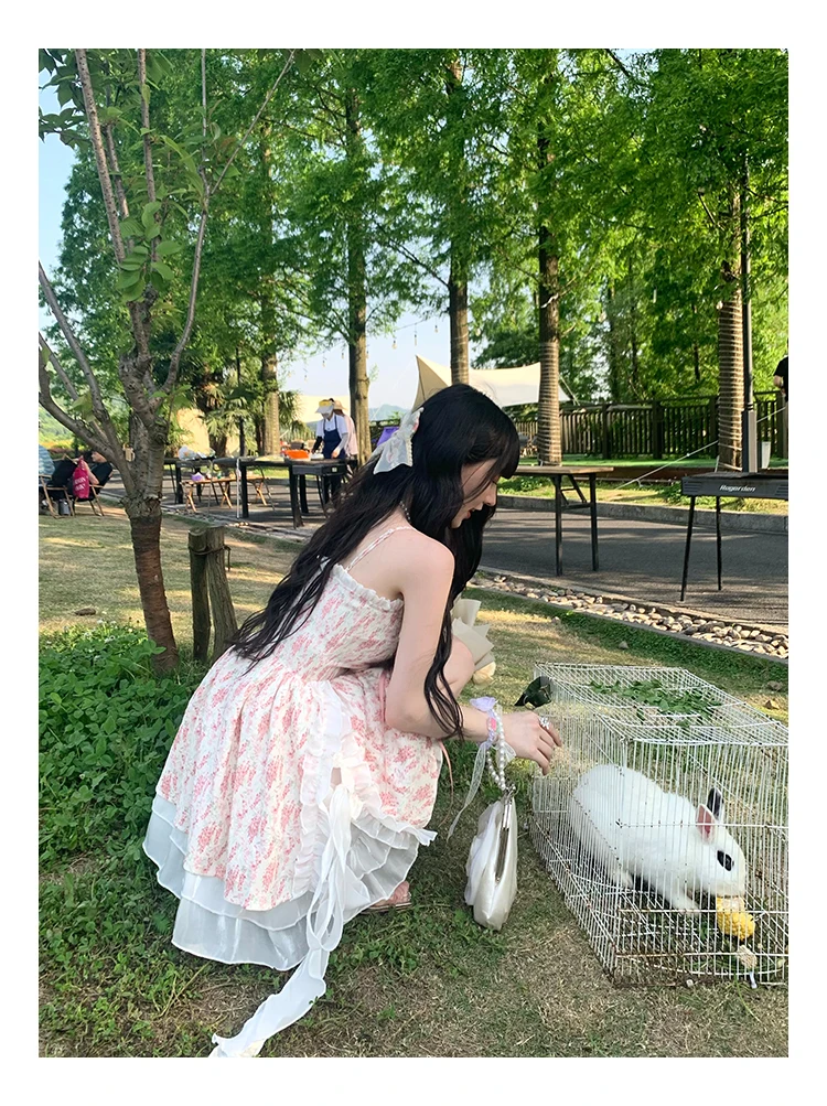 DAIIIBABYYY  -  Womens Pink Dress Printed Sling Sleeveless Sexy Europe and America Fashion Temperament Minimalist Female Summer Miniskirt