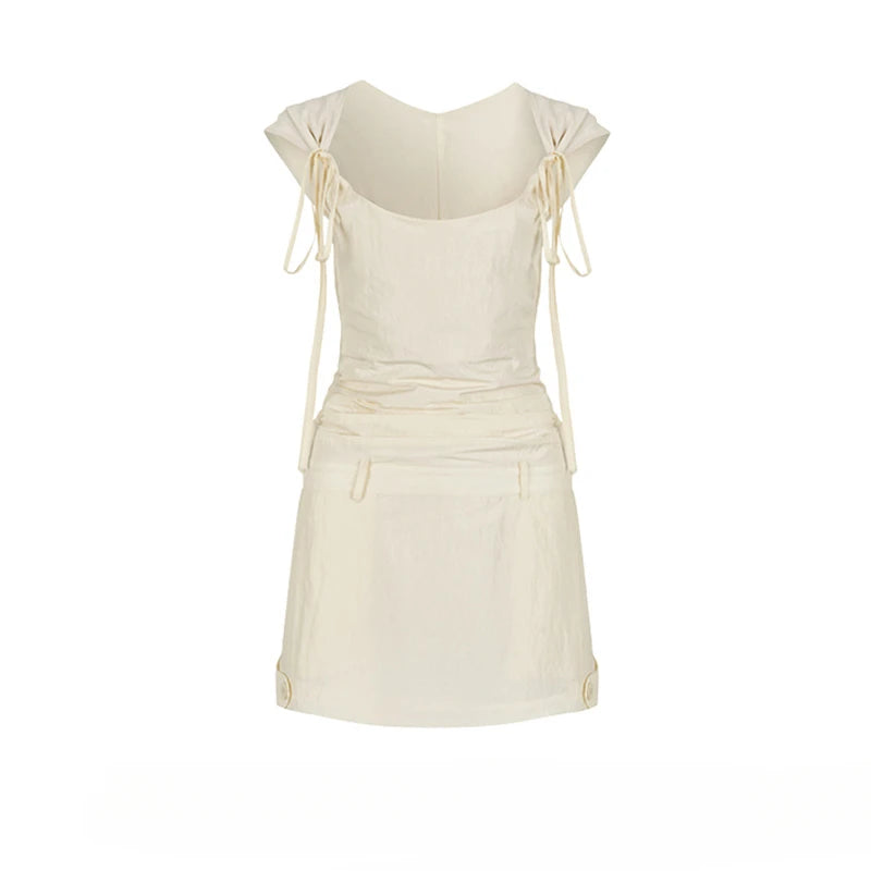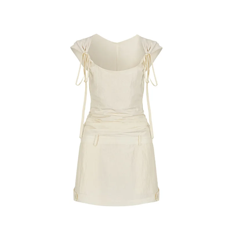 DAIIIBABYYY - Women's Solid Color Small Flying Sleeve Lace-up Pleated Dresses Summer Streetwear High Waist Slimming Short Dress Female Clothes