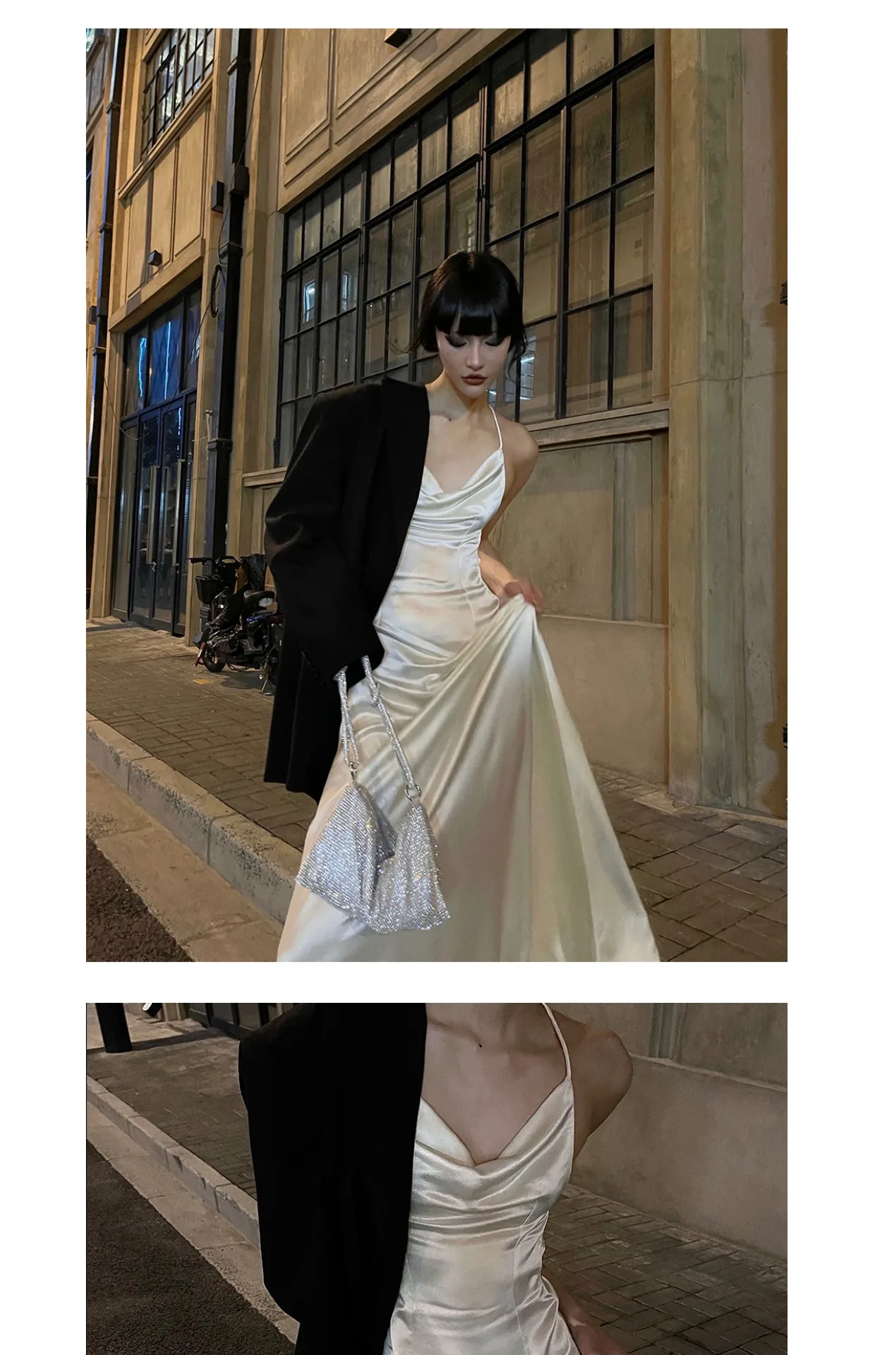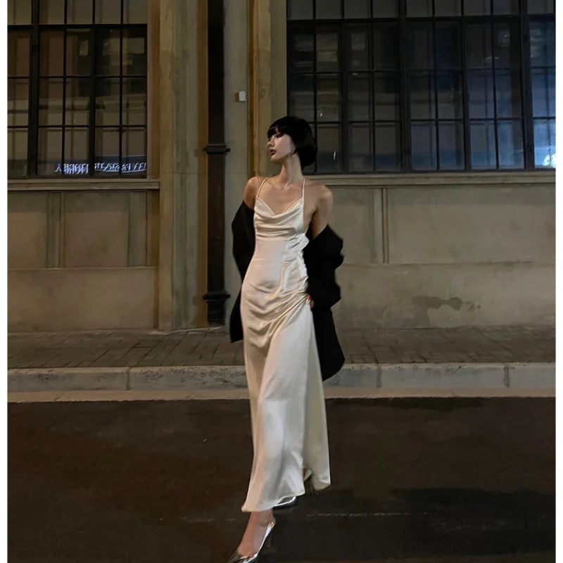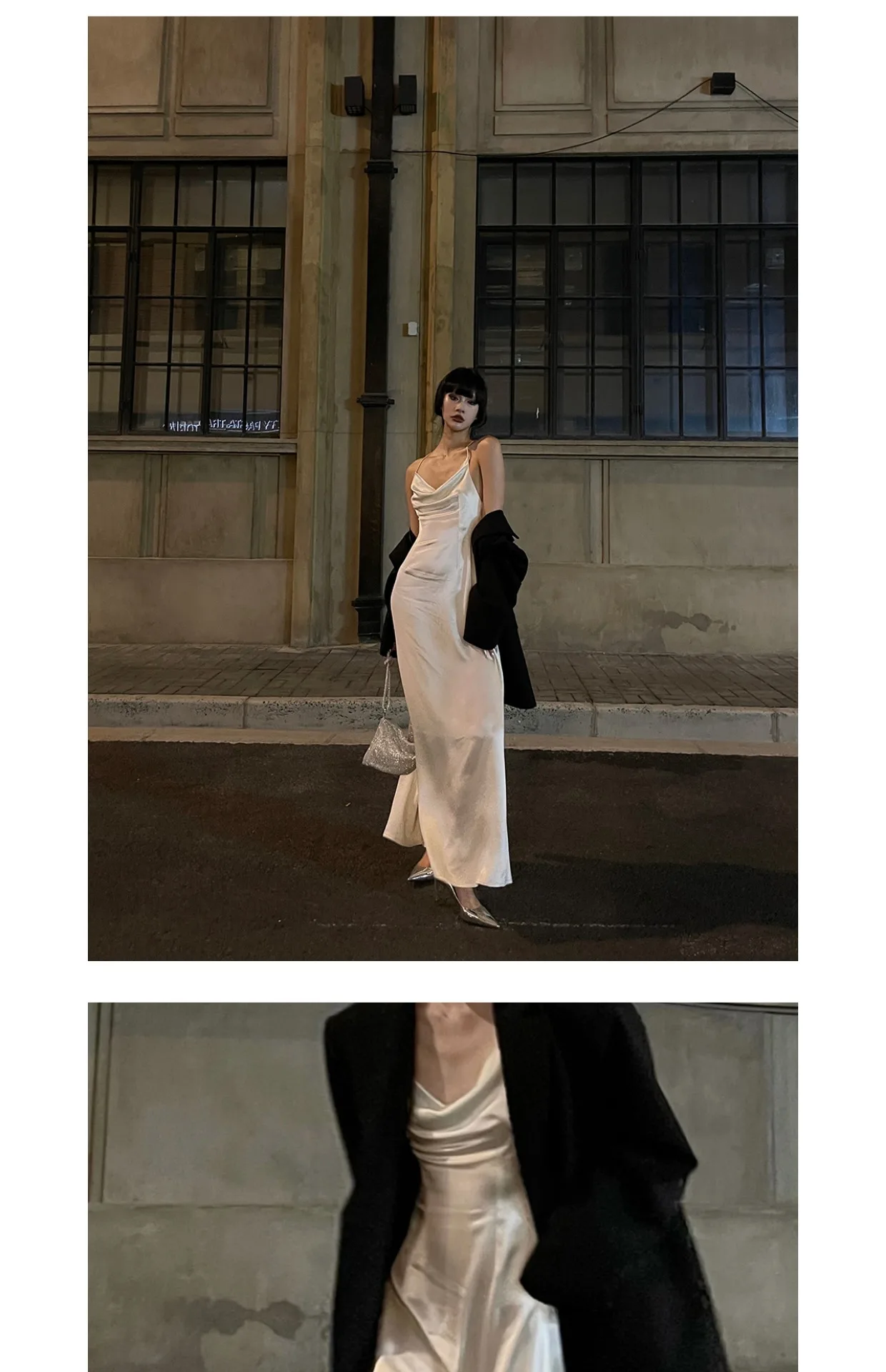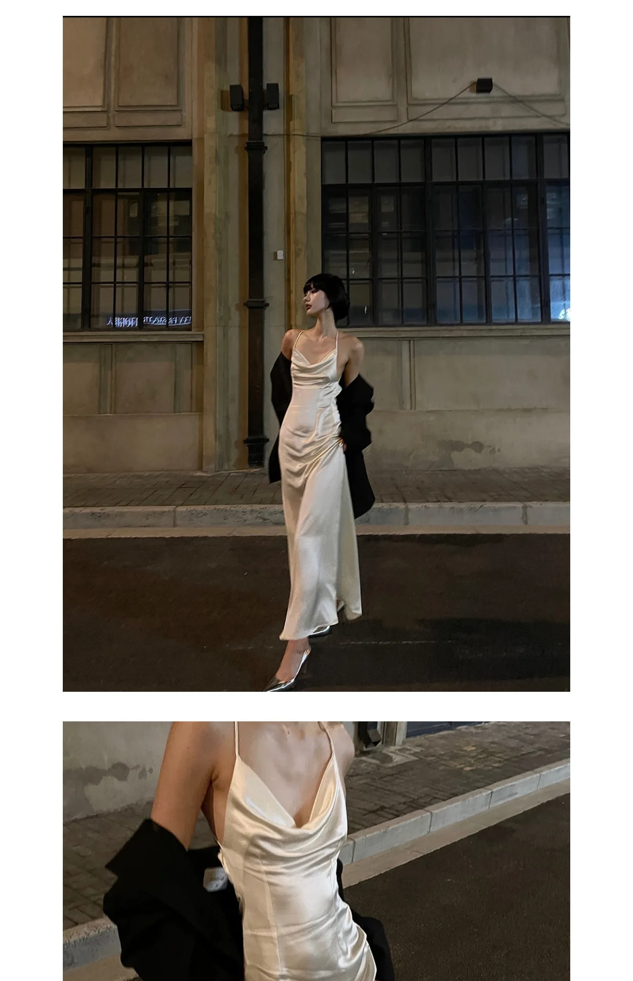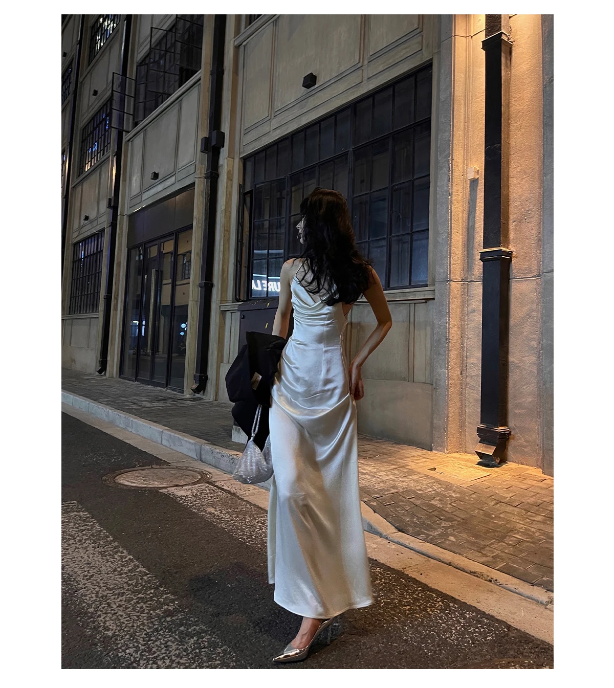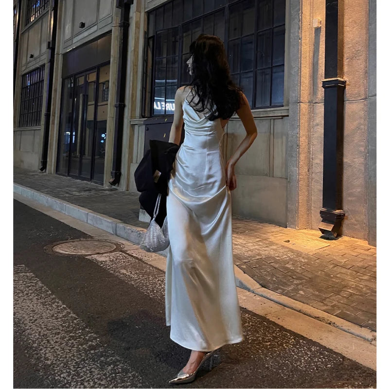 DAIIIBABYYY - Womens White Sexy Dress Sling Sleeveless Europe and America Fashion Luxury Backless Spicy Girl Female NEW Summer Long Skirt