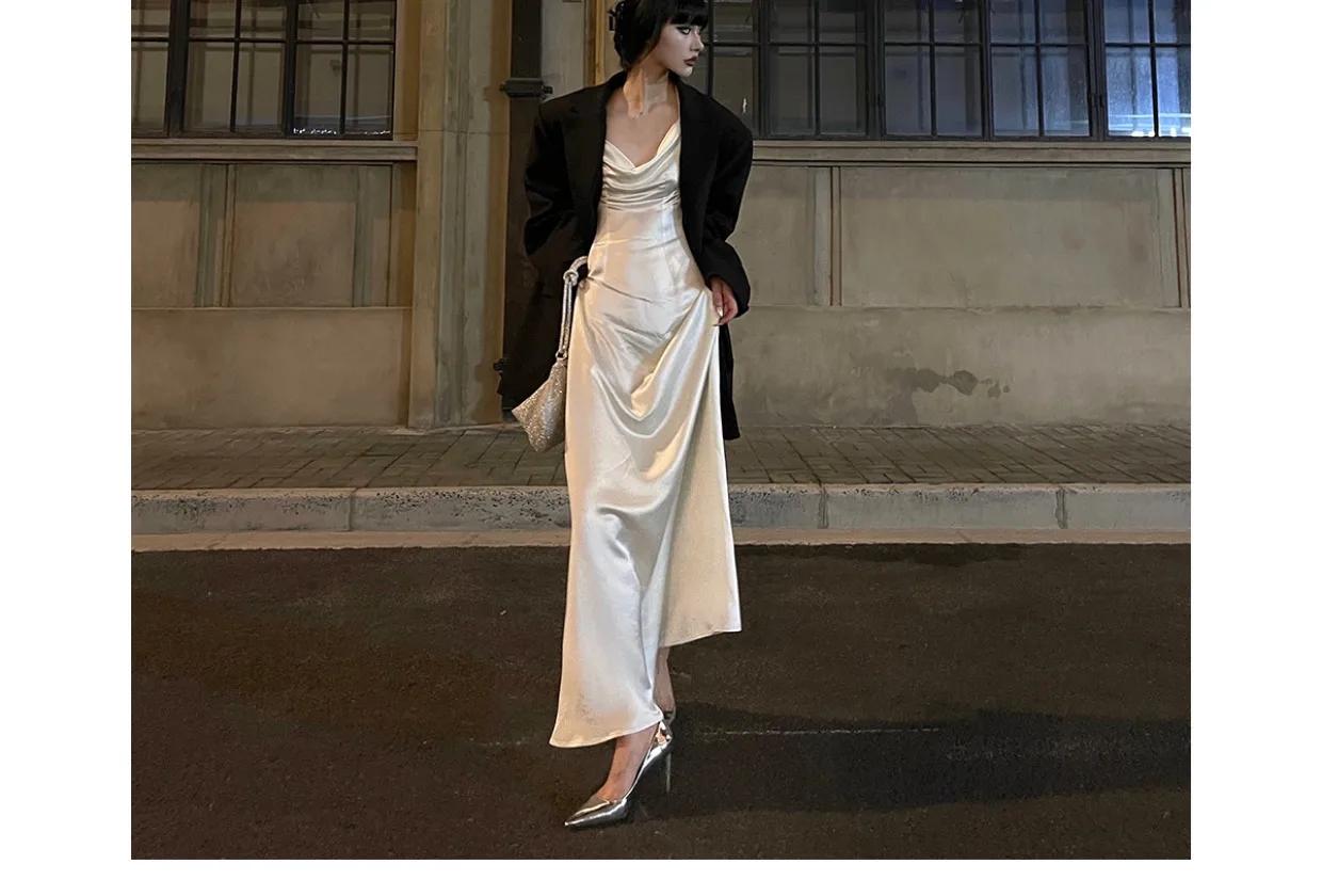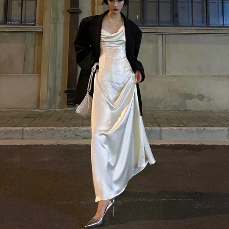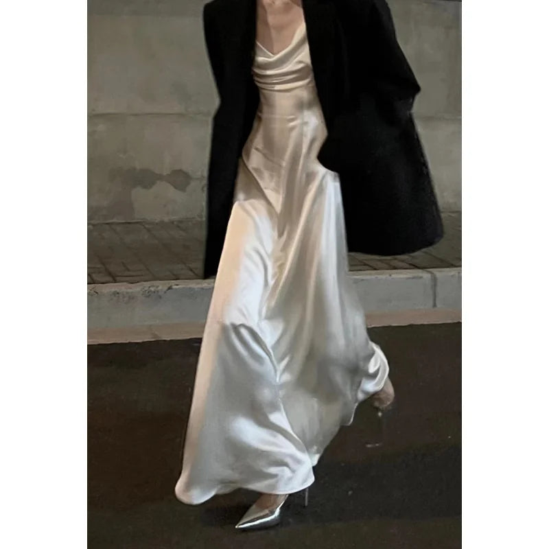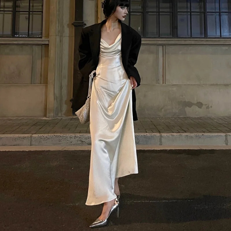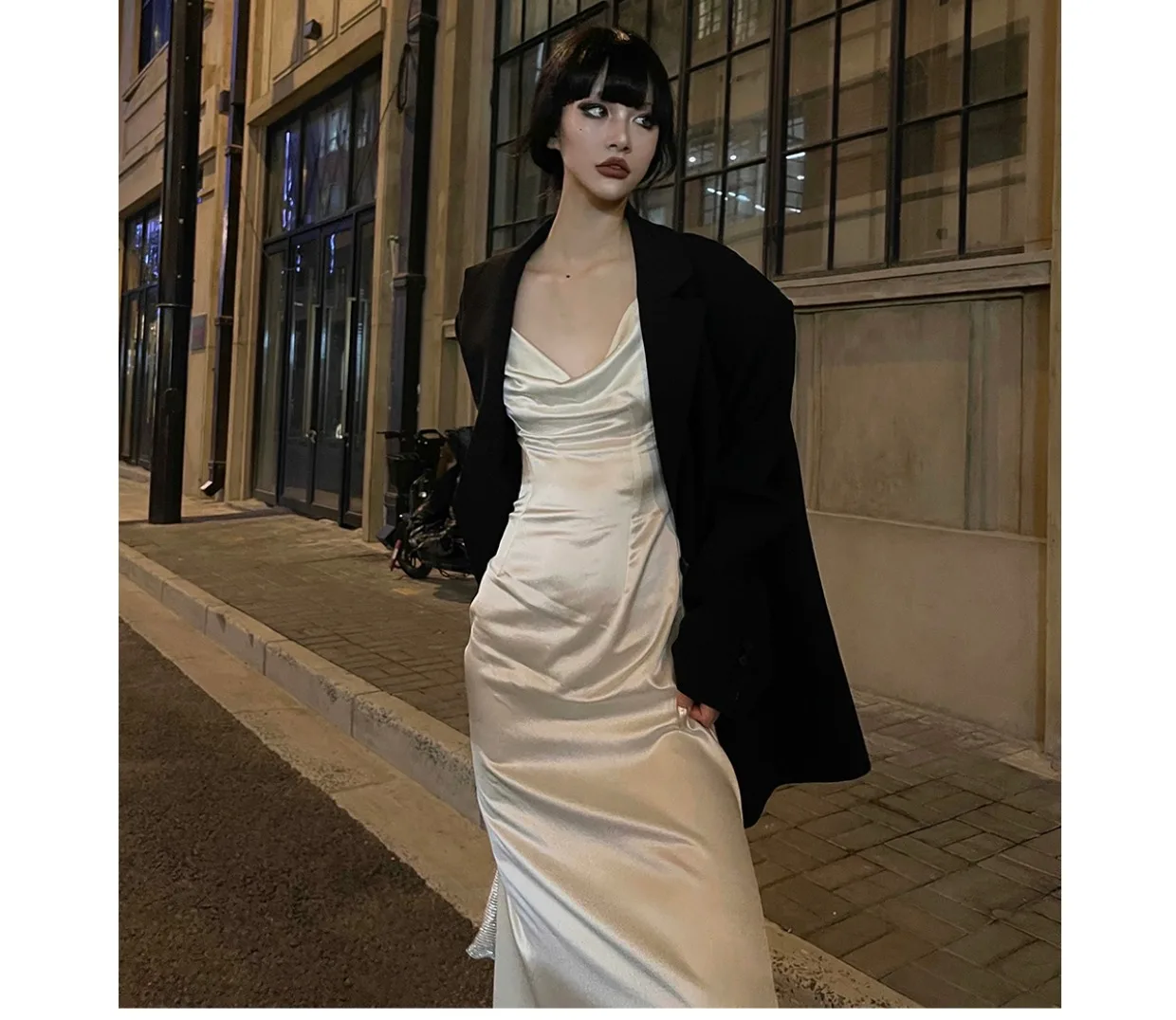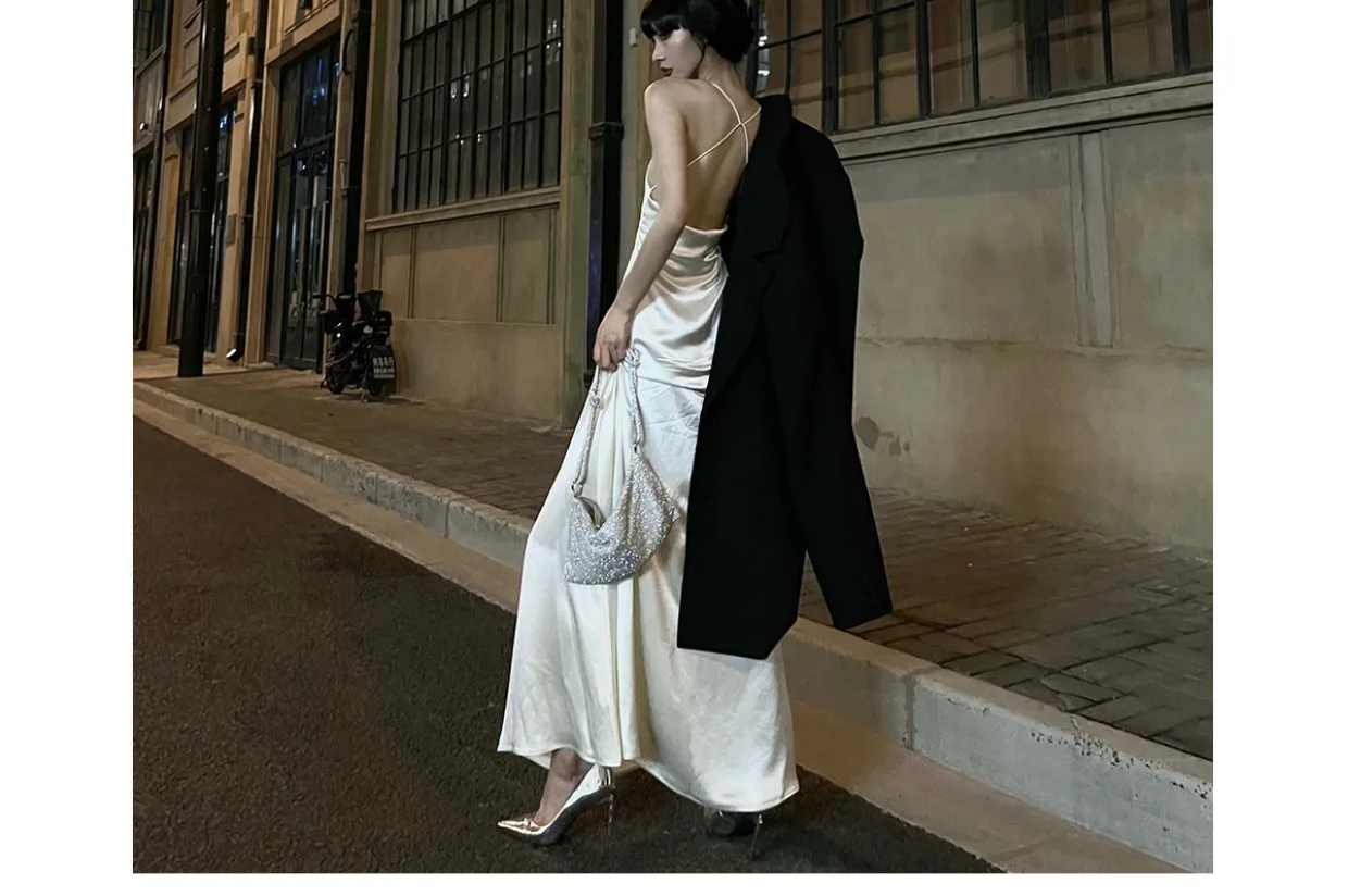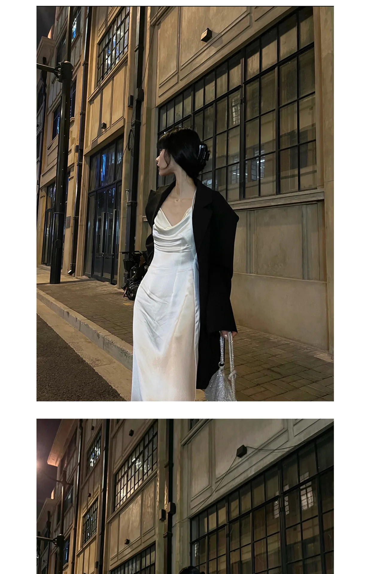 DAIIIBABYYY - Womens White Sexy Dress Sling Sleeveless Europe and America Fashion Luxury Backless Spicy Girl Female NEW Summer Long Skirt