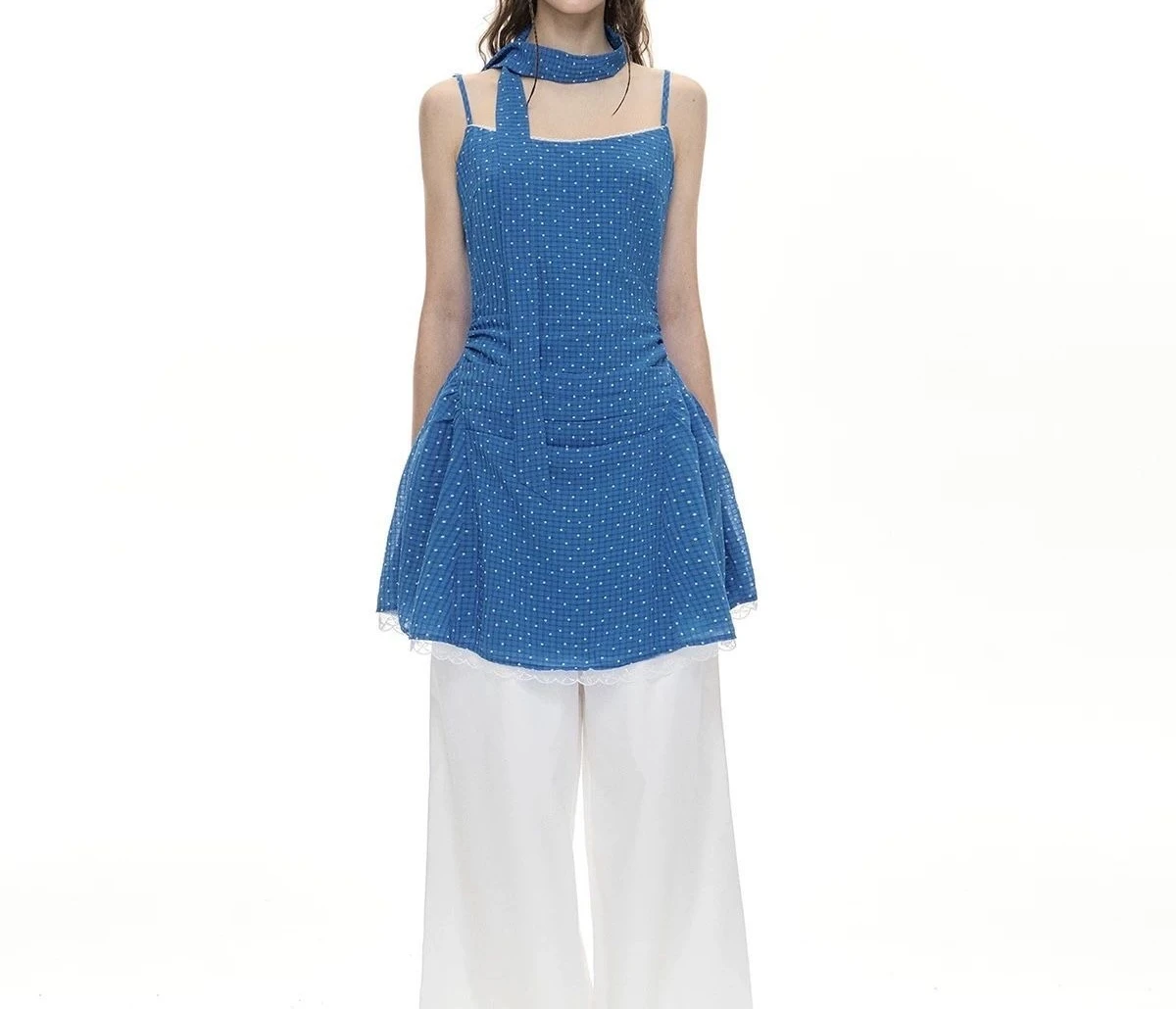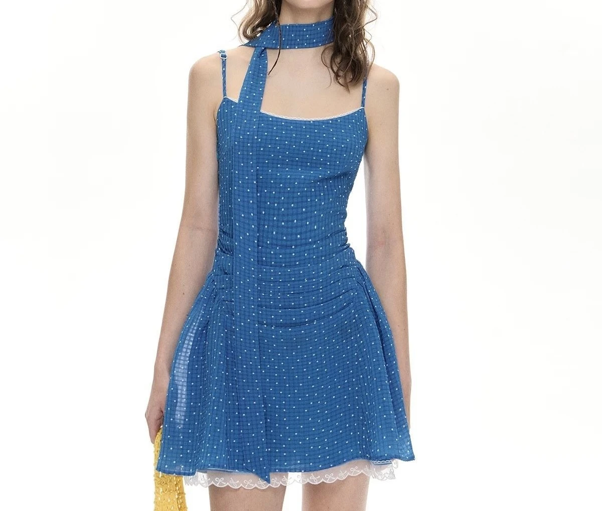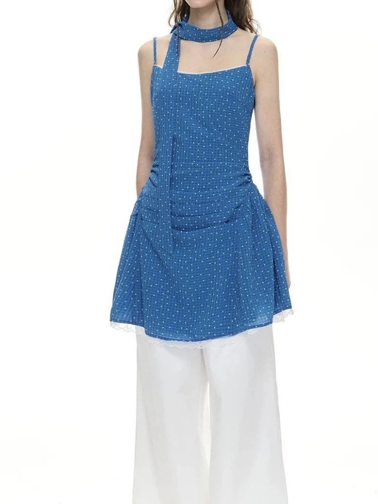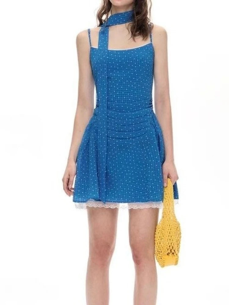 Daiiibabyyy Y2k Aesthetic Polka Dot A-Line Slip Dresses Women Sweet Lace Patchwork Grunge Dress 2025 Summer Harajuku Pleated Mini Vestidos