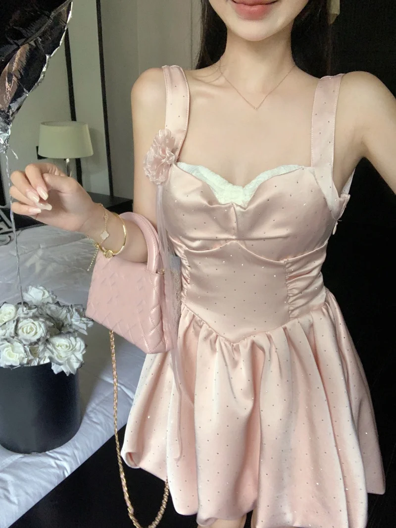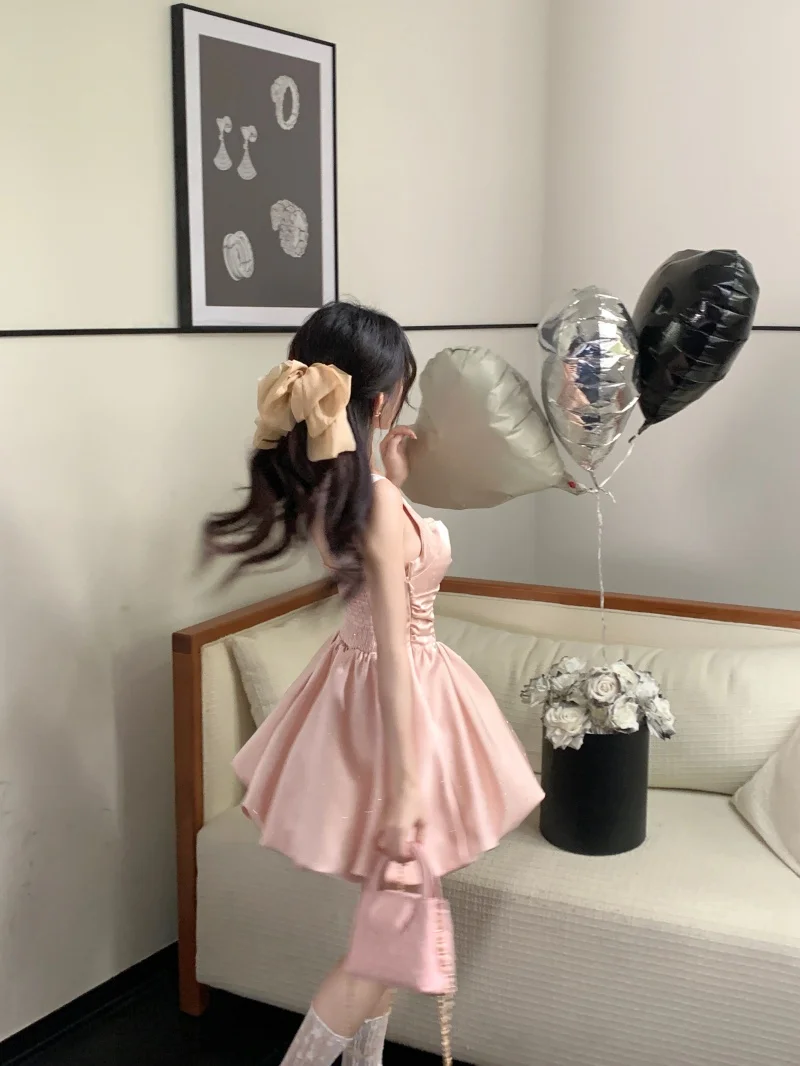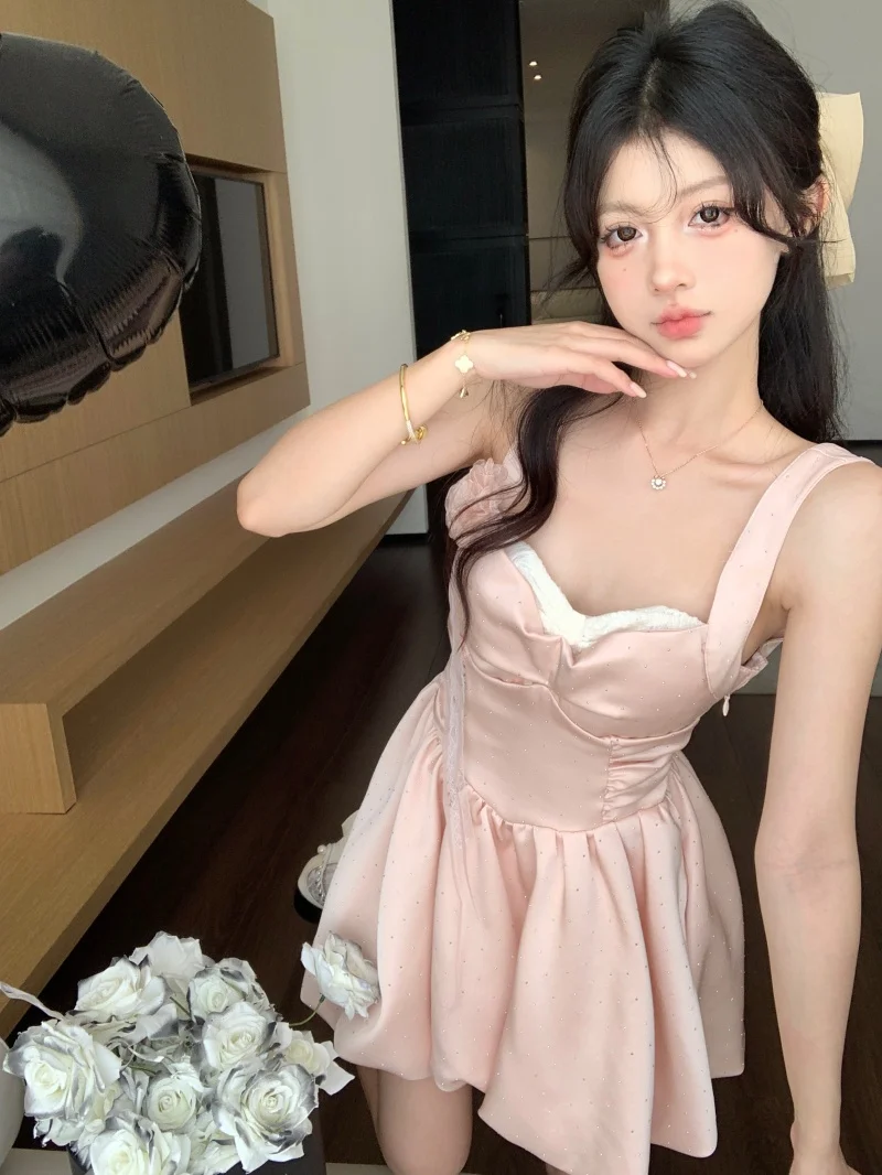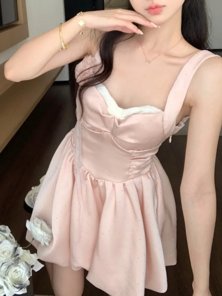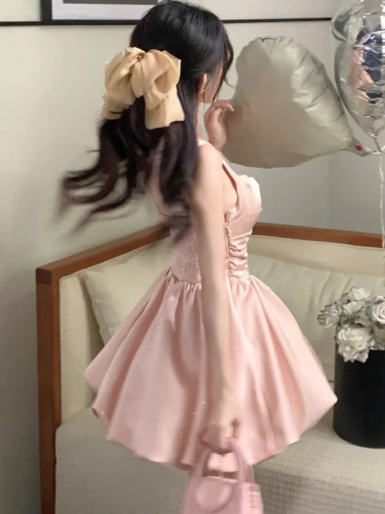 DAIIIBABYYY - Y2K Sweet Mini Dress for Women Korean Spaghetti Strap Sleeveless Birthday Party Dresses Elegant Ball Gown Prom Short Vestidos