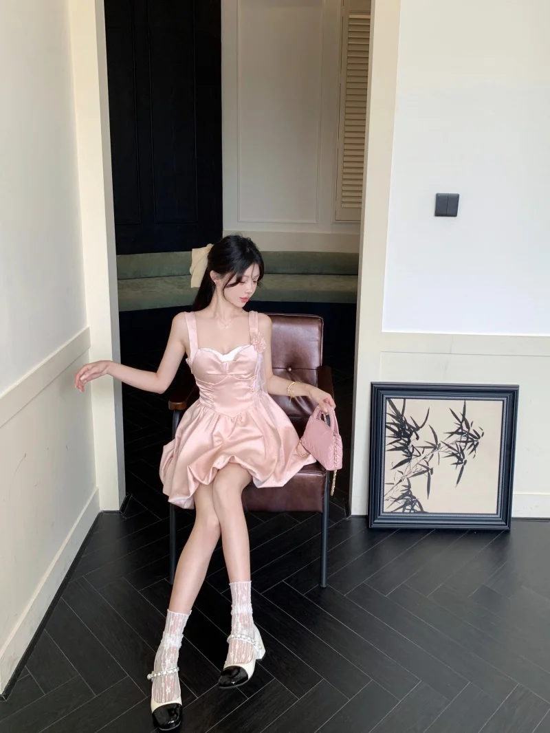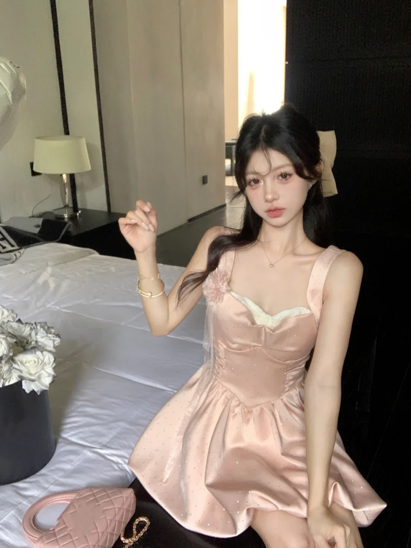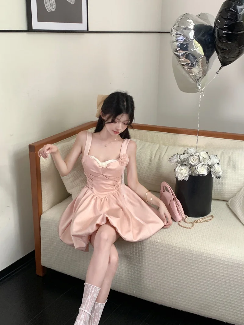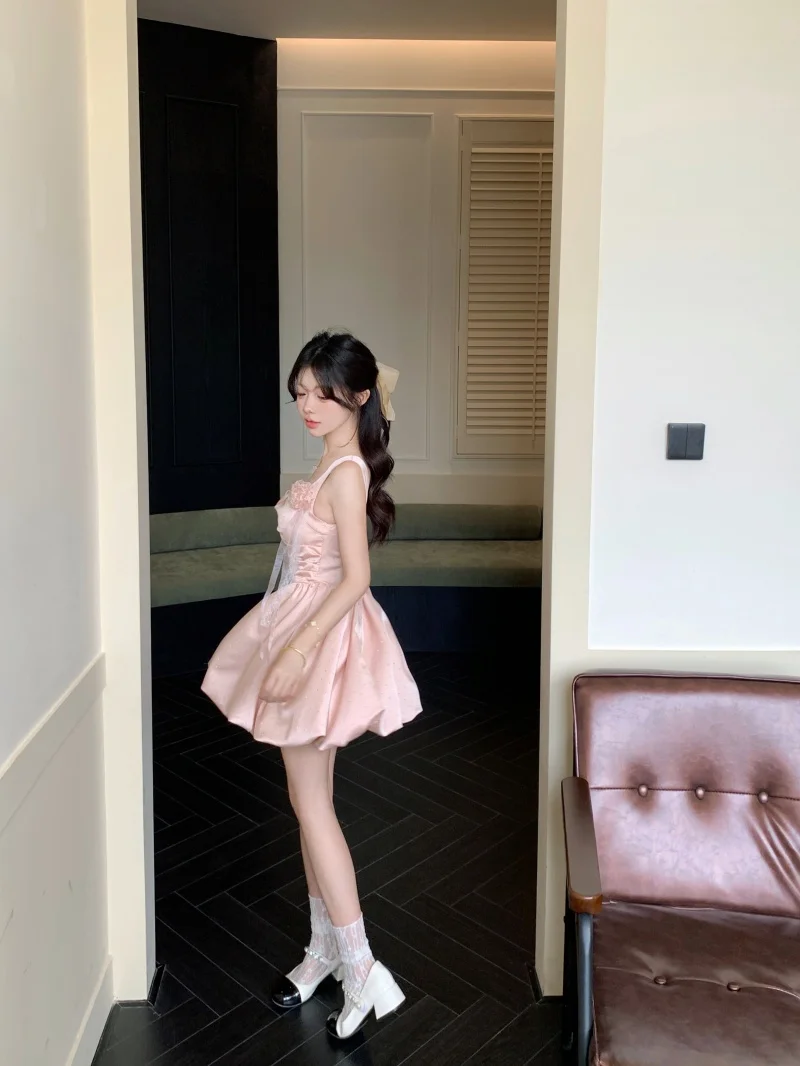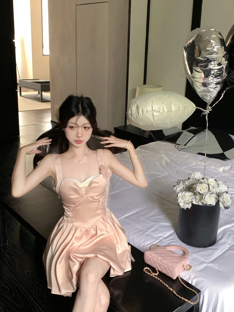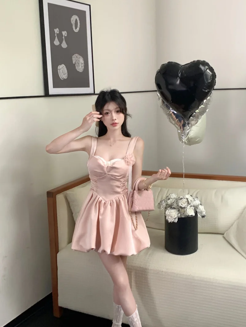 DAIIIBABYYY - Y2K Sweet Mini Dress for Women Korean Spaghetti Strap Sleeveless Birthday Party Dresses Elegant Ball Gown Prom Short Vestidos
