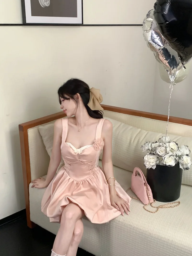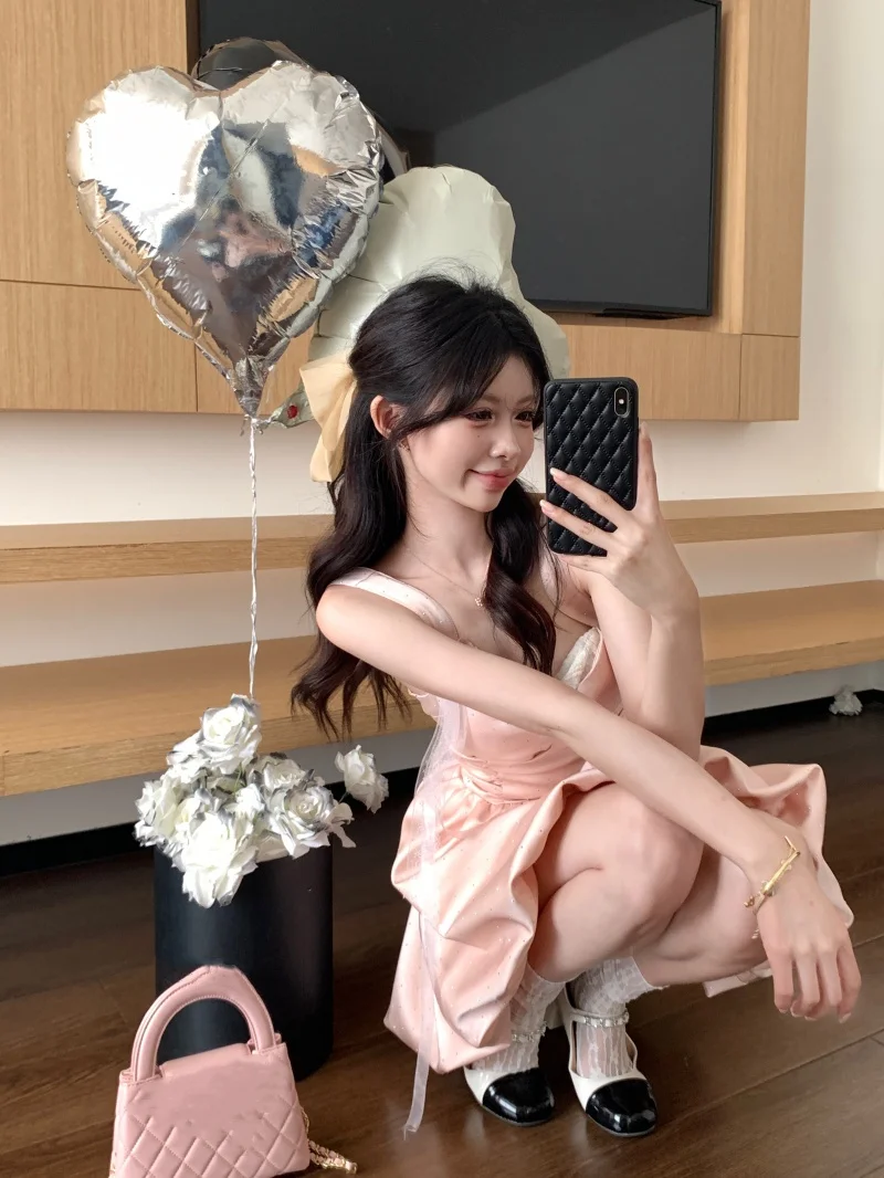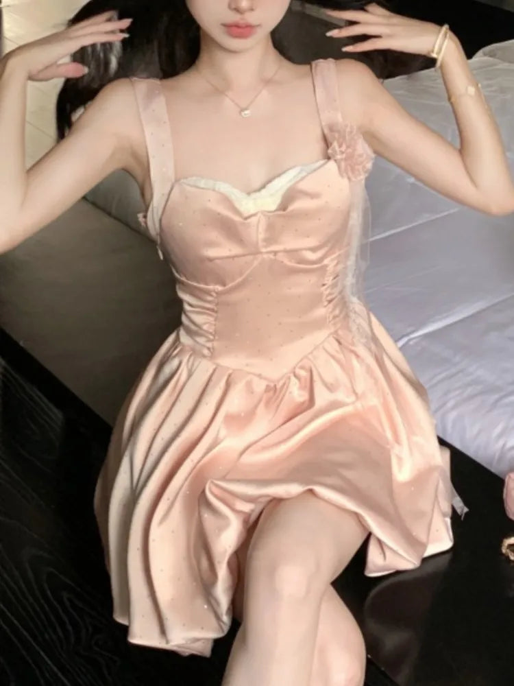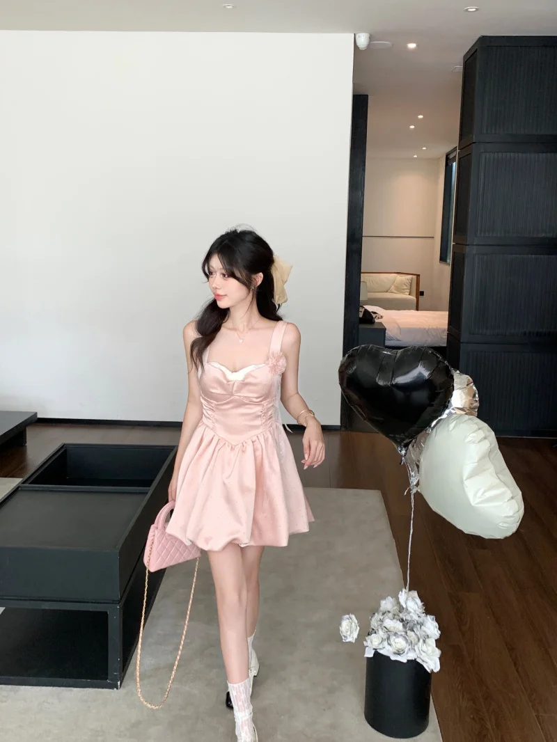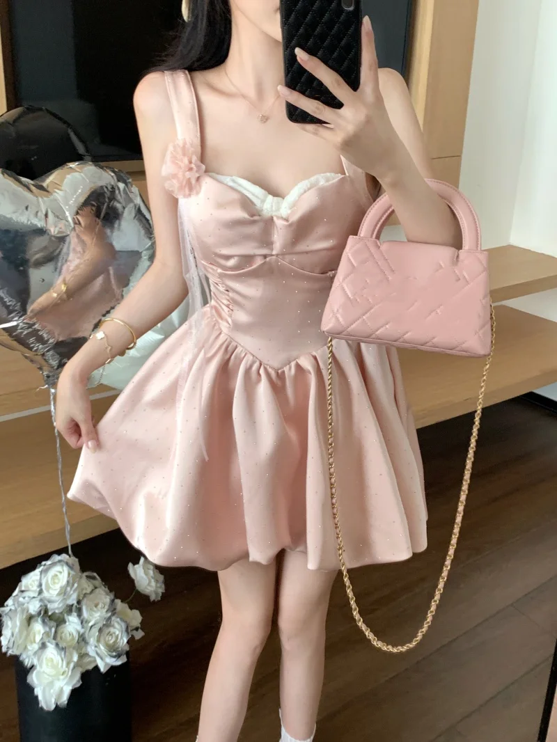 DAIIIBABYYY - Y2K Sweet Mini Dress for Women Korean Spaghetti Strap Sleeveless Birthday Party Dresses Elegant Ball Gown Prom Short Vestidos