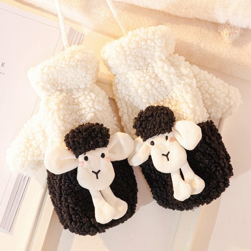 1Pair Women Girl Lovely Gloves Winter Plush Korean Sheep Gloves Faux Fur Cute Full Finger Thick Gloves Mittens Christmas Gloves
