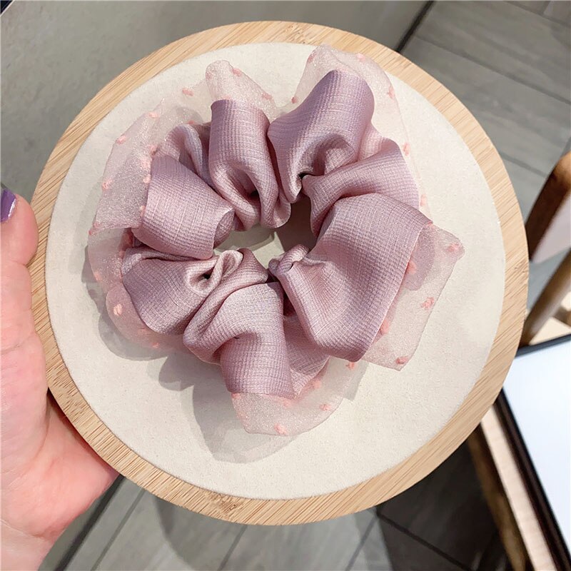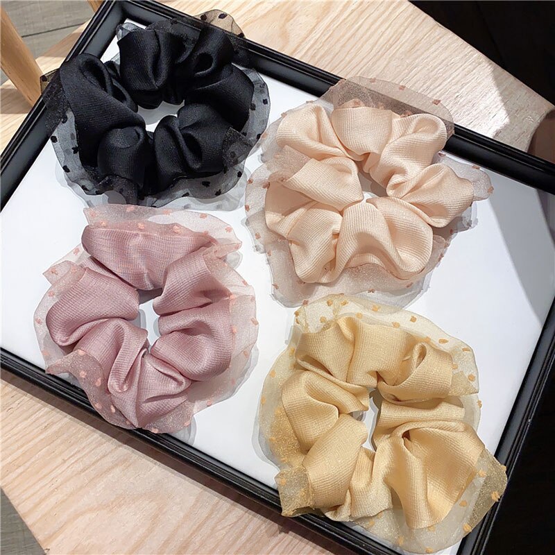 1Pc Women Hair Bands Hair Accessories Chiffon Scrunchies for Girls Lace Dot Hair Tie Elastics Bezel Women Ponytail Headbands