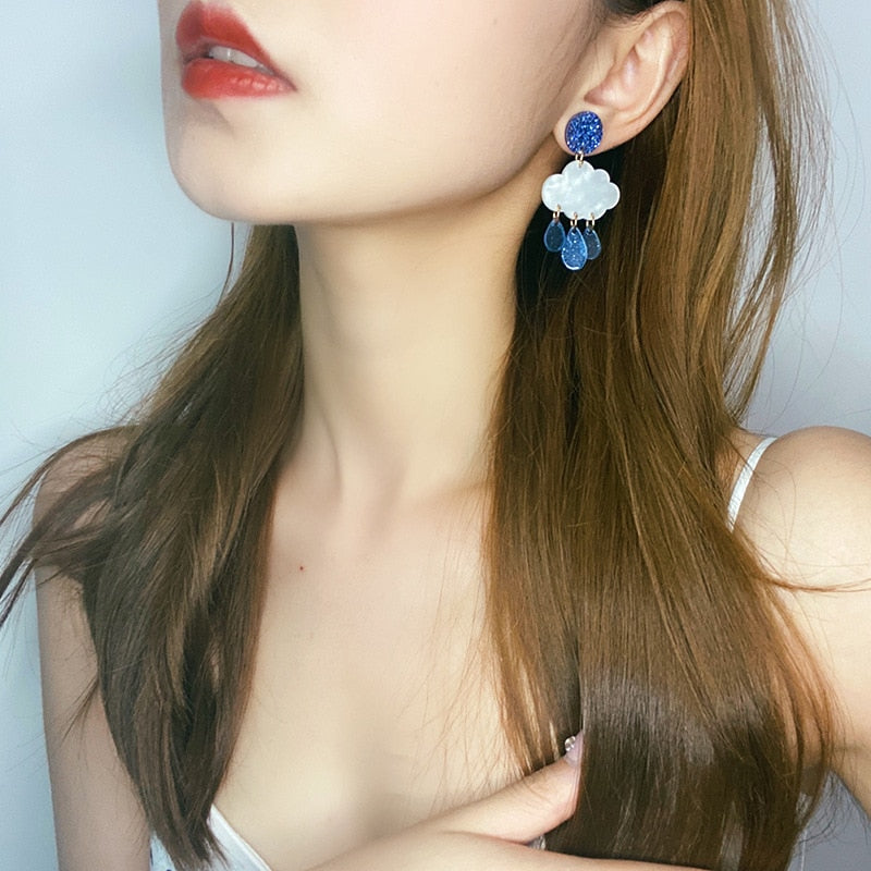 2022 new raindrop cloud acrylic earrings, stylish women's earrings ear clip, Korean jewelry Unusual girl accessories