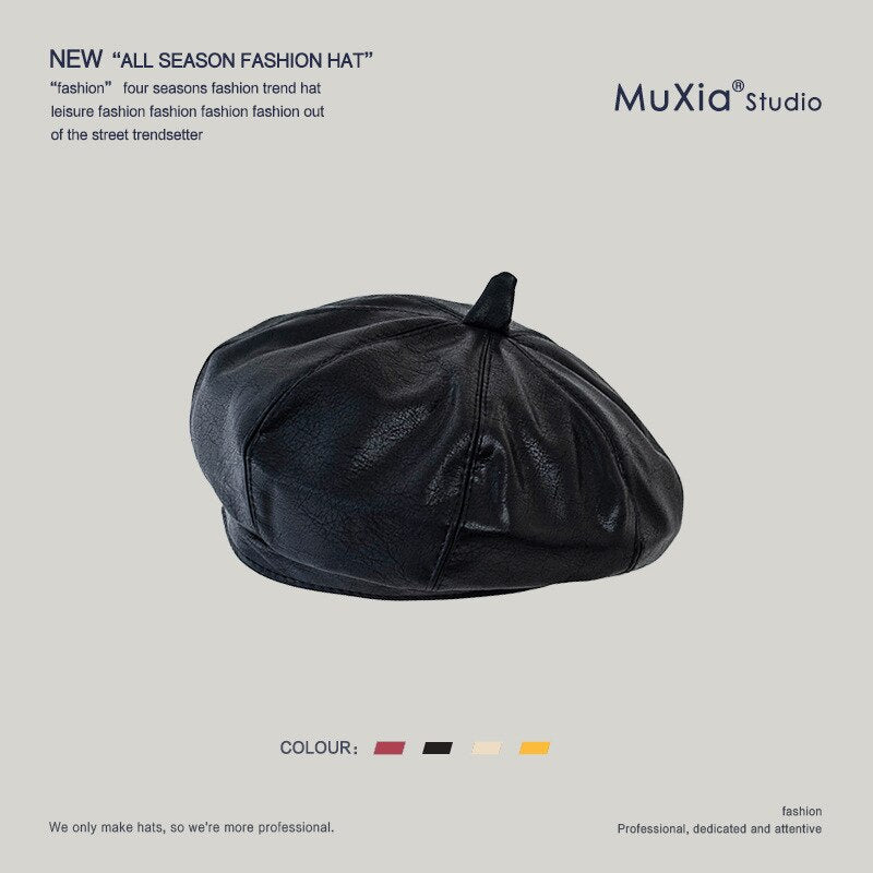 2022 PU Leather Beret Hat Women Flat Cap Hats Lady Girl Berets Hat Bone Female Franch Style 90 s Girls Painter Hat