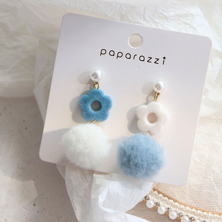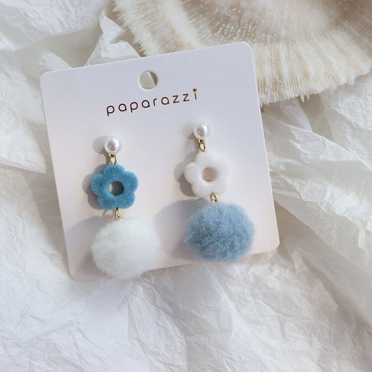2022 Fashion Blue White Fluffy Hairball Statement Drop Earrings For Women Girls Korean Trendy Jewelry Accessories Dangle Earring