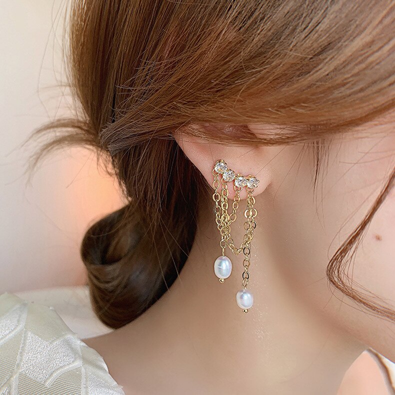 2021 Fashion Imitation Pearl Rhinestone Tassel Chain Dangle Earrings Girls Party Jewelry Gift Fine Trendy Drop Earring For Women