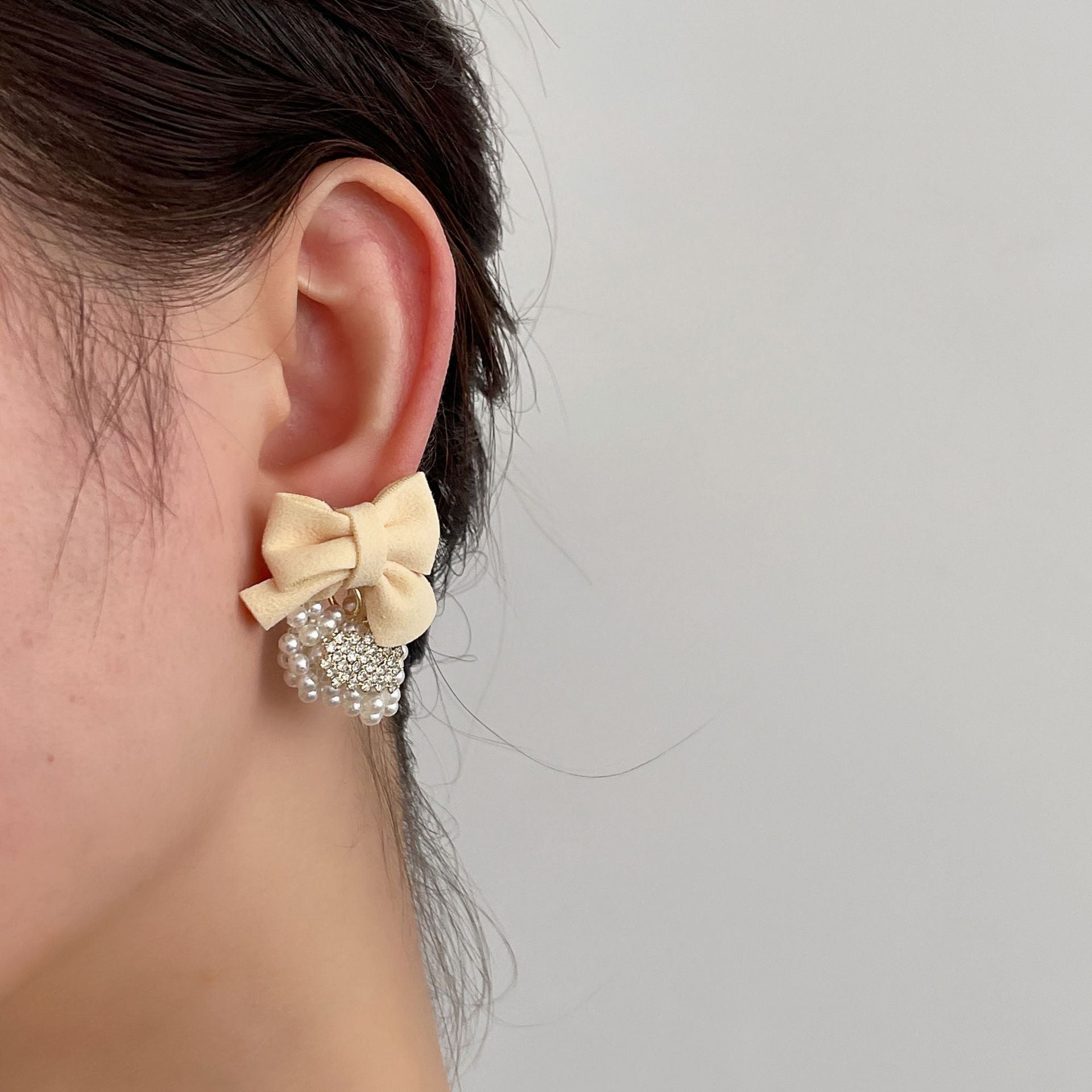 2022 Korean Fashion Chic Imitation Pearl Crystal Heart Statement Drop Earrings For Women Simple Cloth Bow Dangle Earring Jewelry