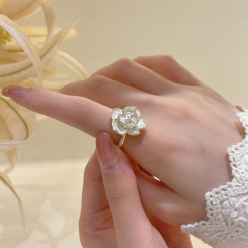 2021 New Elegant White Oil Dripping Camellia Rings For Woman Korean Fashion Flower Jewelry Party Girl's Sweet Rings Accessories