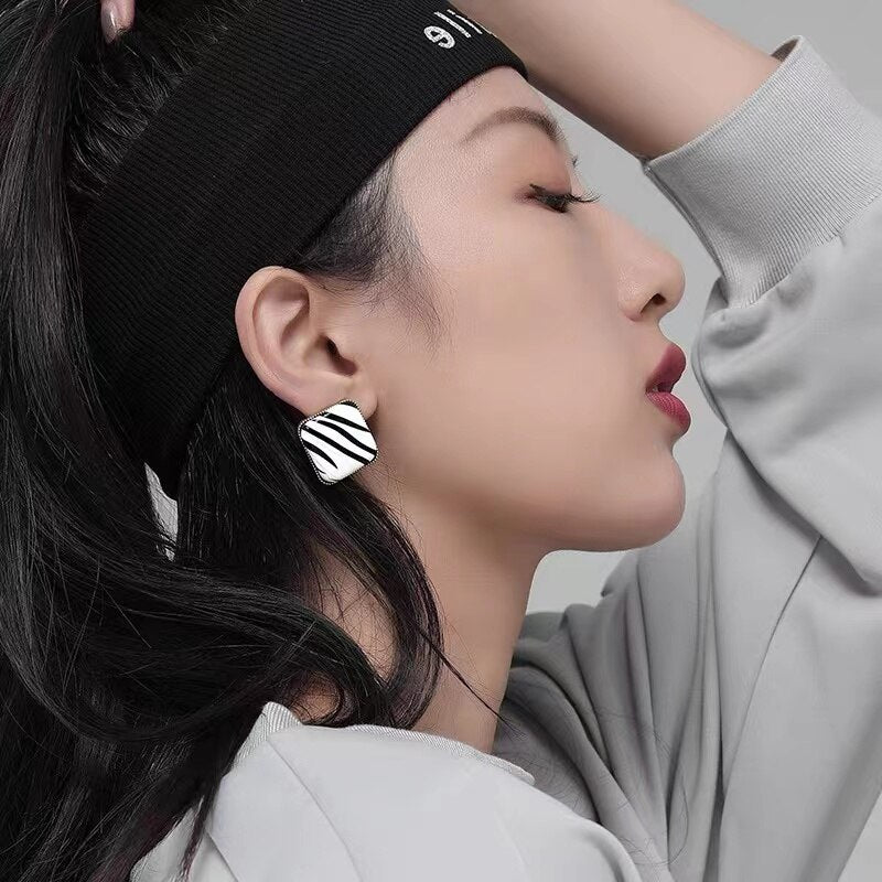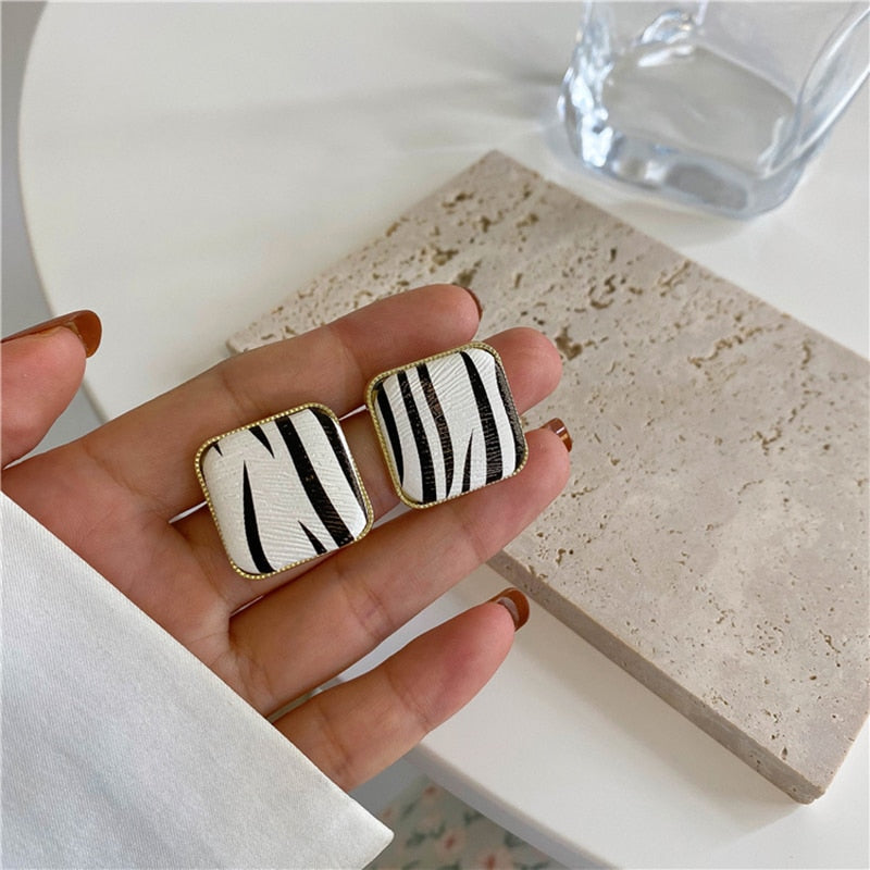 2021 New Modern Fashion Black and White Zebra Geometric Square Round Earrings Gothic Girls Simple Jewelry Accessories For Woman