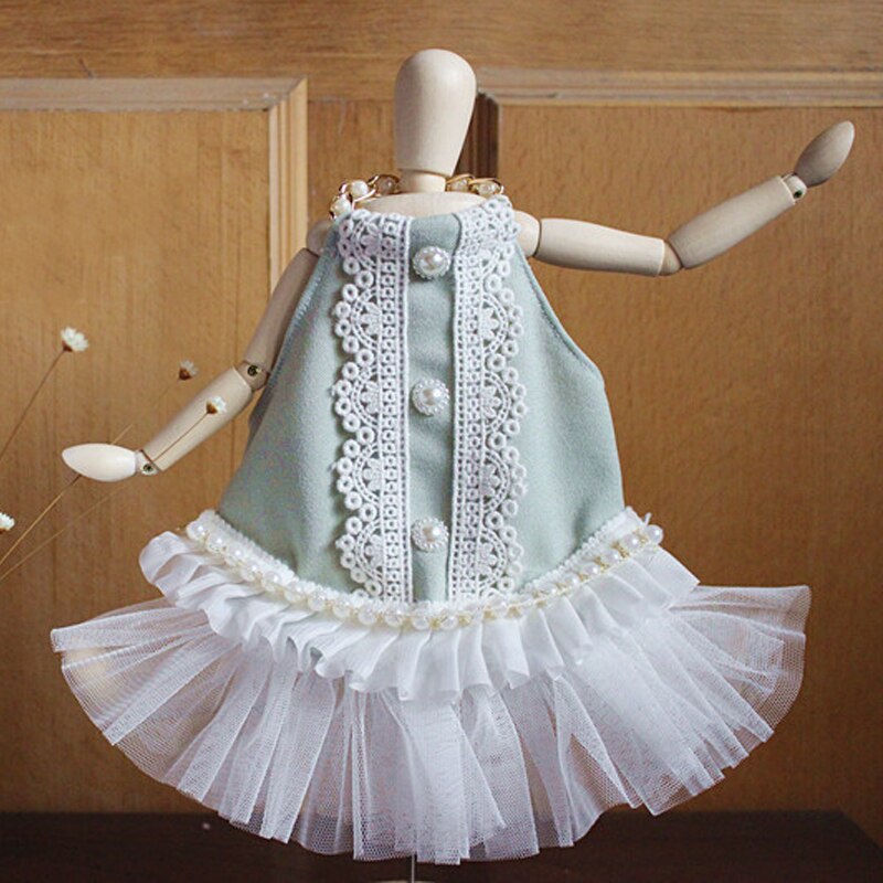 2022 New Puppy Dog Cats Clothes Retro Fashion Pearl White Lace Sling Princess Dresses For Small Medium Dog Coats Pet Clothing
