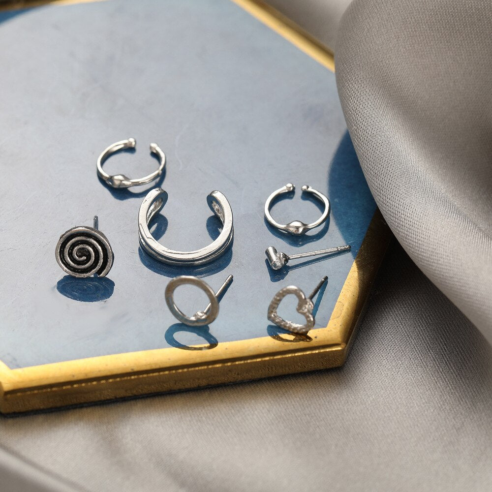 7Pcs Fashion Silver Color Heart Stud Earrings Bohemian Spiral Geometric Earrings for Women 2022 Trendy Elegant Jewelry