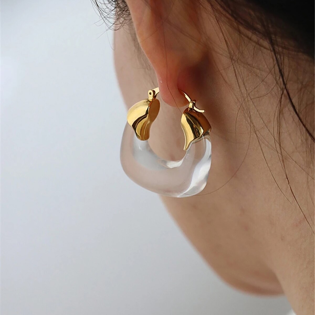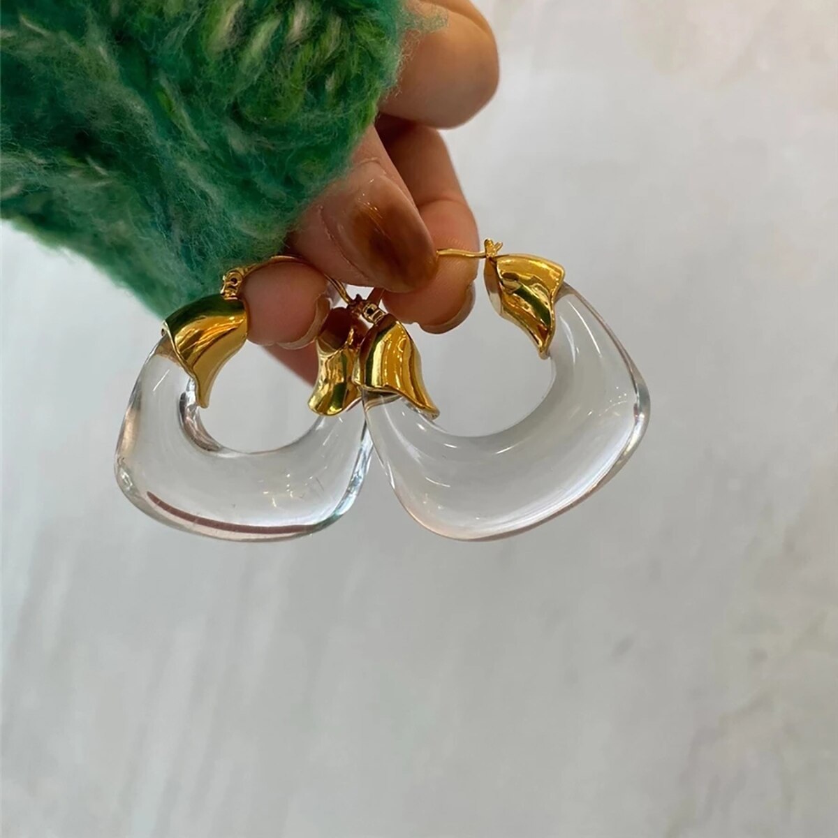 AENSOA Trendy Hyperbole Transparent Resin Geometric U Shape Golden Copper Earrings for Women Punk Clear Green Acrylic Earrings