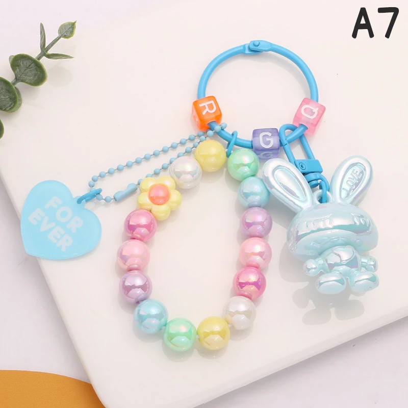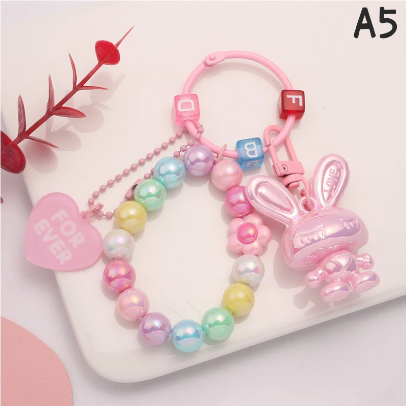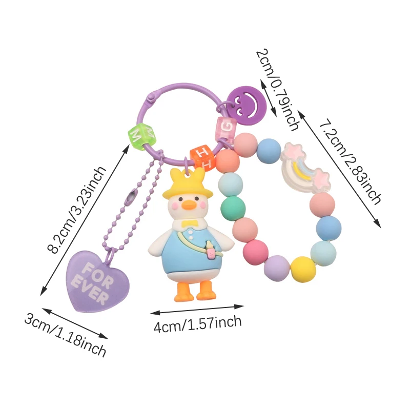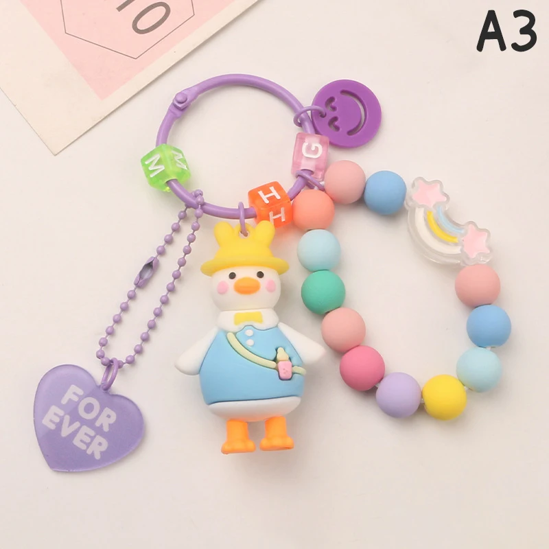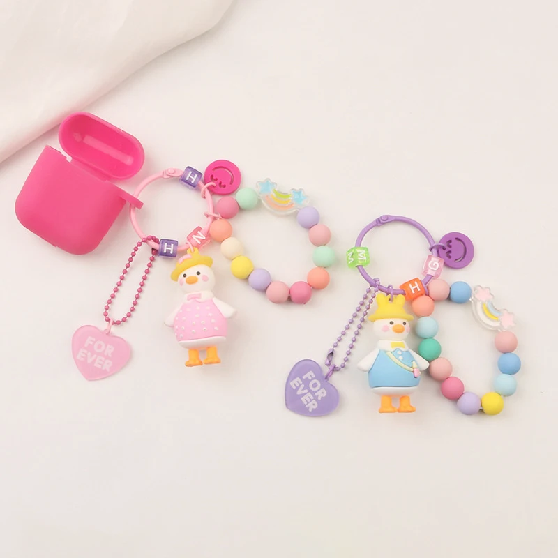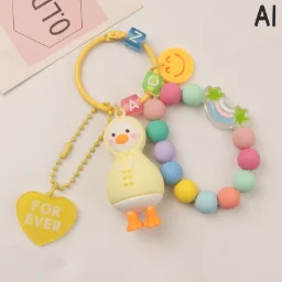 Daiiibabyyy 1PC Cute Duck Candy Color Key Ring Smile Beads Key Chain Women Wallet Backpack Letter Shell Pendant for Airpods Pro