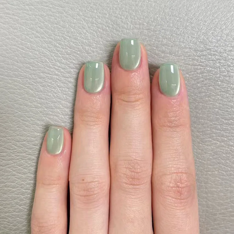 Daiiibabyyy 24pcs Gradient Colorful Fake Nail Art Reusable Candy Cat's Eye Short Ballet False Nails Sets Press on Simple Square Manicure