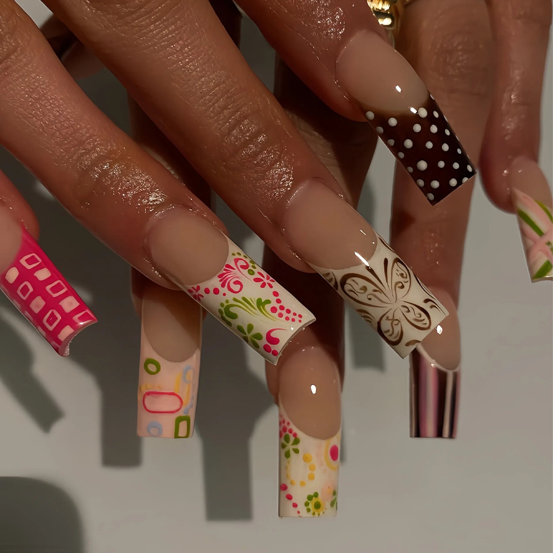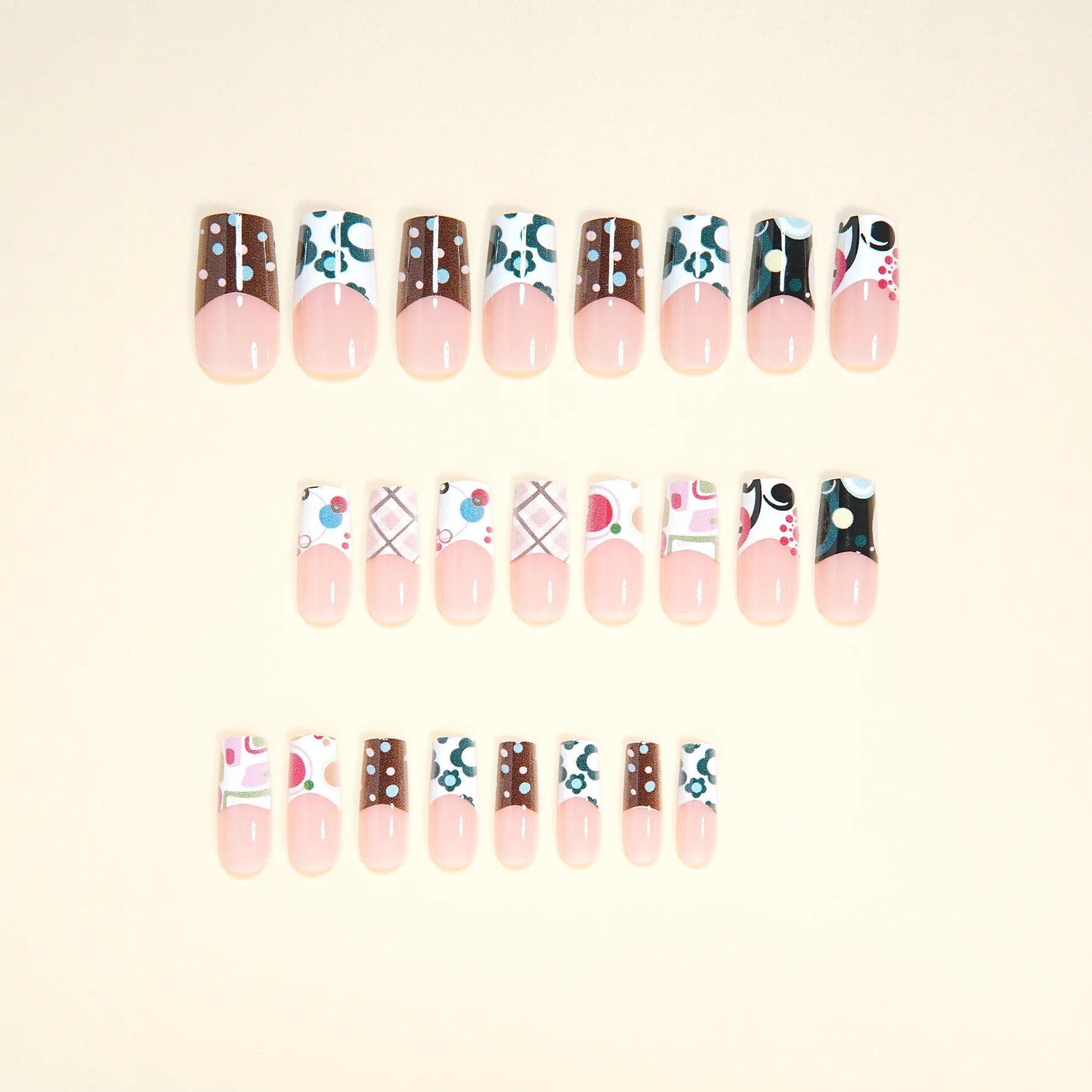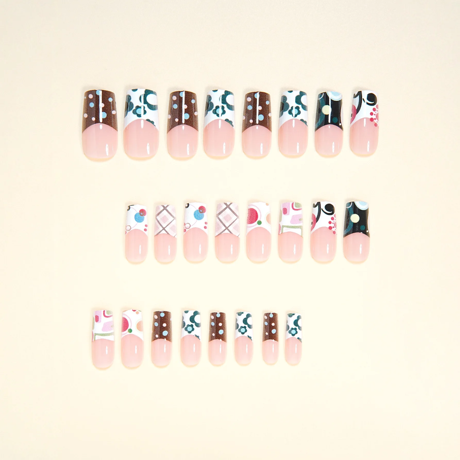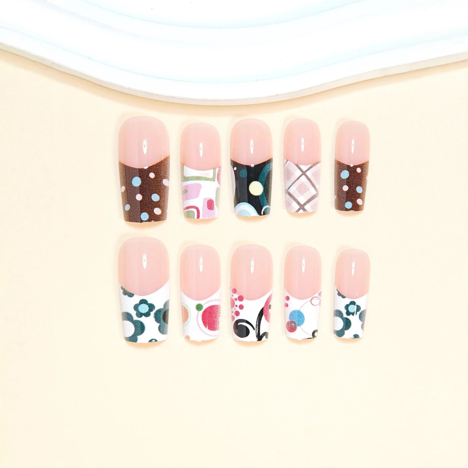 Daiiibabyyy 24pcs Sweet Cool French Style False Nails Wave Point Flower Designs Spicy Girl Press On Nails Medium Coffin European Fake Nail