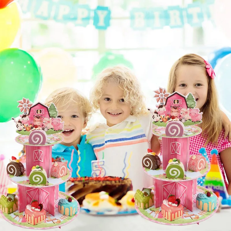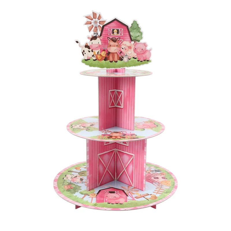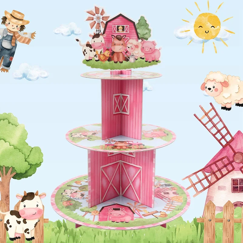Daiiibabyyy Farm Theme Animal Cup Cake Holder Stand Cardboard Farmhouse Farm Birthday Party Decor Kids Birthday Baby Shower Party Supplies