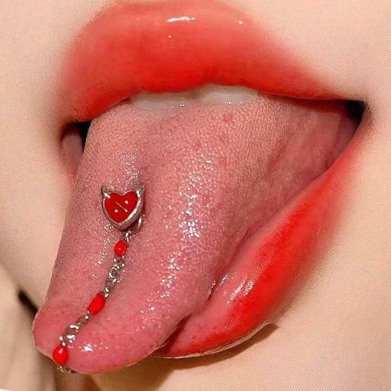 Daiiibabyyy Goth Jewelry Red Devil Heart Tongue Nail for Women Cool Punk Accessories Korean Fashion Cross Tongue Rings Body Piercing