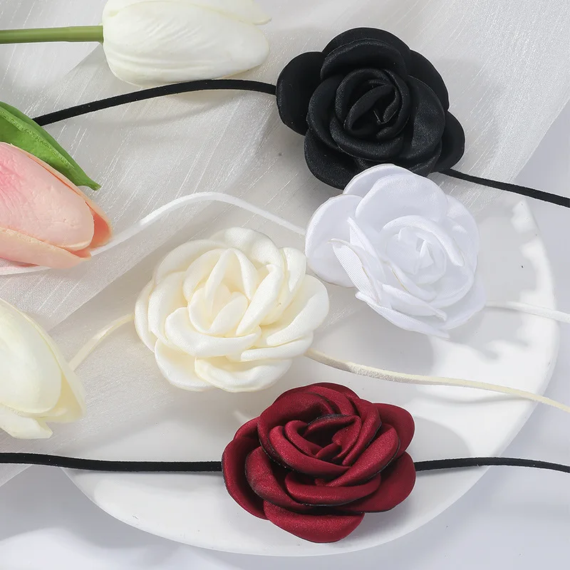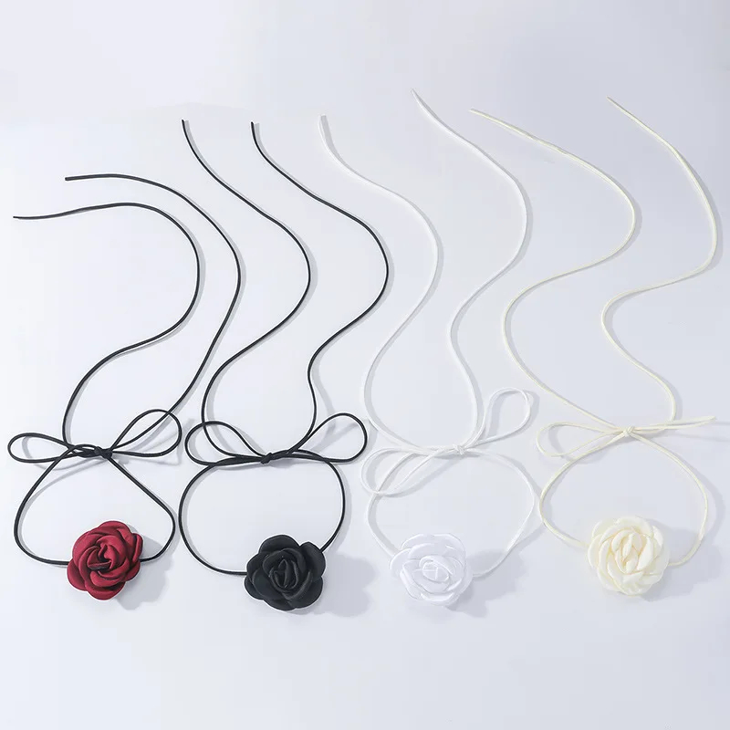 Daiiibabyyy Gothic Elegant Rose Flower Clavicle Chain Necklace for Women Adjustable Sexy Choker Mariage Jewelry Gift Y2K Fashion Accessories