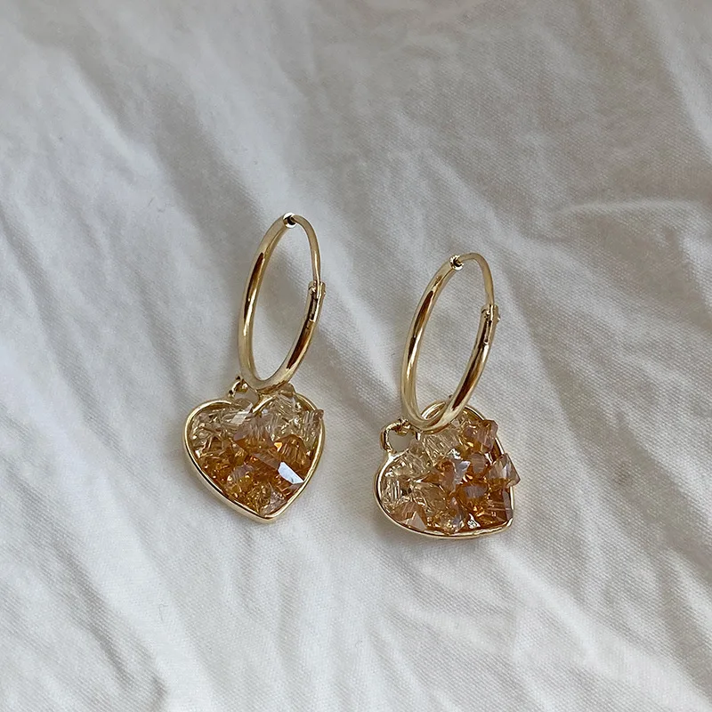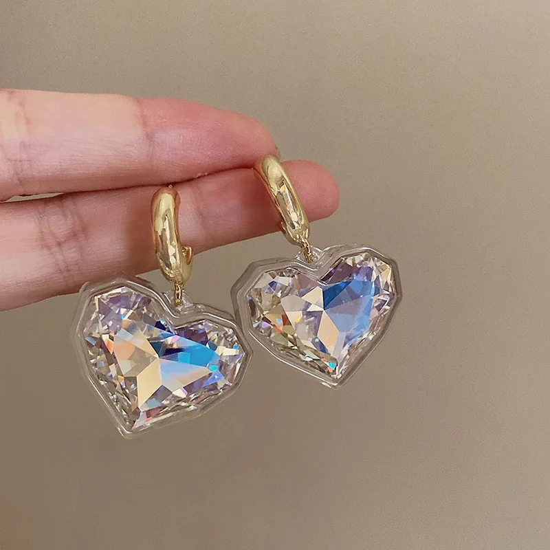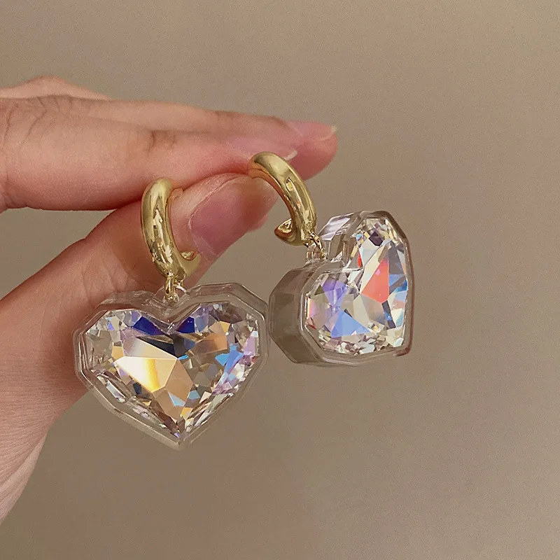 Daiiibabyyy Heart Shape Glass Pendant Earrings European And American Style Personality Fashion Stud Earrings Ms Girl Travel Accessories