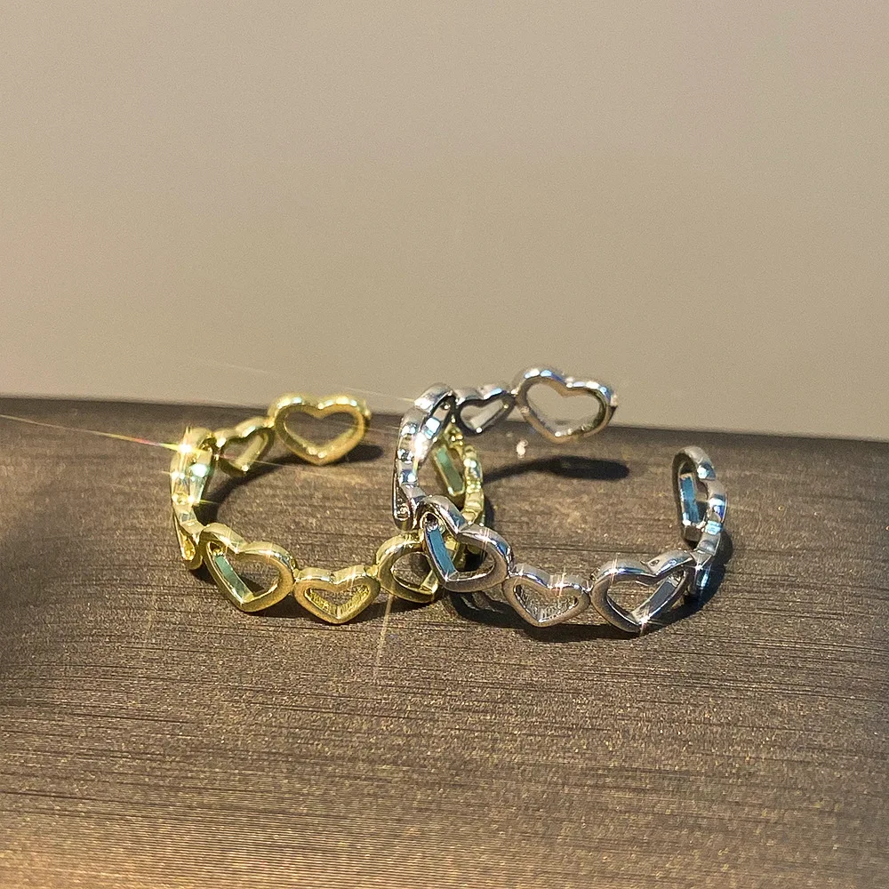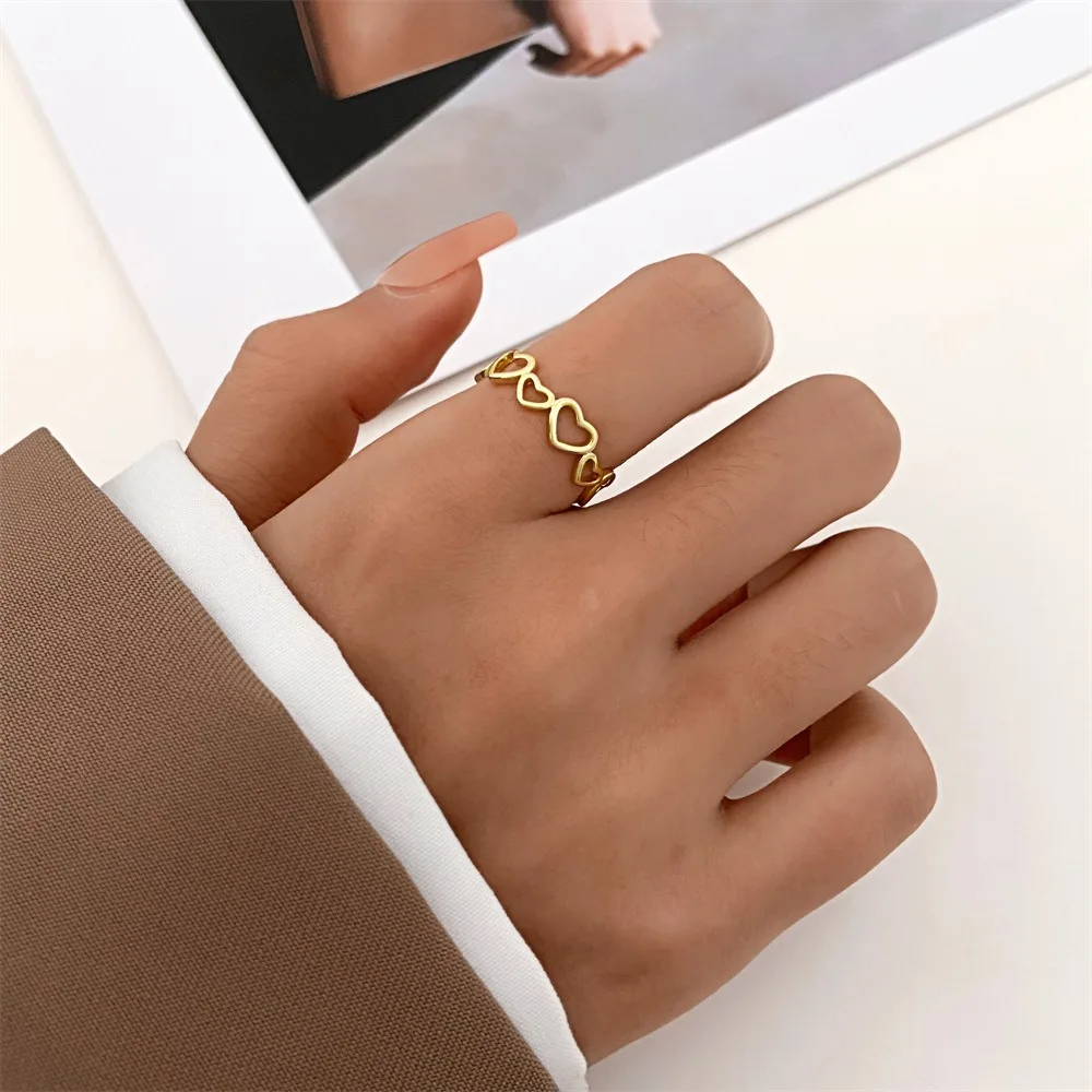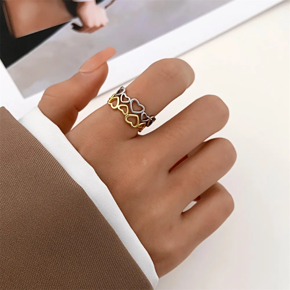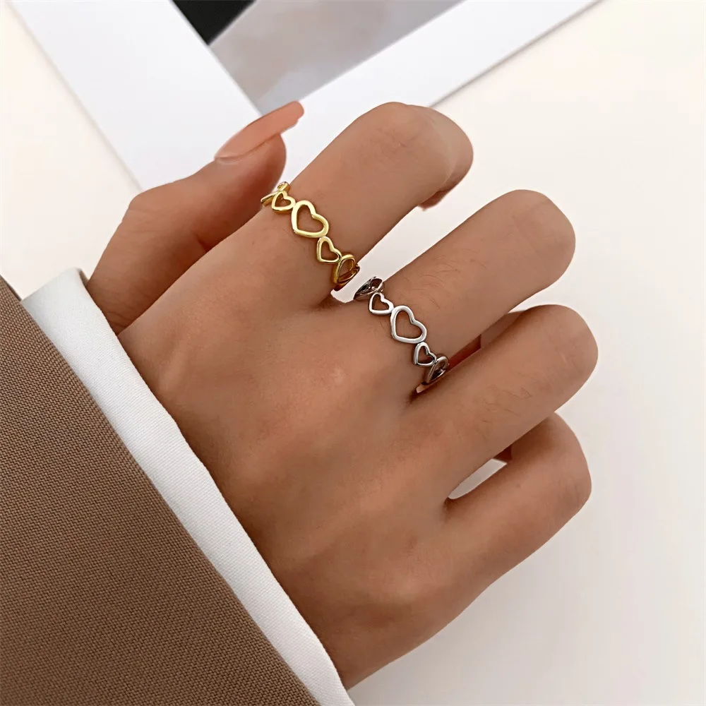 Daiiibabyyy Hollow Heart Shaped Rings for Women Elegant Adjustable Engagment Ring Heart Boho Heavy Metal Crystal Heart Ring Fine Jewelry