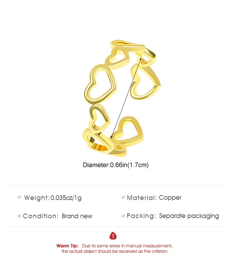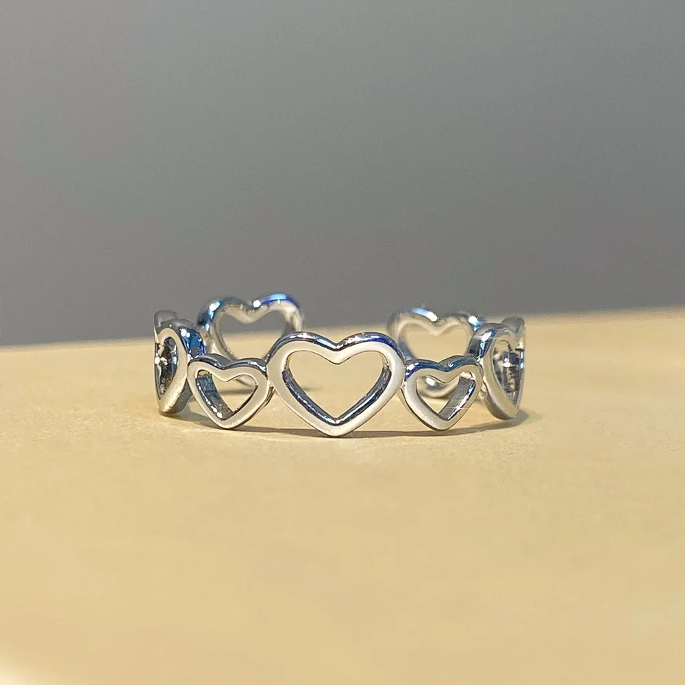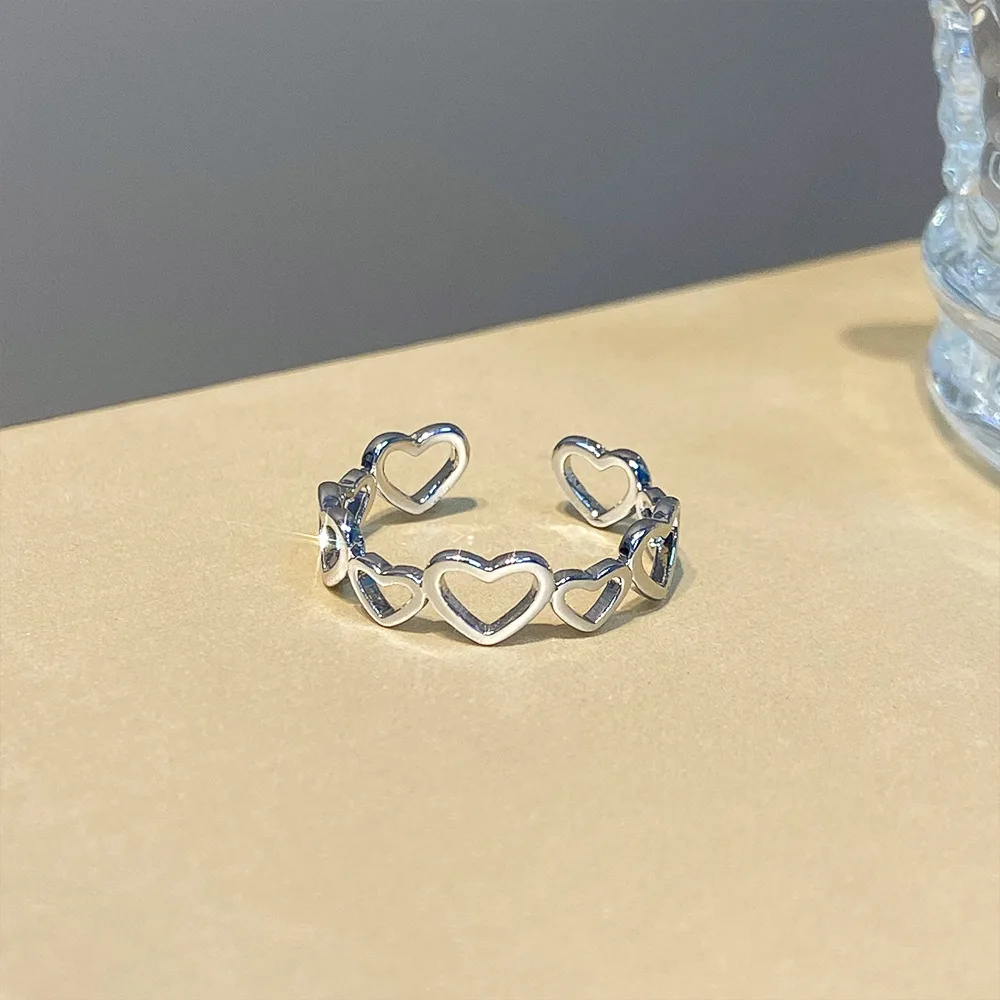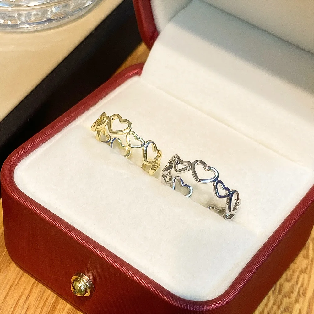 Daiiibabyyy Hollow Heart Shaped Rings for Women Elegant Adjustable Engagment Ring Heart Boho Heavy Metal Crystal Heart Ring Fine Jewelry