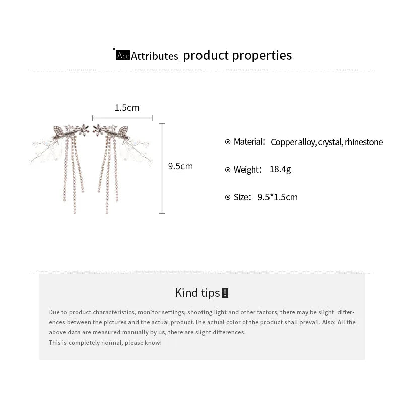 Daiiibabyyy Inlaid Rhinestone Crystal Flowers and Leaves Tassel Ear Clips New Exquisite Earrings Light Luxury High-end Earrings for Women