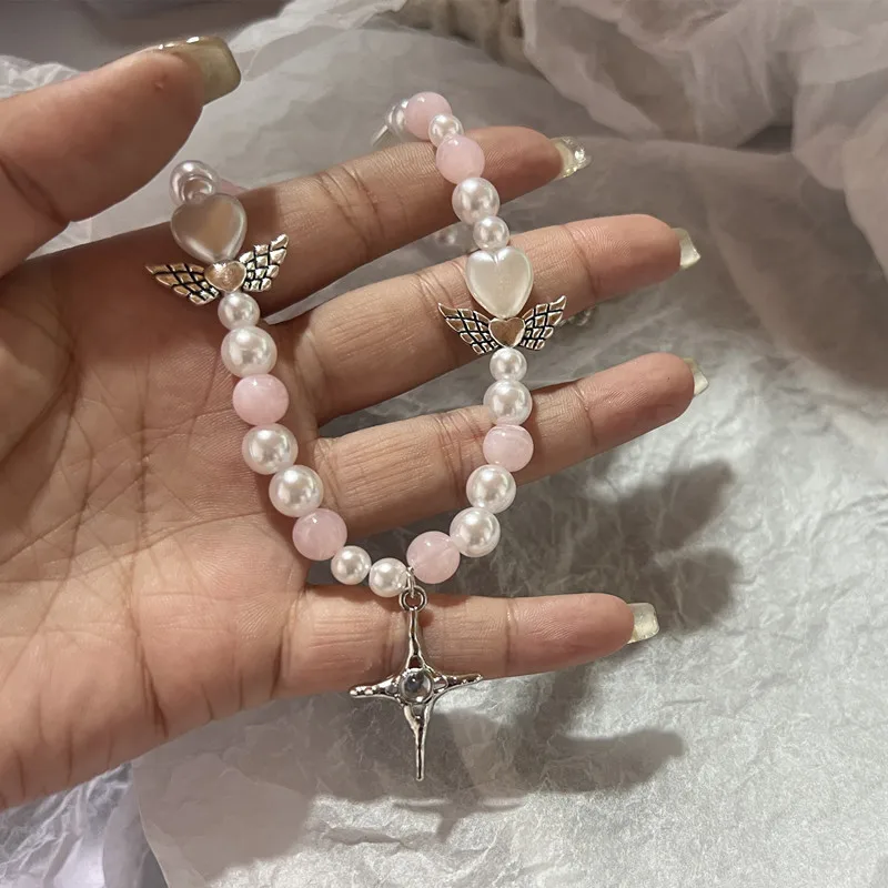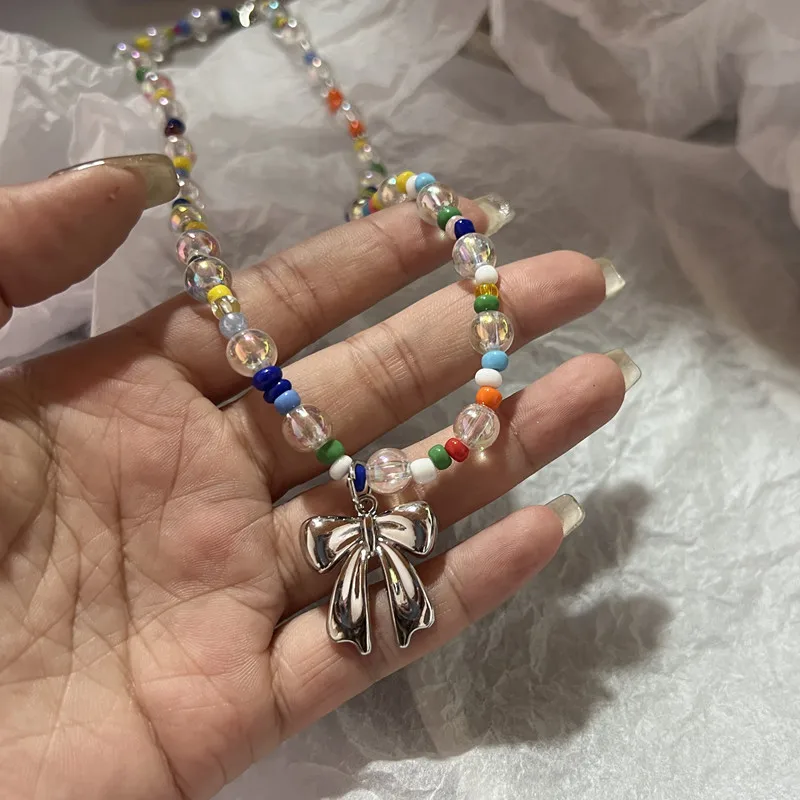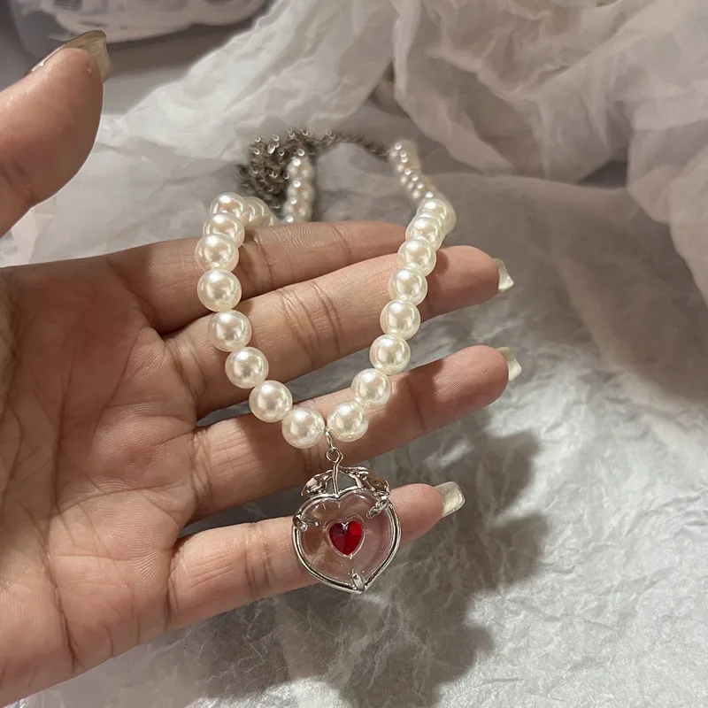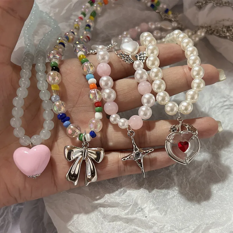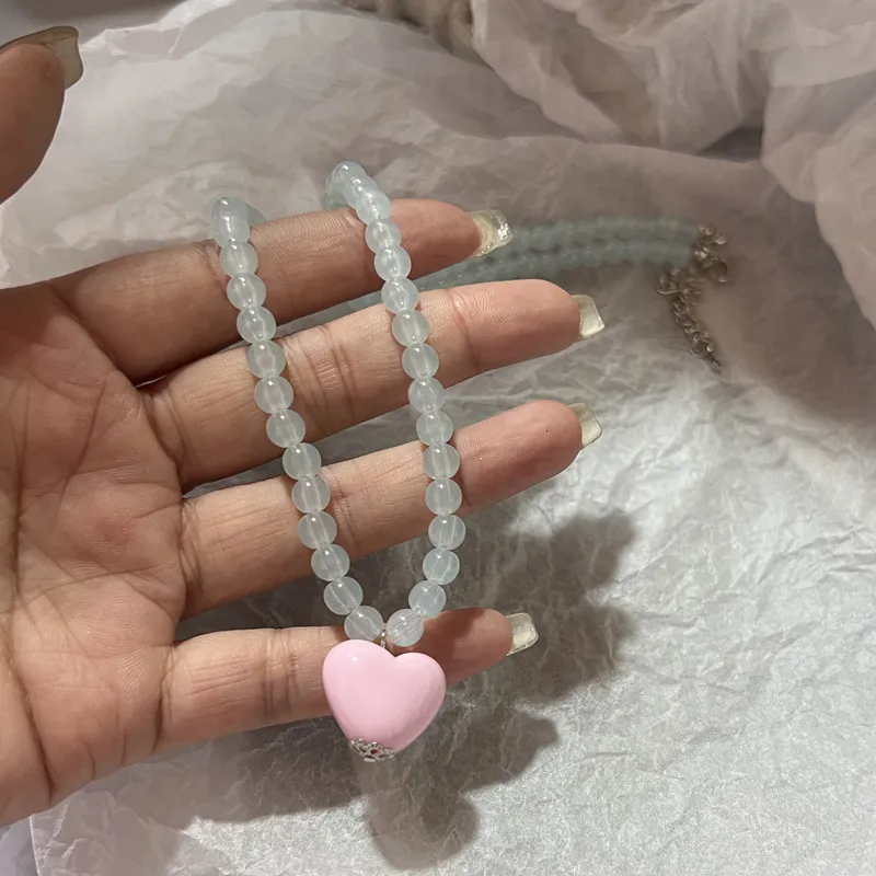 Daiiibabyyy Korean Exquisite Retro Love Heart Beaded Necklace For Women Personality Simple Cool Clavicle Chain Fashion Y2K Jewelry