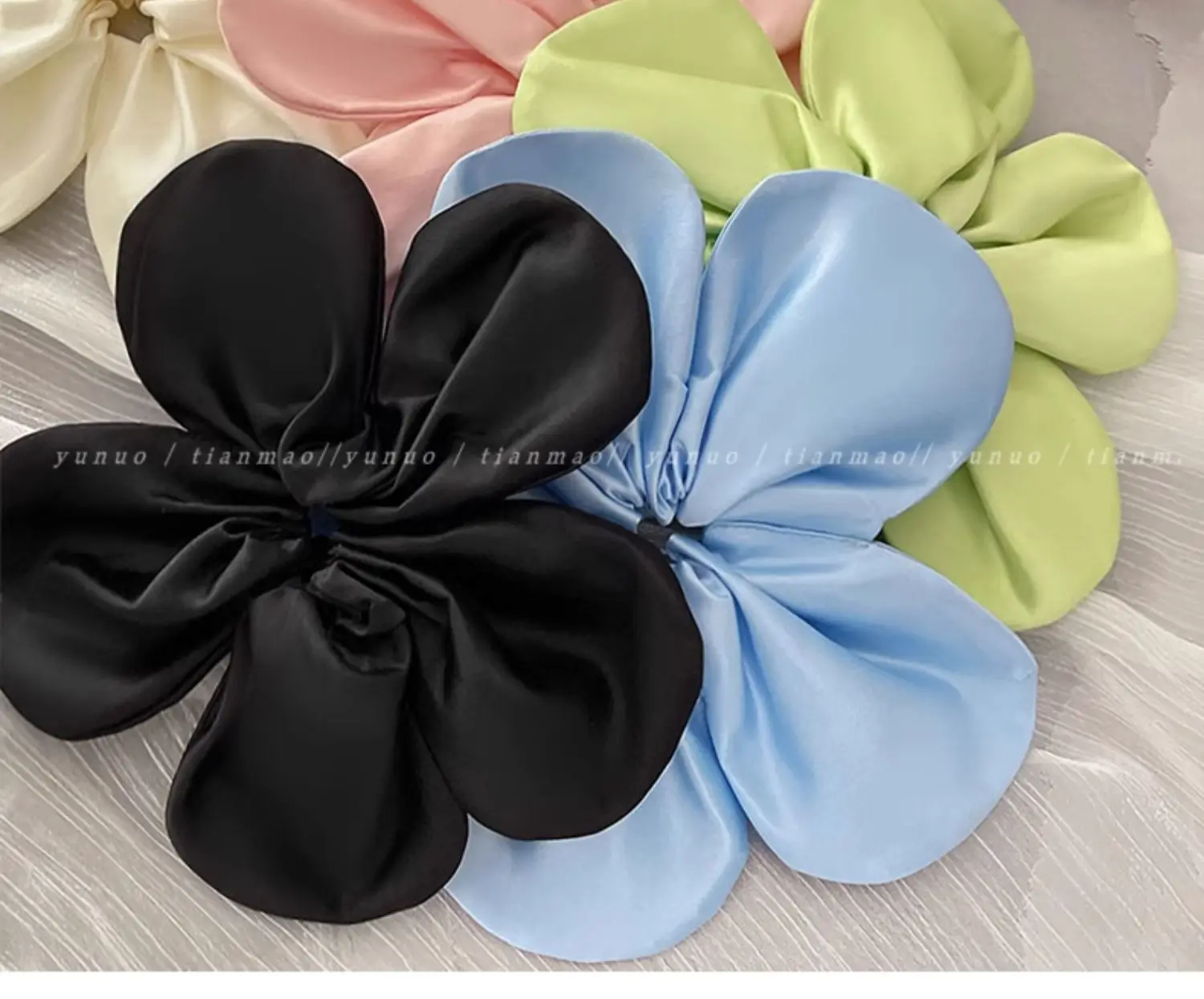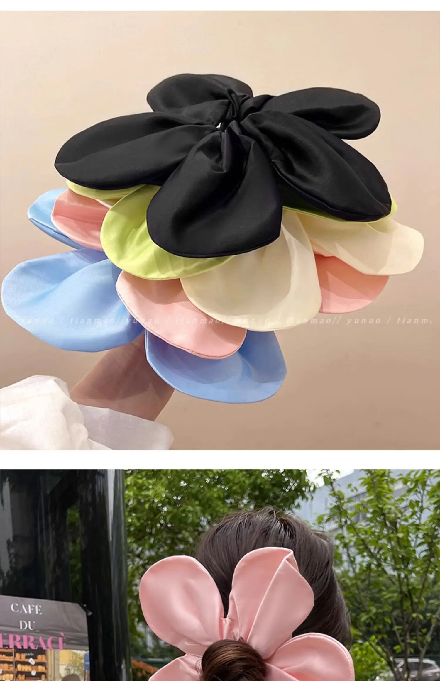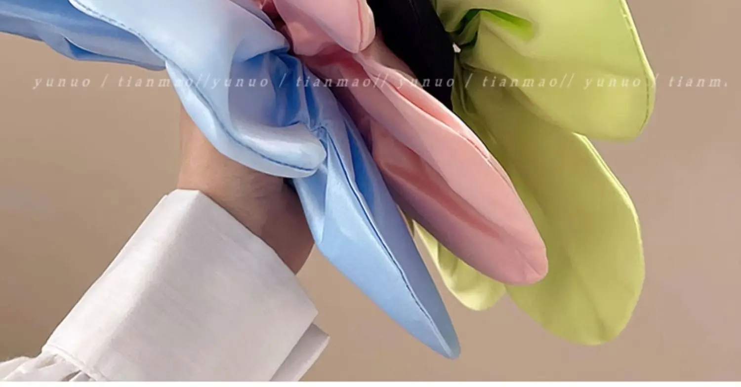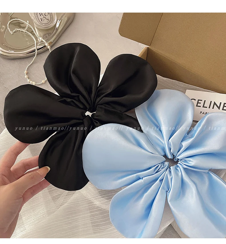 Daiiibabyyy - Korean Pink Flower Oversize Scrunchies Headwear Holiday Style Exaggerated Satin Petal Hair Band Hair Accessories for Women