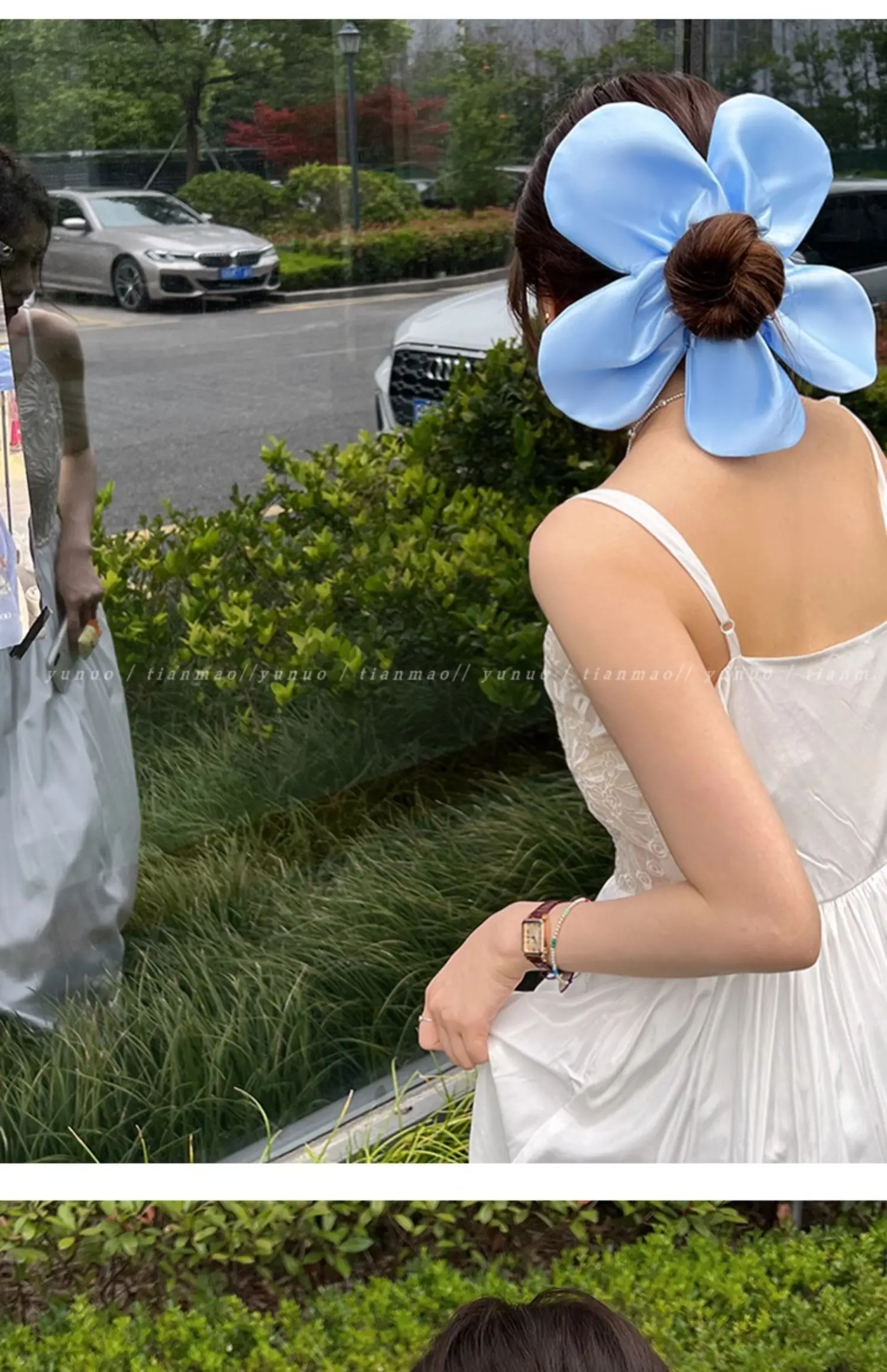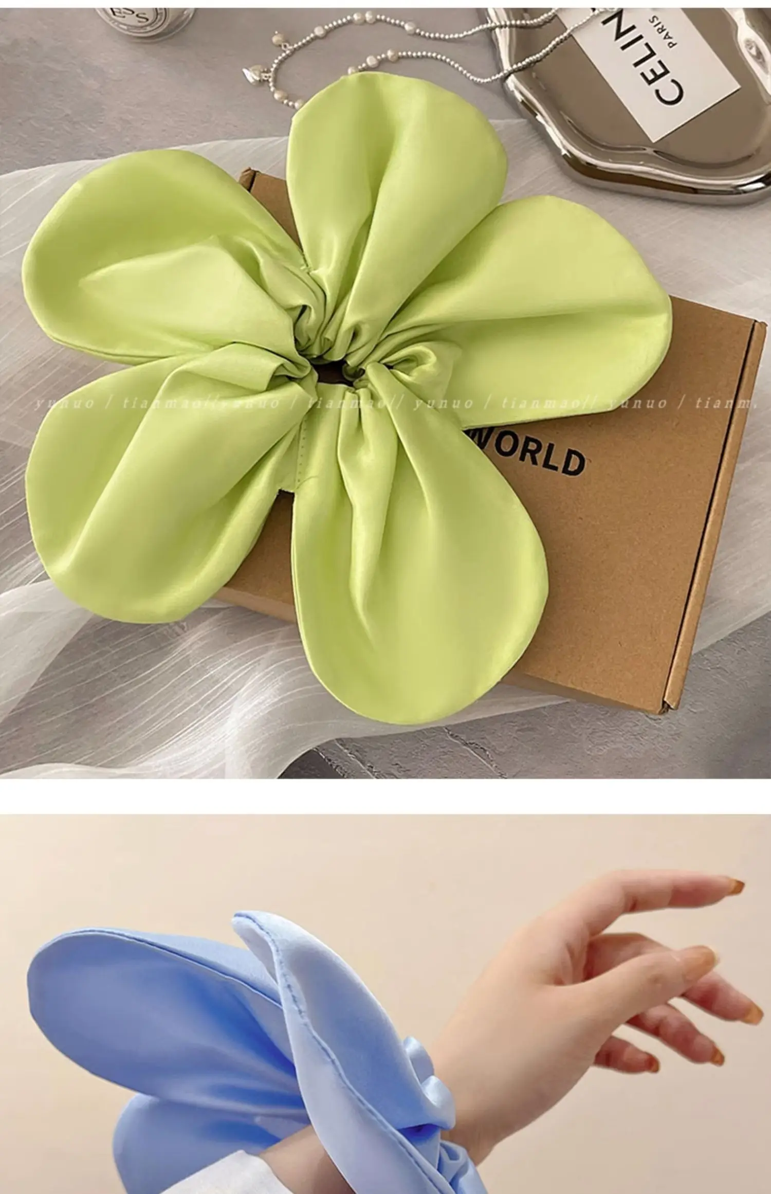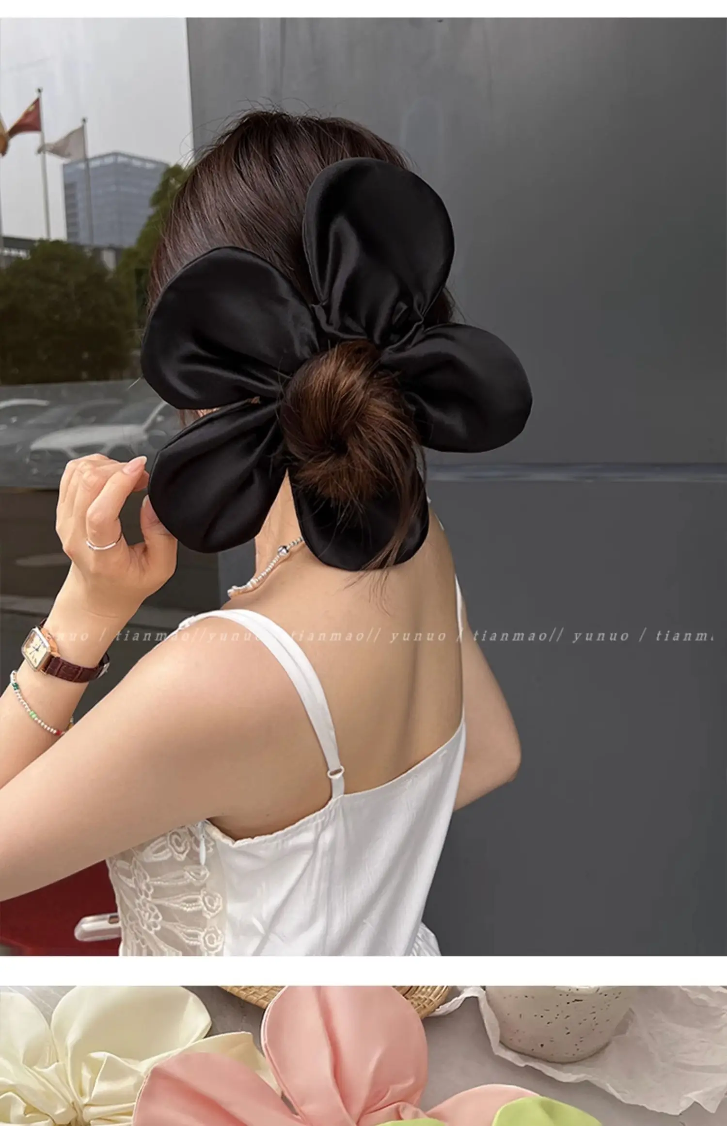 Daiiibabyyy - Korean Pink Flower Oversize Scrunchies Headwear Holiday Style Exaggerated Satin Petal Hair Band Hair Accessories for Women