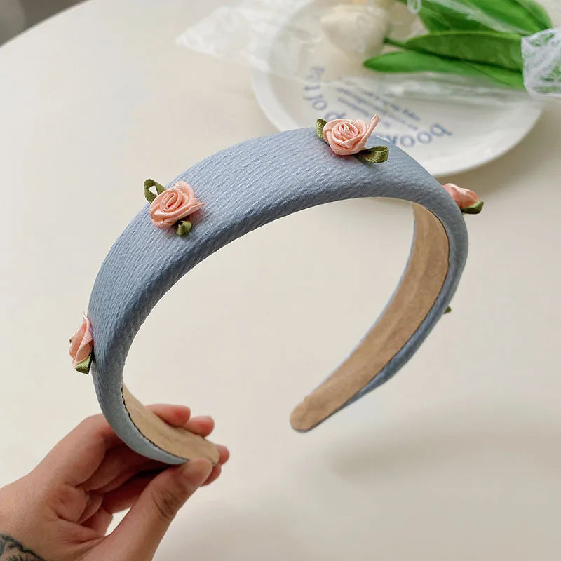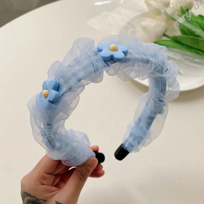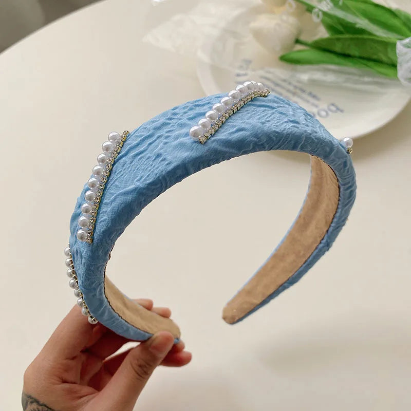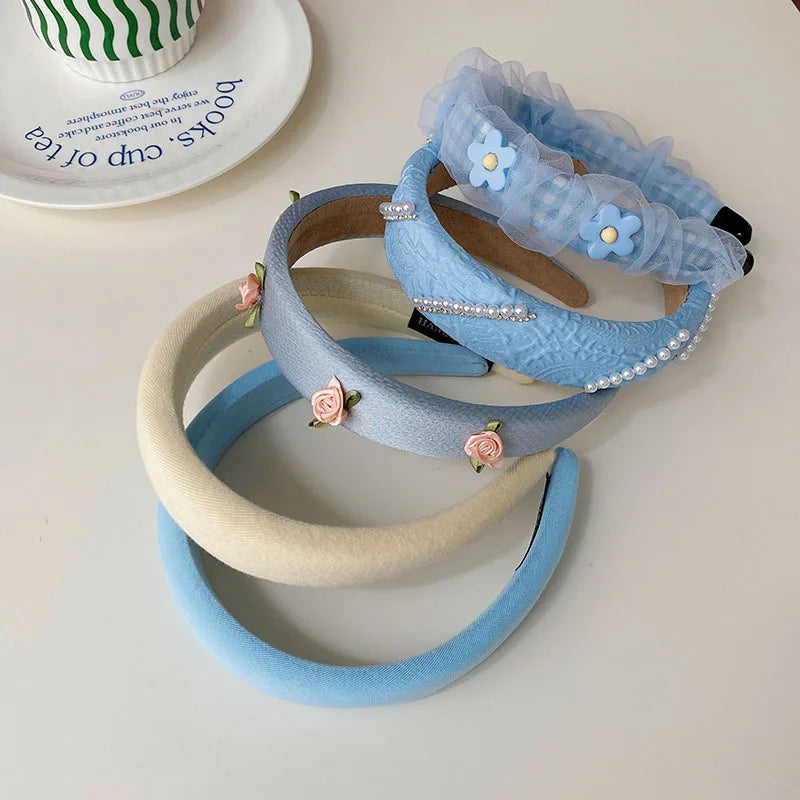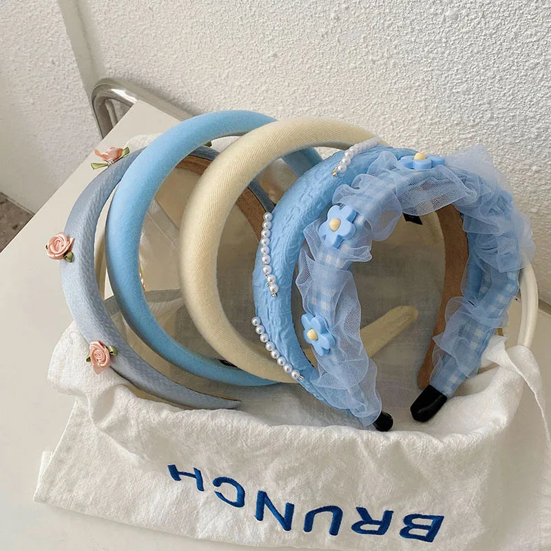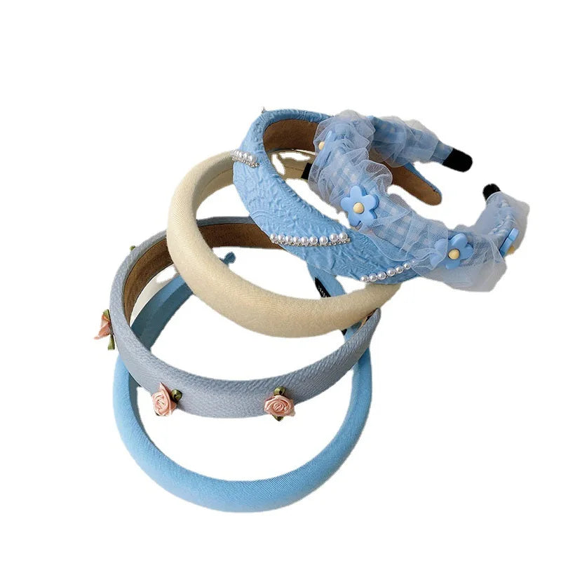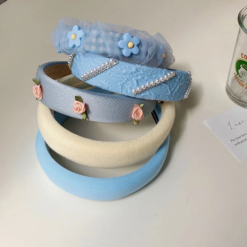 Daiiibabyyy -  Net yarn Pearl floret blue series face wash headband female high skull top net red high-end new hairpin pressure hair headhoop