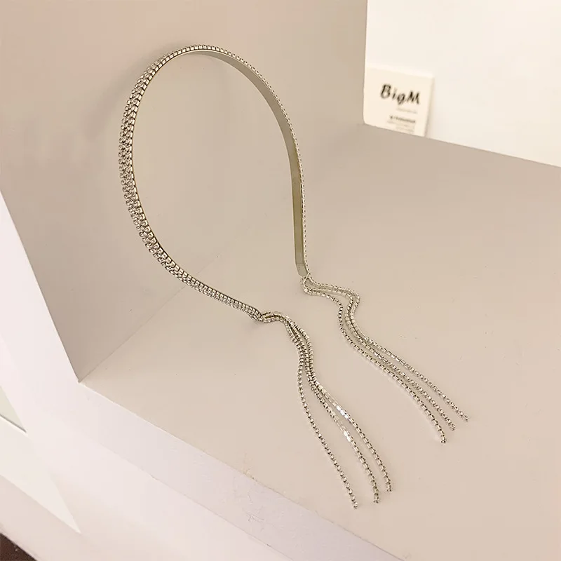 DAIIIBABYYY - Shiny Rhinestone 1/2/3/4 Rows Hairbands for Women Long Crystal Tassel Chain Headband Headwear Hair Hoop Jewelry Accessories New