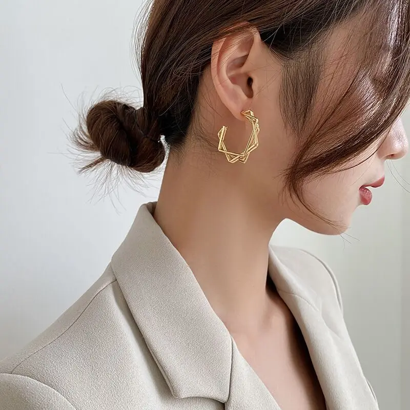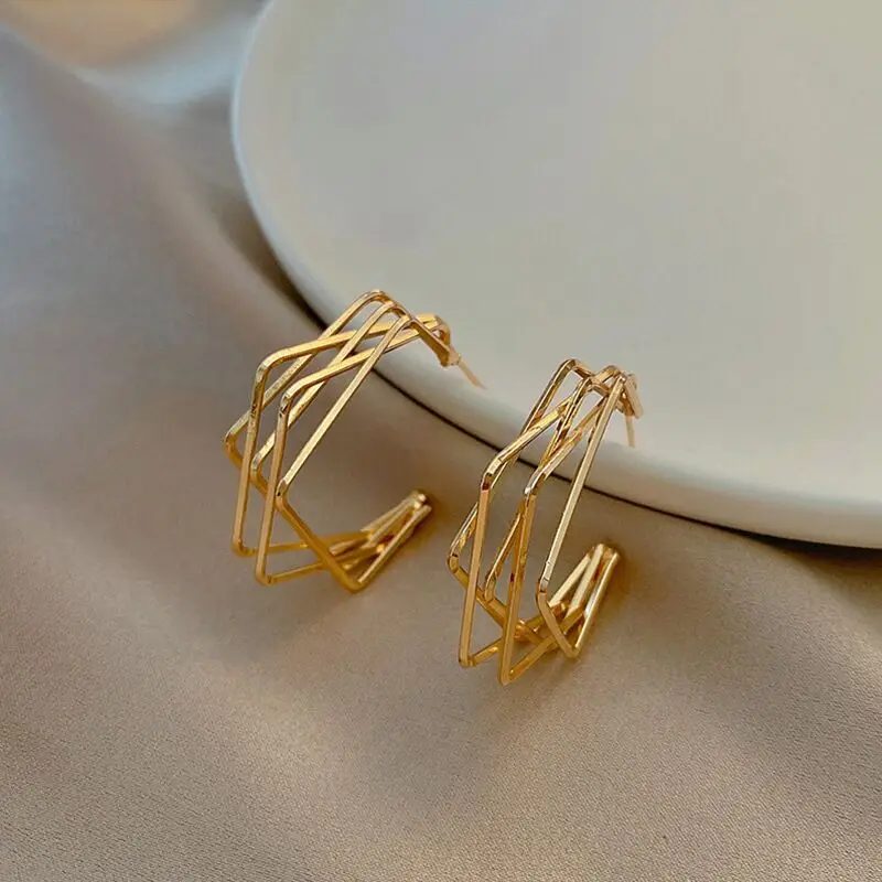 Daiiibabyyy Silver Gold Color Geometry Earrings For Women Girl Simplicity Multi-Storey Fashion Jewelry Birthday Gift Dropshipping