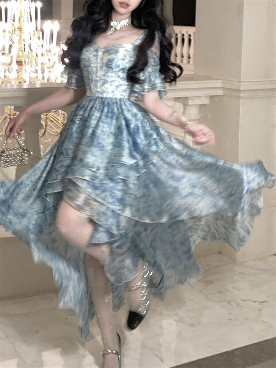Dress Women Elegant Summer 2023 New Squae Collar Fashion Evening Party Ladies Vestidos Vintage Design Dresses Female Clothes